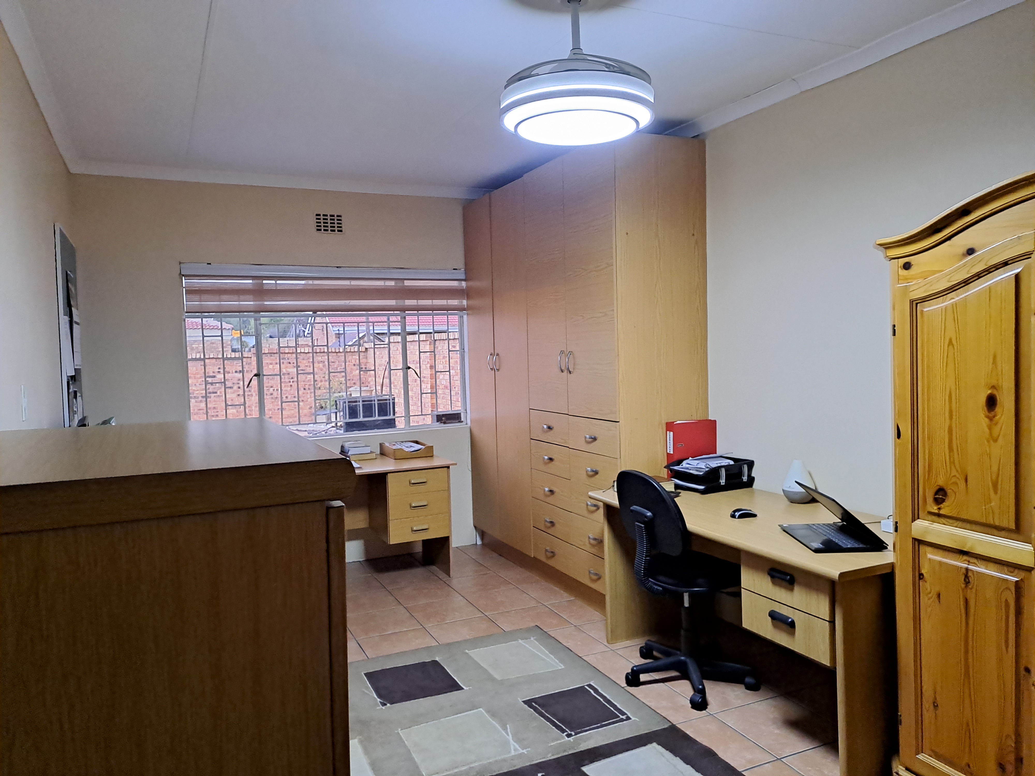 This well looked after property offers you three spacious bedrooms MES, two bathrooms, fitted wall wardrobes, large office space, open concept family/dining area easy access to the entertainment center which opens to the backyard with a sparkling swimming pool. The kitchen is for the chef of the house, fitted with plenty cupboards and granite tops, gas hob, wine rack, scullery. A double automated gate and garage for easy and quick access to the property. Luscious garden space well maintained paved driveway. Located in a well sought after suburb of Eastvale in Springs Ekurhuleni Gauteng. You have all you need in the property, that is located near all the amenities such as private/public schools and transport, shopping centers, churches parks, freeway etc. Call me today if this rocks your boat, so I can arrange for an exclusive viewing appointment just especially for you!!