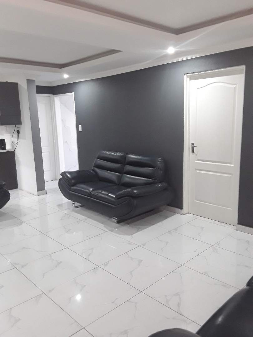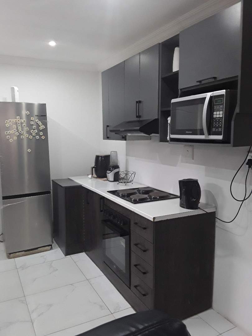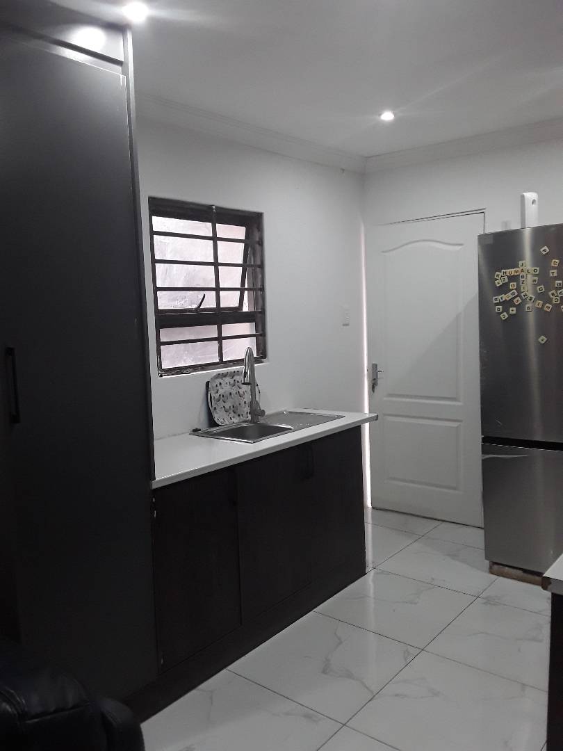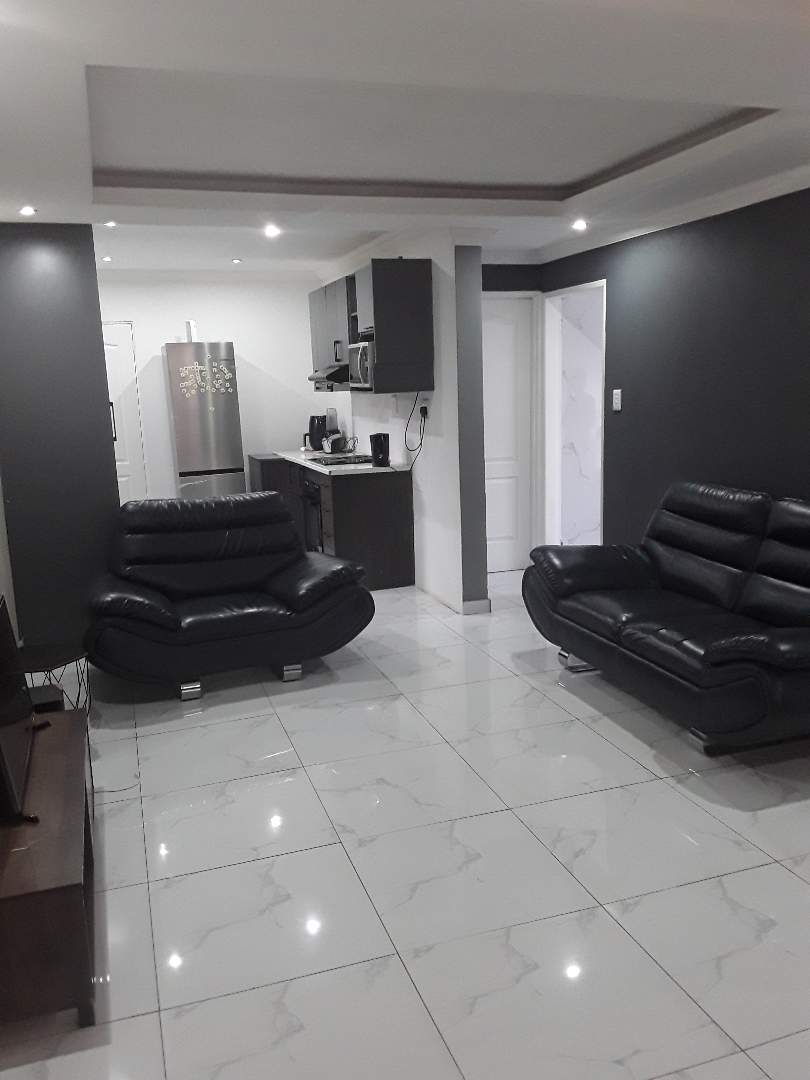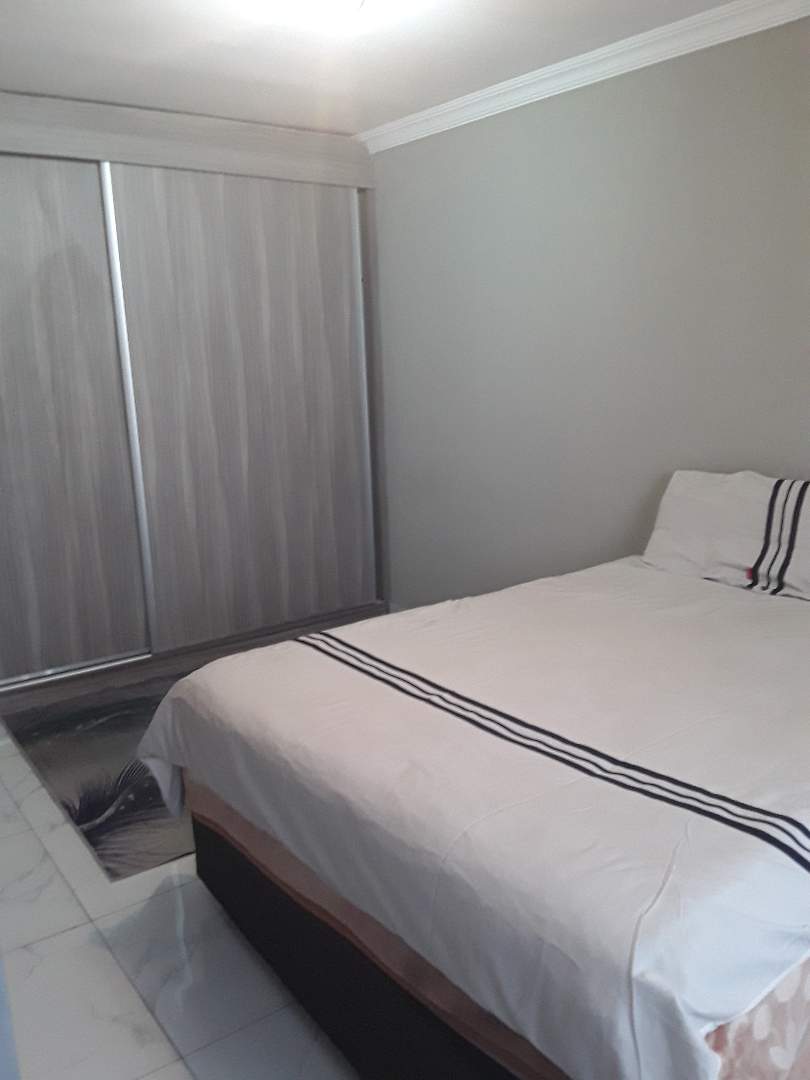 Step into a residence that exudes elegance from its grand entrance, featuring a stylish swivel front door leading to a formal lounge. The open-plan contemporary design creates a fine ambiance, with pristine tiling throughout the home. The main house includes two spacious bedrooms, both sharing a fully tiled bathroom. The master bedroom comes complete with built-in cupboards, ensuring ample storage space.