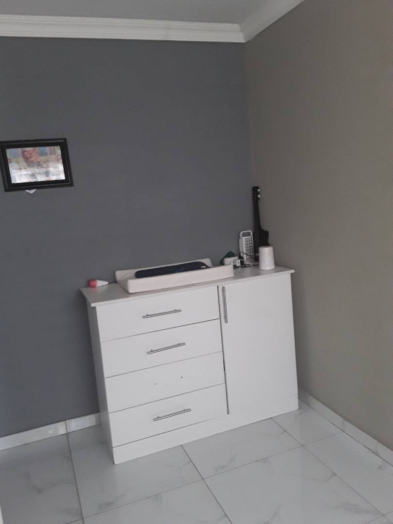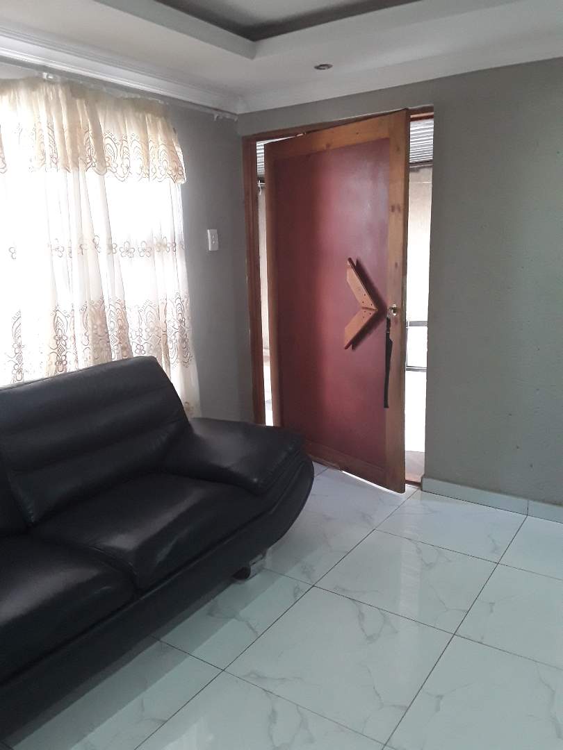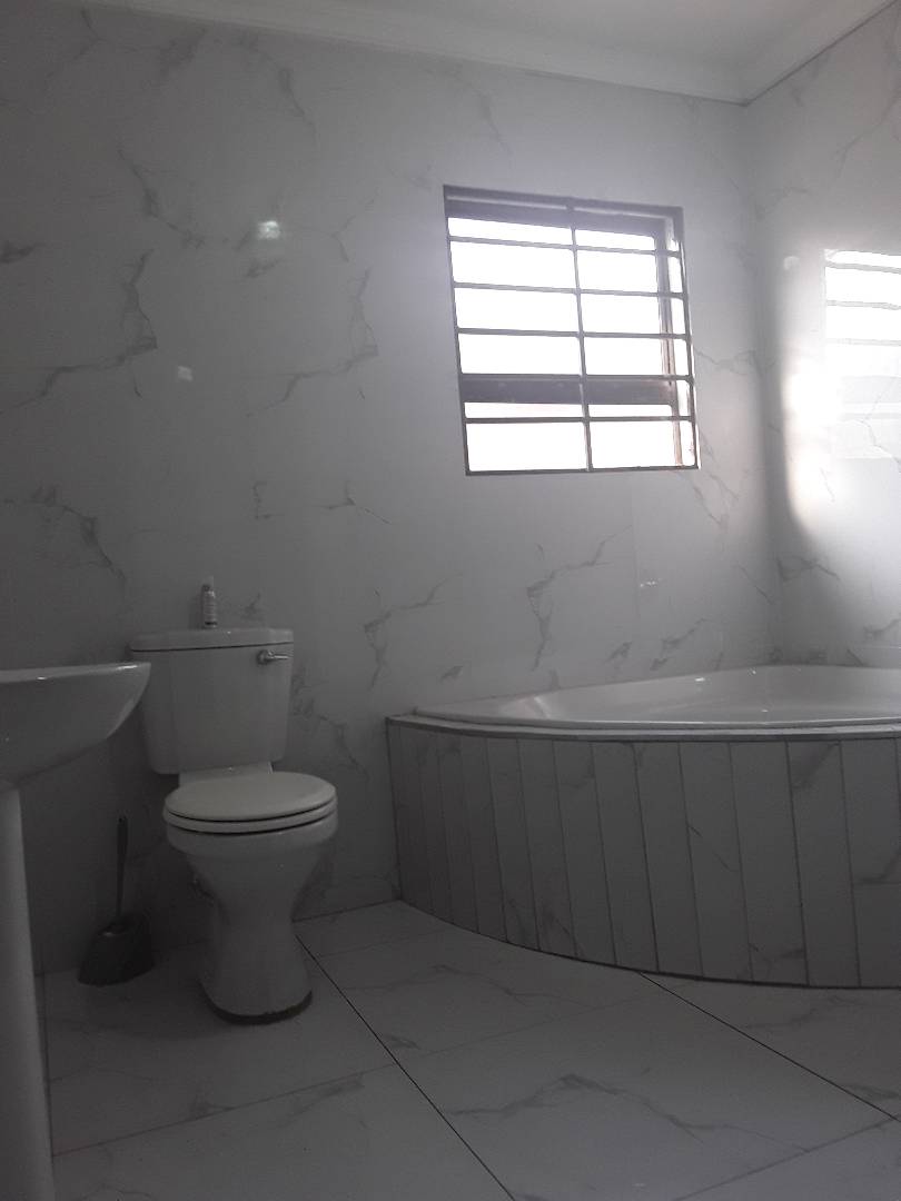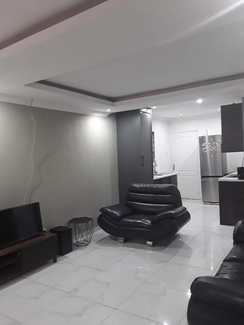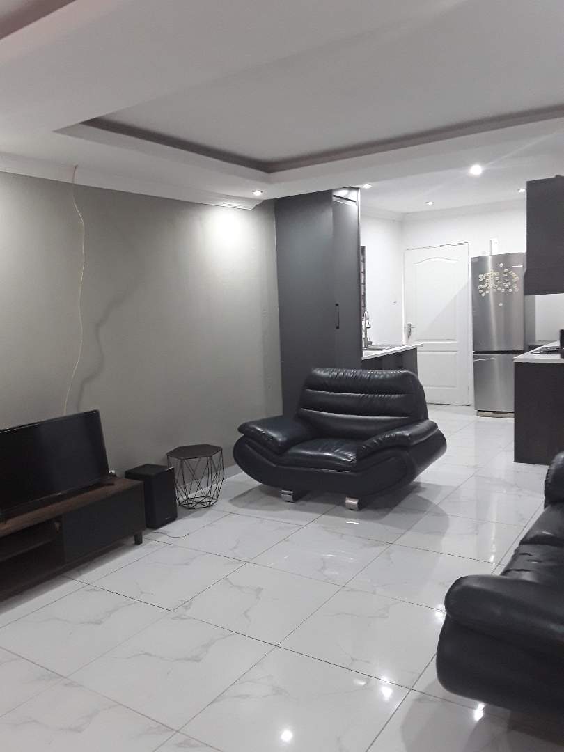 Step into a residence that exudes elegance from its grand entrance, featuring a stylish swivel front door leading to a formal lounge. The open-plan contemporary design creates a fine ambiance, with pristine tiling throughout the home. The main house includes two spacious bedrooms, both sharing a fully tiled bathroom. The master bedroom comes complete with built-in cupboards, ensuring ample storage space.