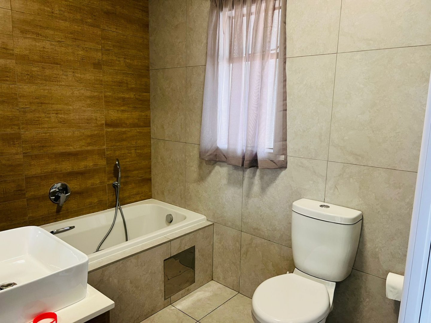 The spacious bedroom includes built-in cupboards and a full en-suite bathroom, offering both convenience and elegance.