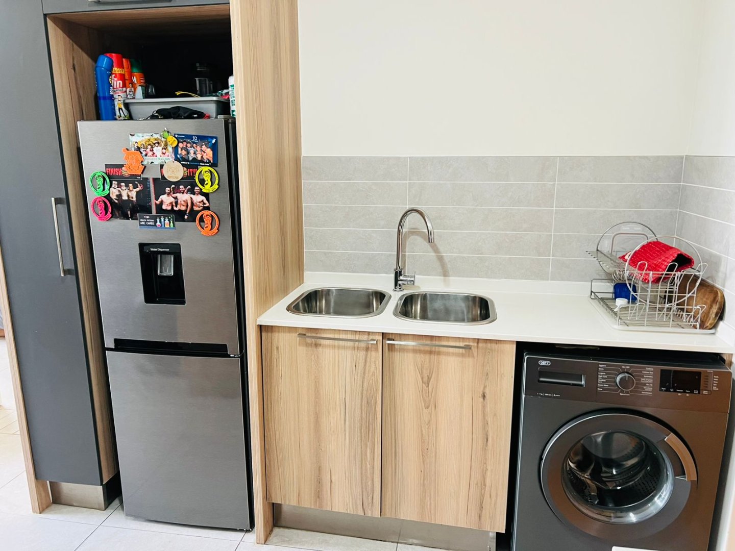 Perched on the top floor and overlooking the serene beauty of the Modderfontein Nature Reserve, this 42m2 1-bedroom apartment offers the perfect blend of comfort, style, and tranquility.