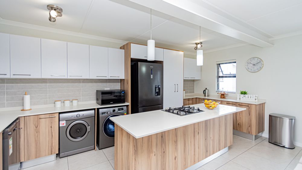 Modern Kitchen: The sleek kitchen with ample storage space, and elegant countertops, making meal preparation a breeze.
