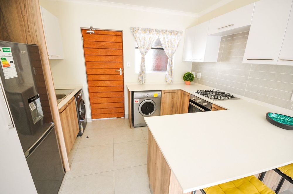The kitchen counter also provides space for some bar stools to provide extra seating space. The spacious living room area allows for guests to be entertained while you prepare a warm cooked meal in the kitchen.