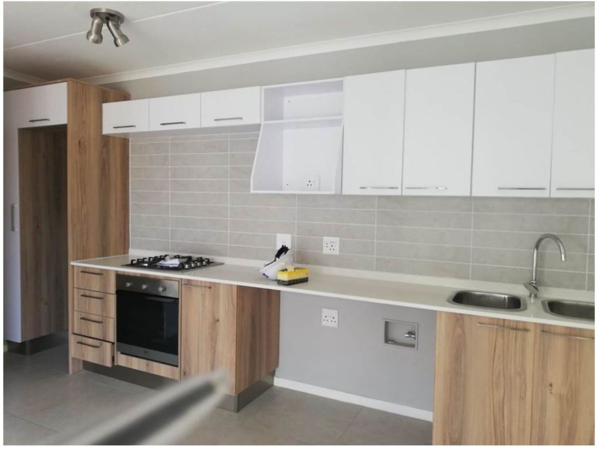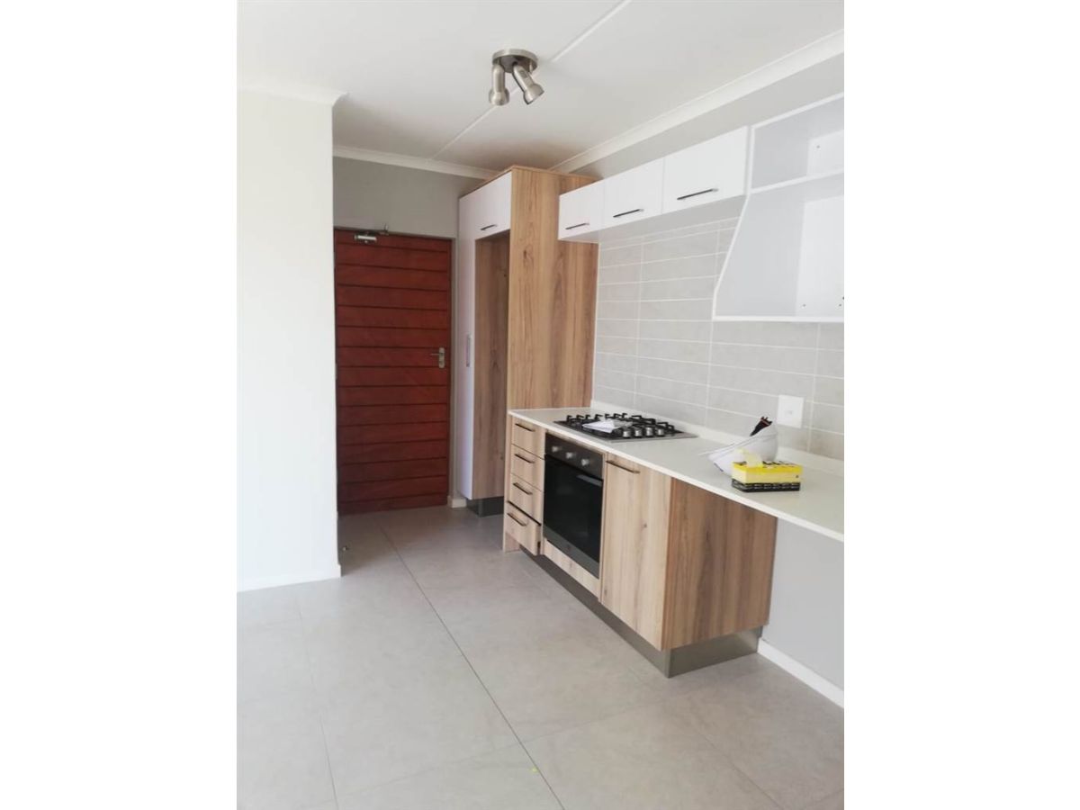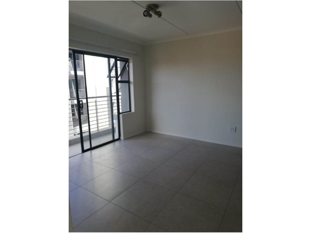 This is a modern 1-bedroom, 1-bathroom top-floor unit in Modderfontein (Pet-Friendly).