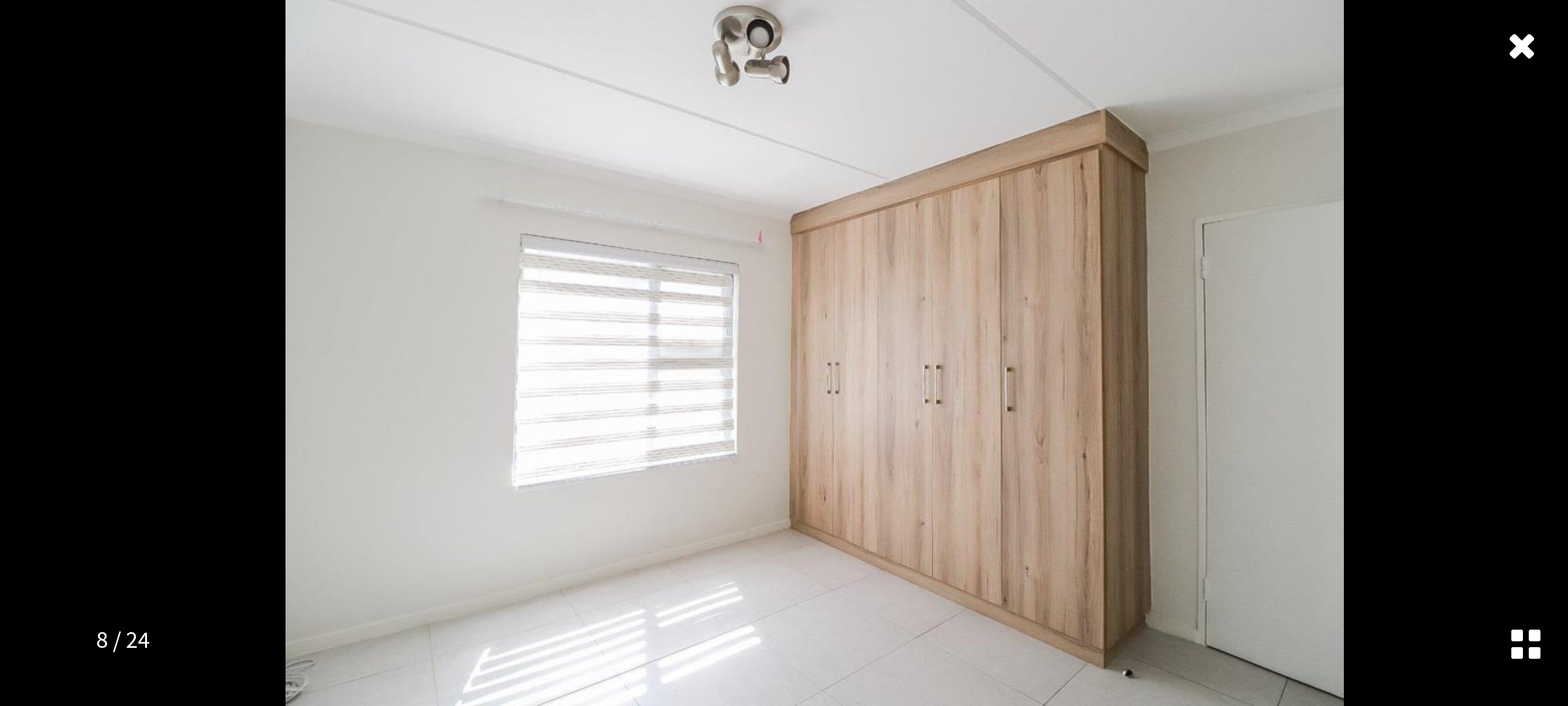 Customised fitted blinds throughout. Fitted security gates and a sliding door on the front. See-through burglar bars on all opening windows.