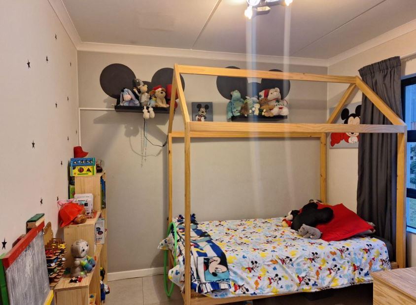 3 spacious bedrooms with tiled floors and ample built-in cupboards