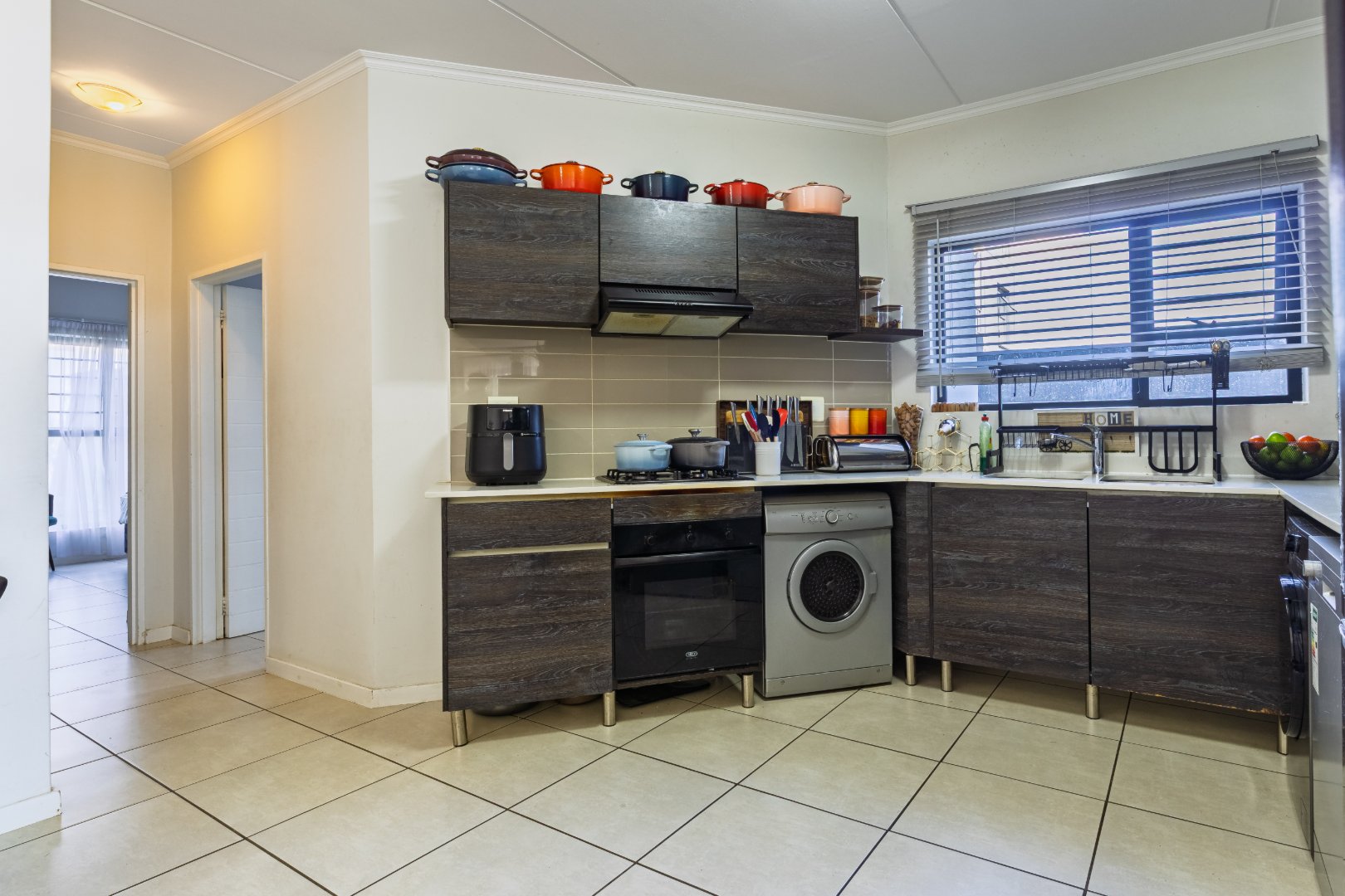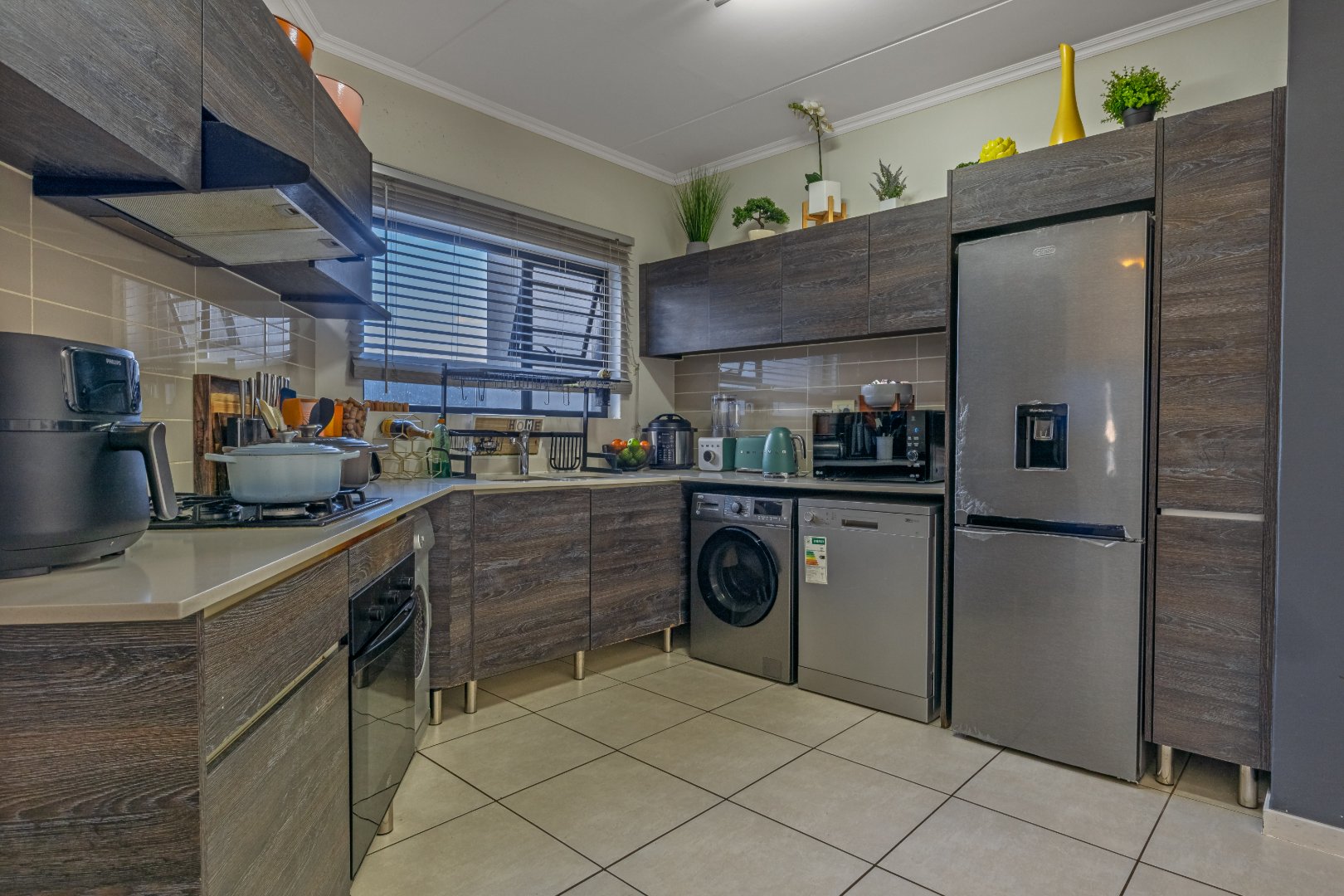The modern kitchen is equipped with a gas hob and ample space for three appliances, perfect for effortless entertaining.