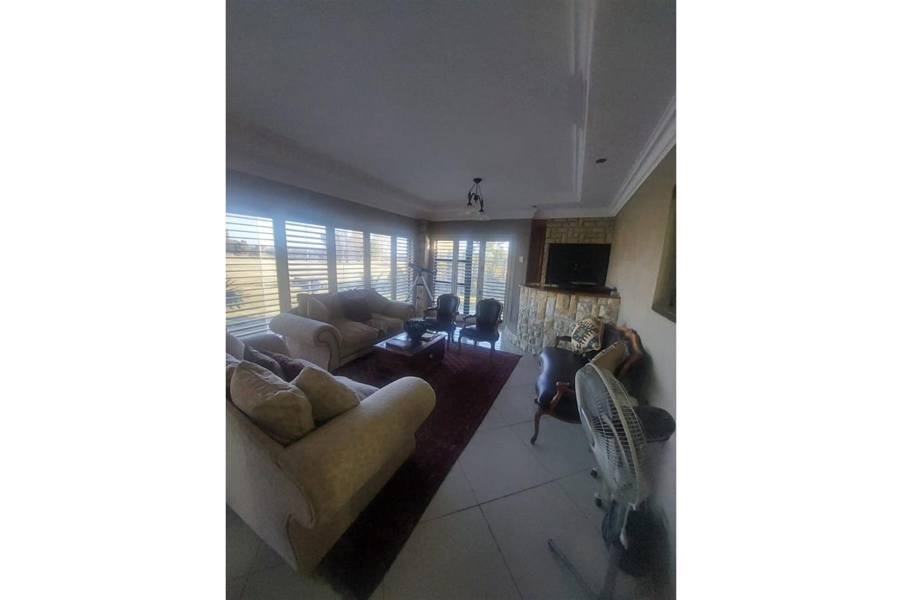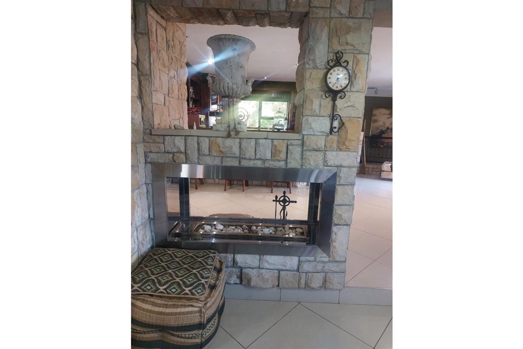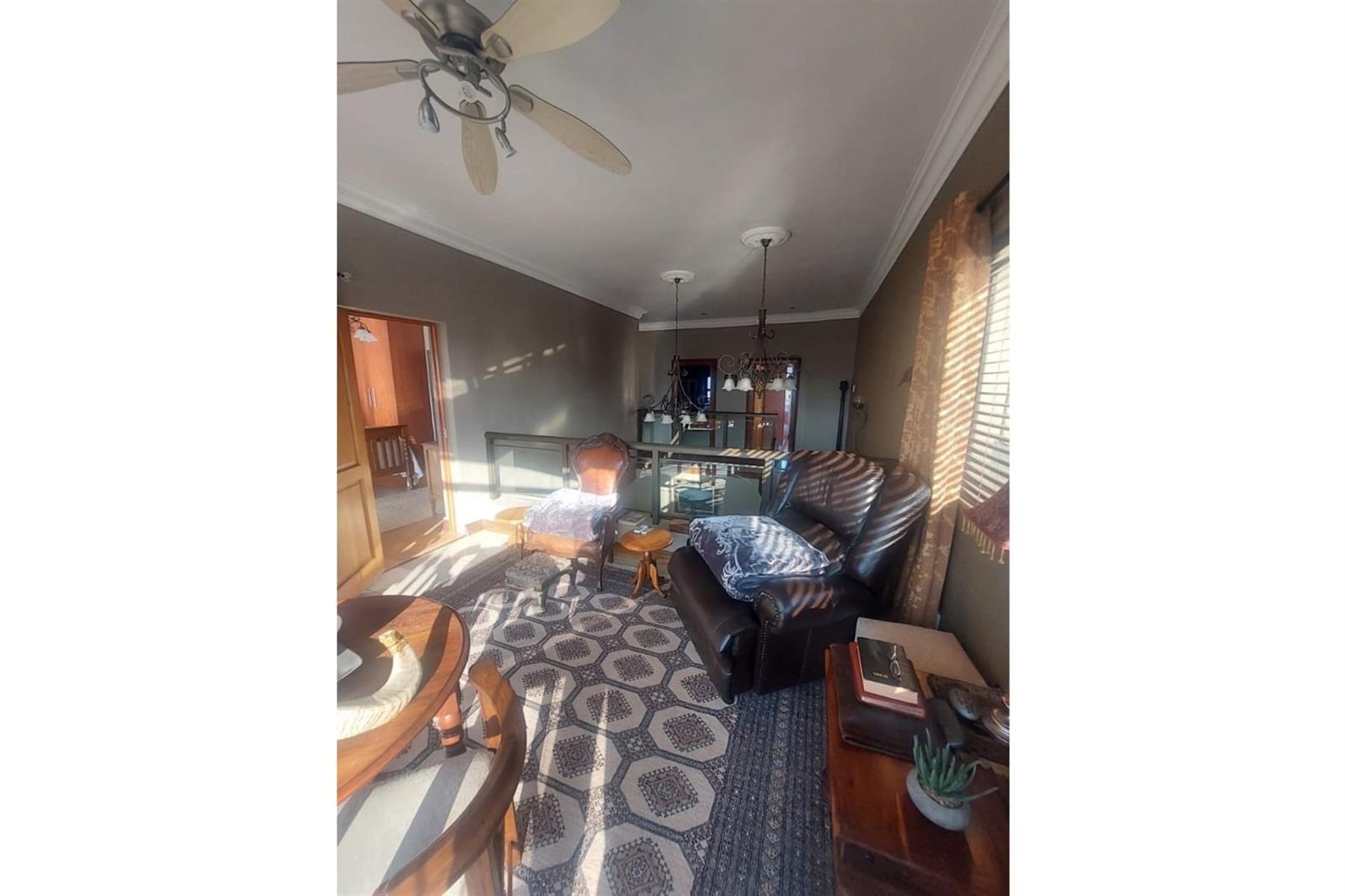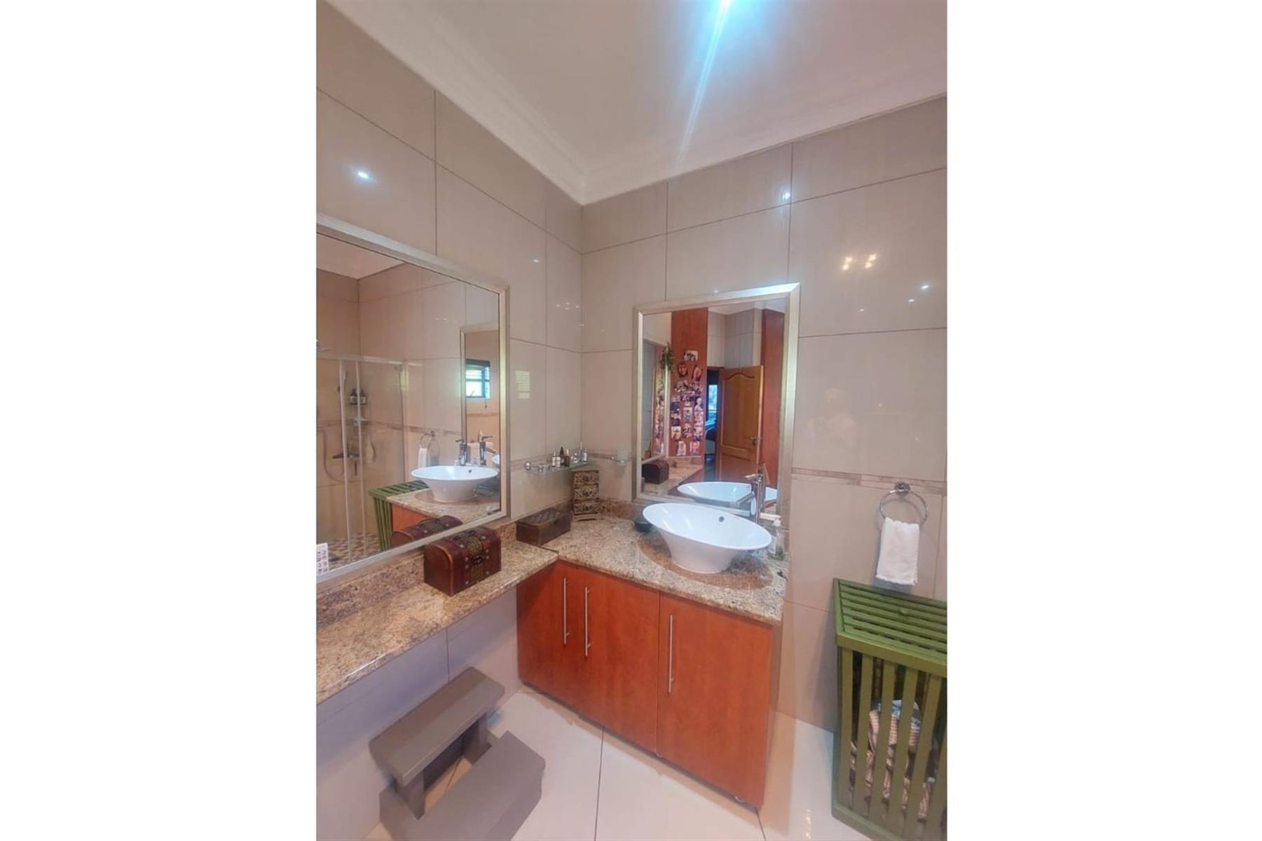 Upon entering the house, you are greeted by an impressive entrance hall. This space is enhanced by a built-in bar and chairs, creating a welcoming atmosphere for entertaining guests. The upper floor hosts a large entertainment area that includes a built-in braai. This area is designed for leisure and socializing, making it perfect for hosting events or spending quality time with friends and family.