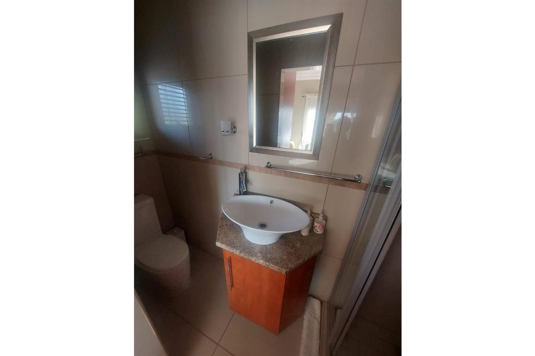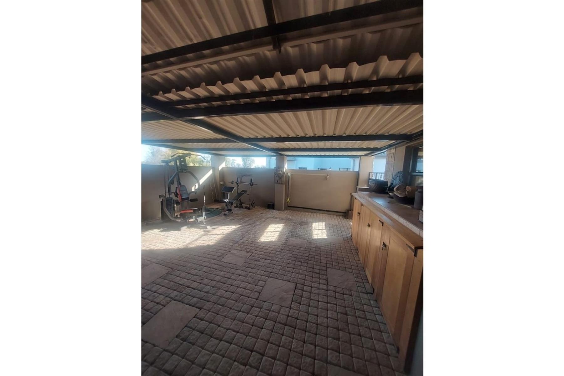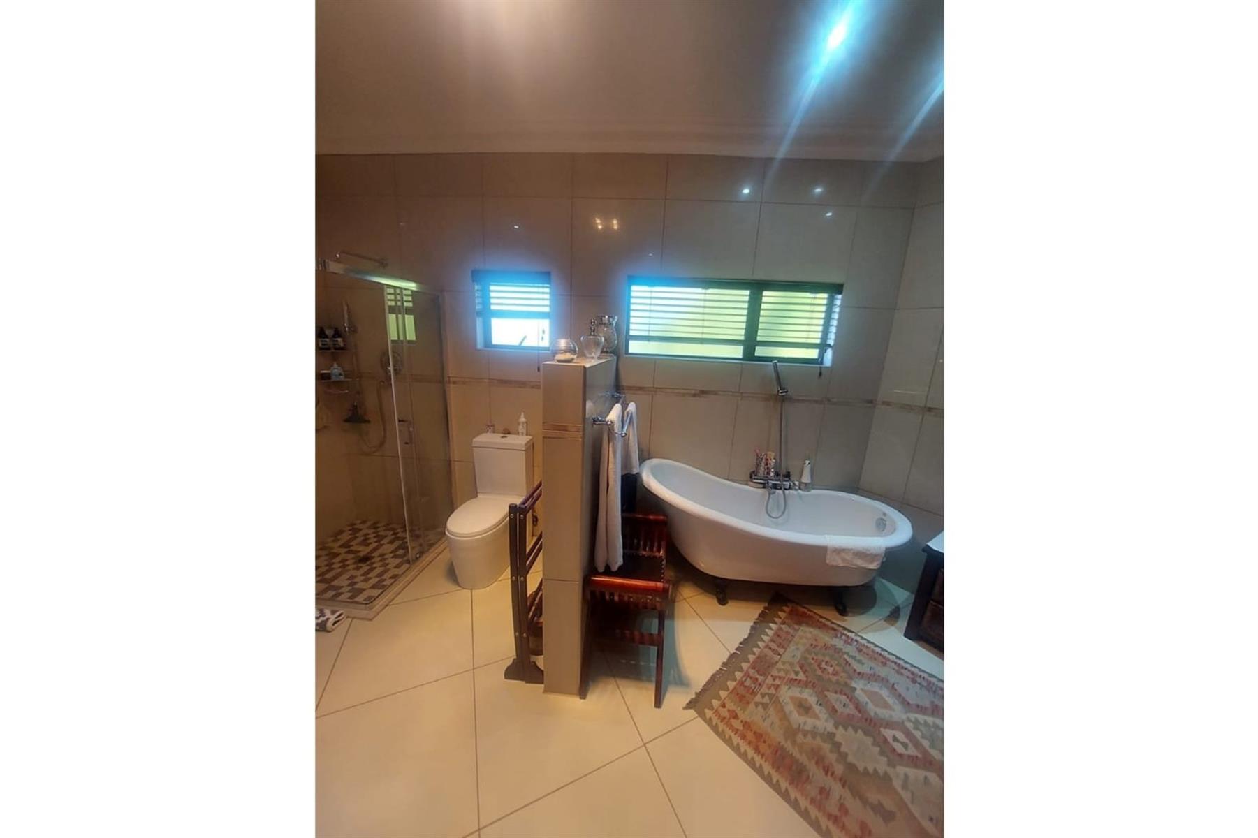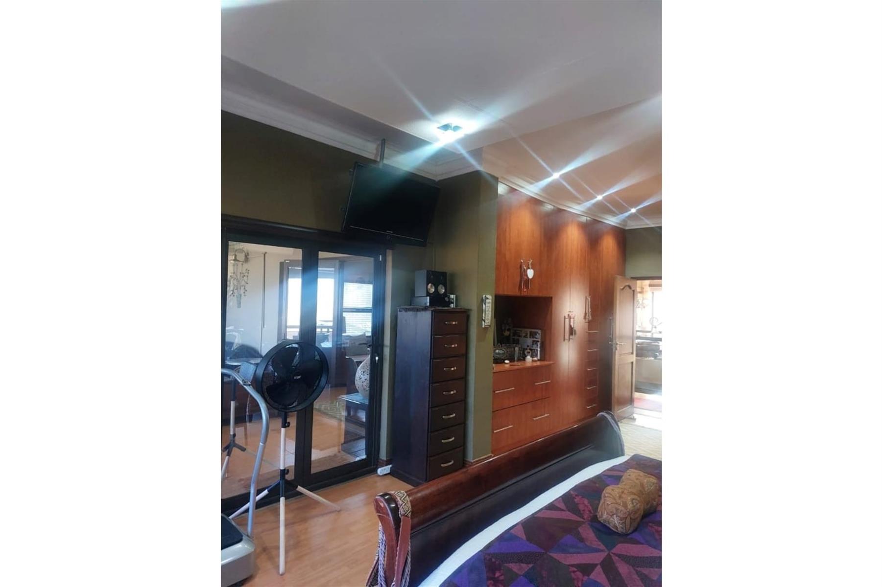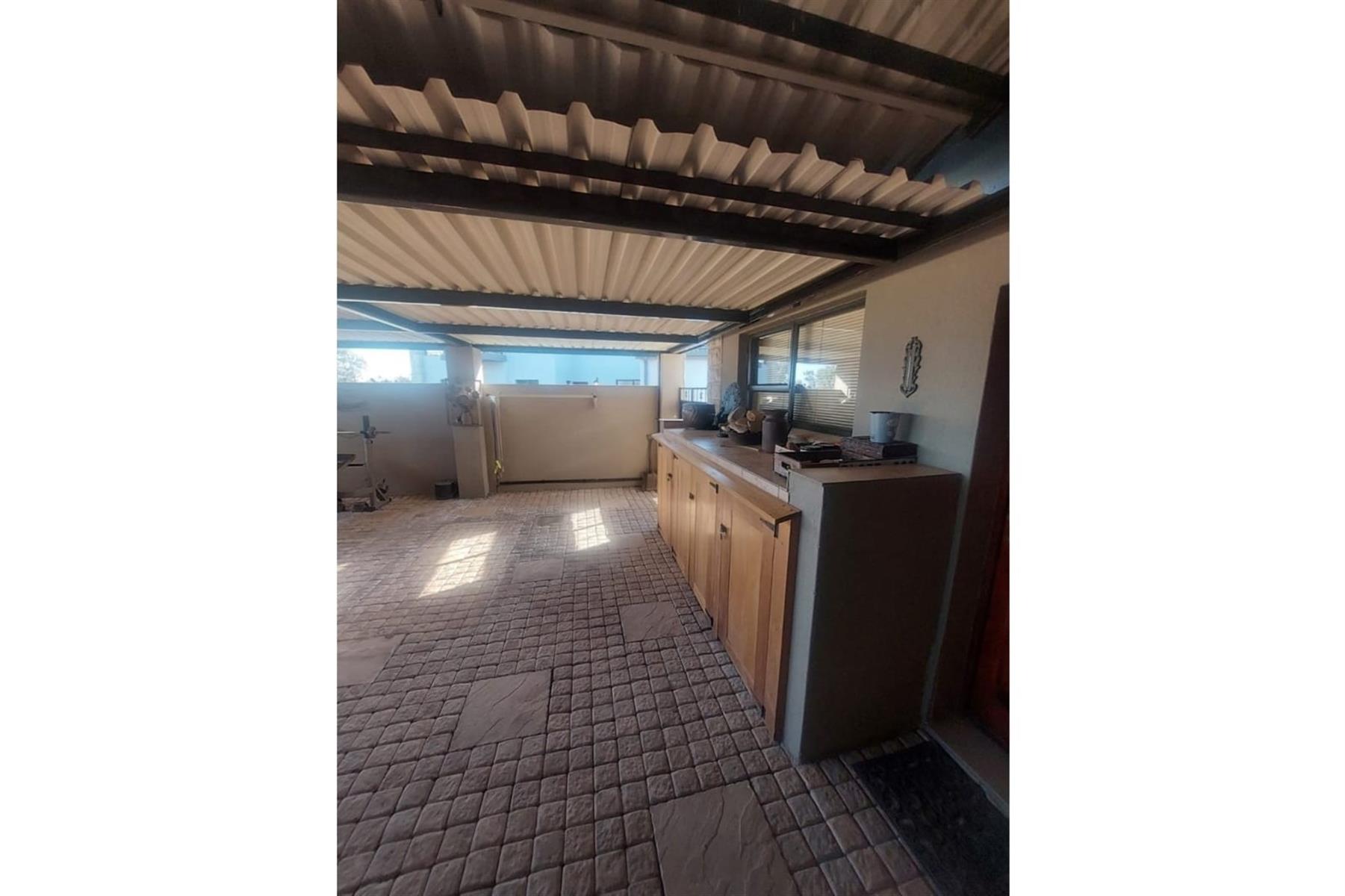 Upon entering the house, you are greeted by an impressive entrance hall. This space is enhanced by a built-in bar and chairs, creating a welcoming atmosphere for entertaining guests. The upper floor hosts a large entertainment area that includes a built-in braai. This area is designed for leisure and socializing, making it perfect for hosting events or spending quality time with friends and family.