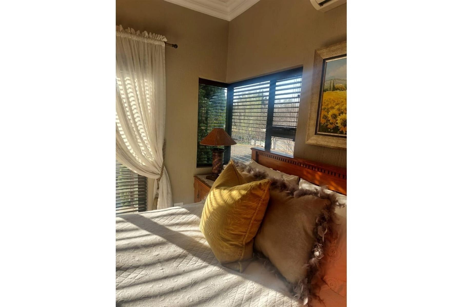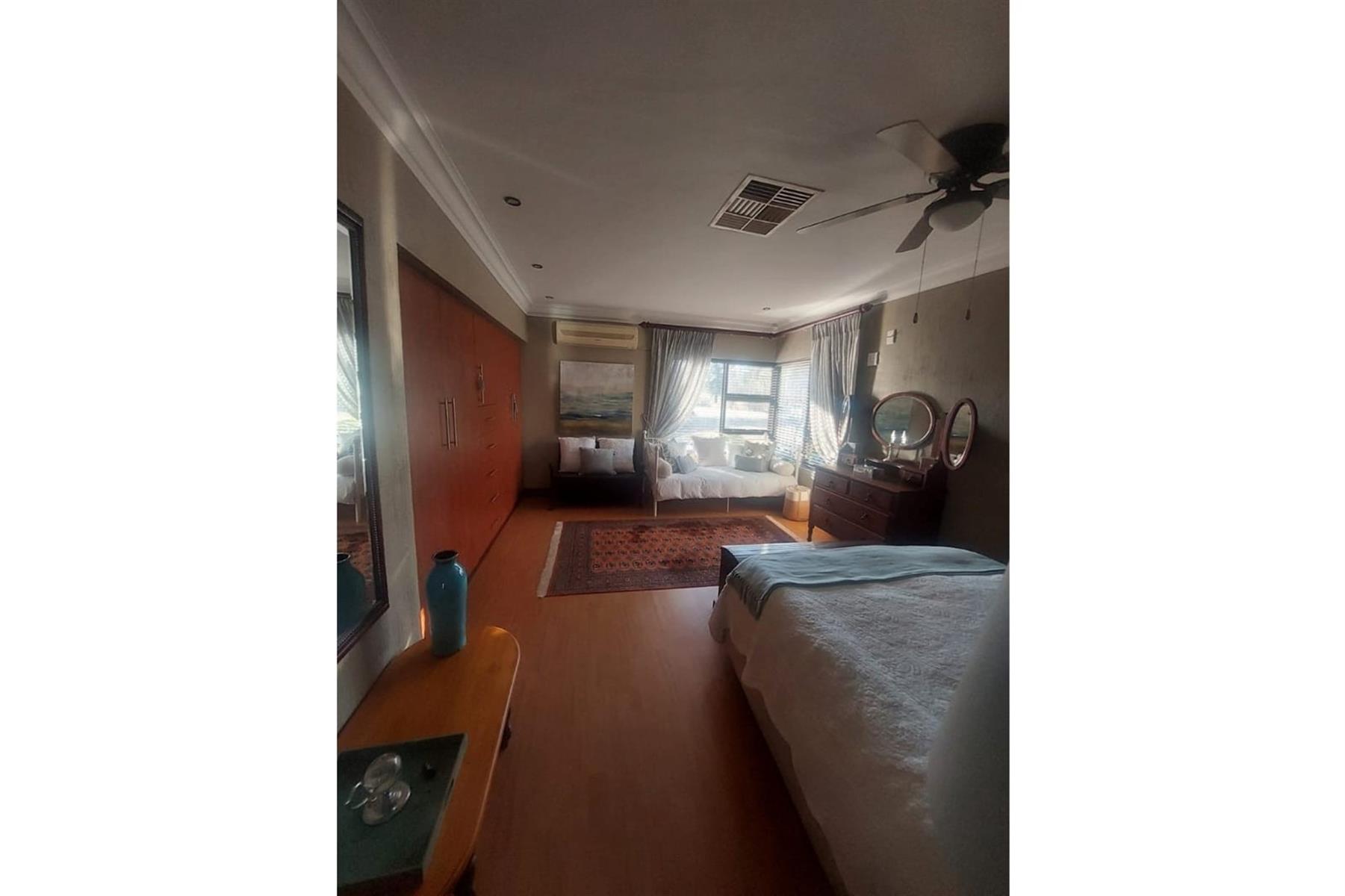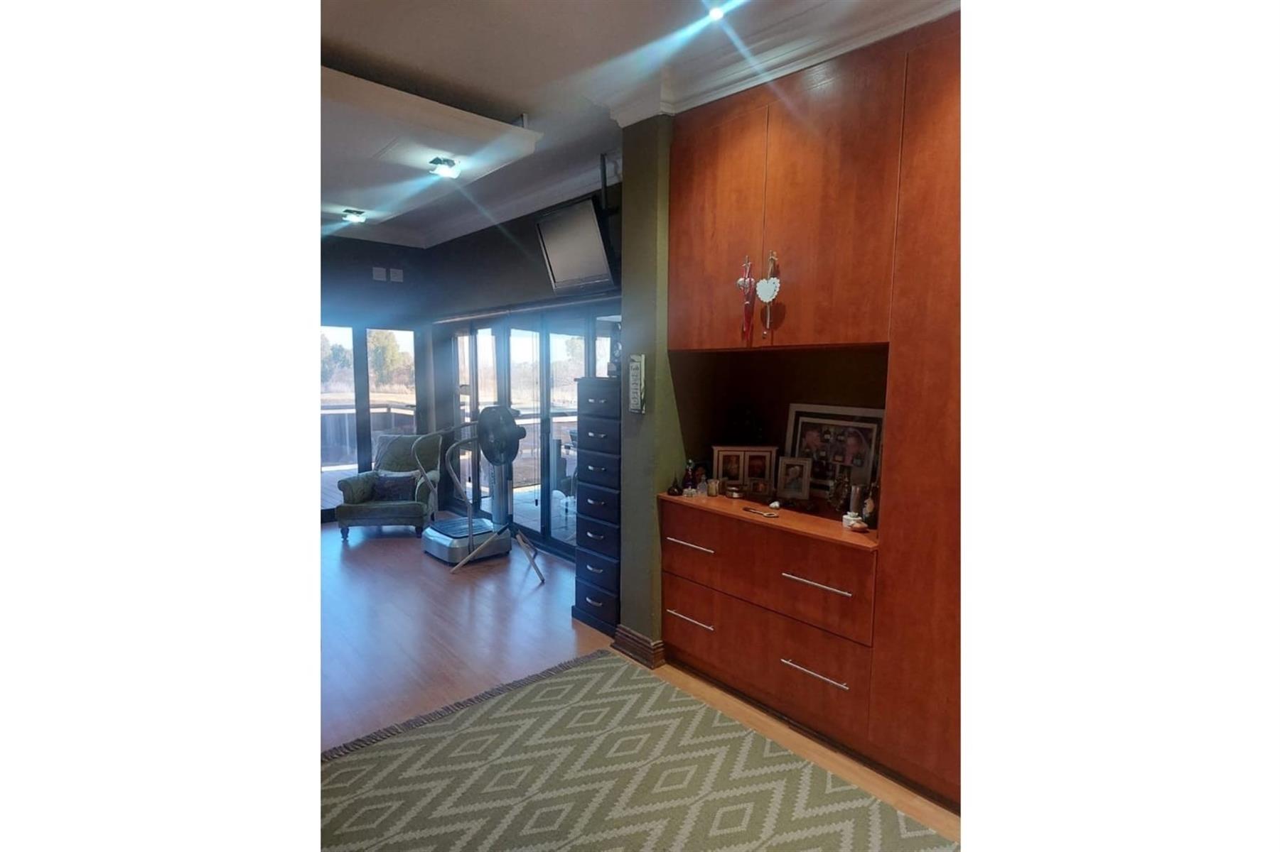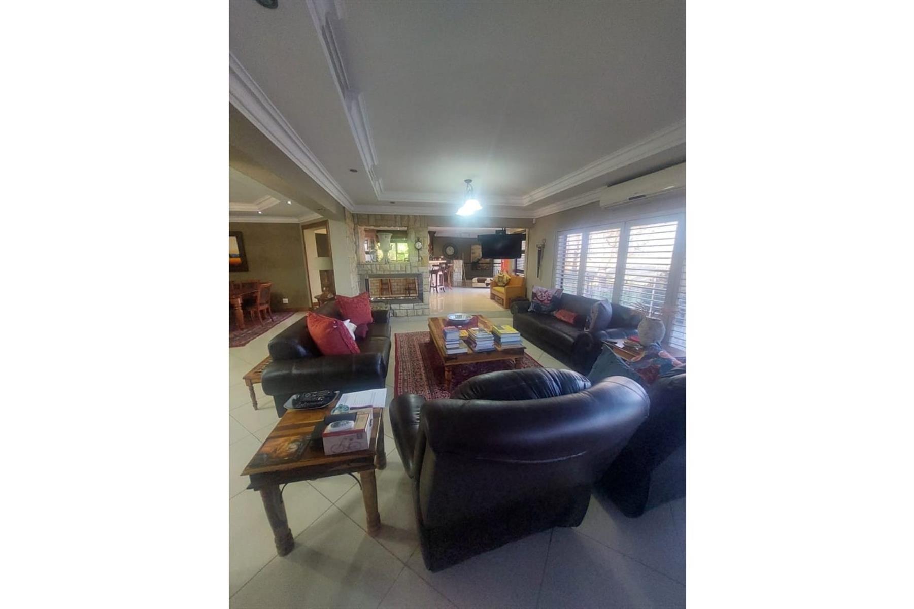 Upon entering the house, you are greeted by an impressive entrance hall. This space is enhanced by a built-in bar and chairs, creating a welcoming atmosphere for entertaining guests. The upper floor hosts a large entertainment area that includes a built-in braai. This area is designed for leisure and socializing, making it perfect for hosting events or spending quality time with friends and family.