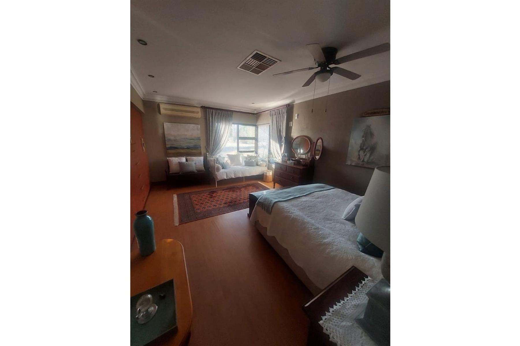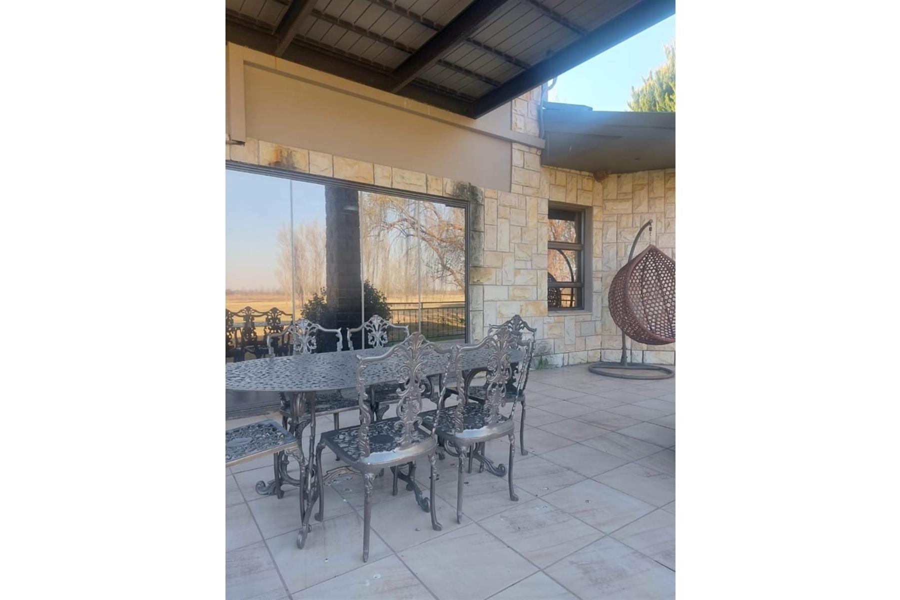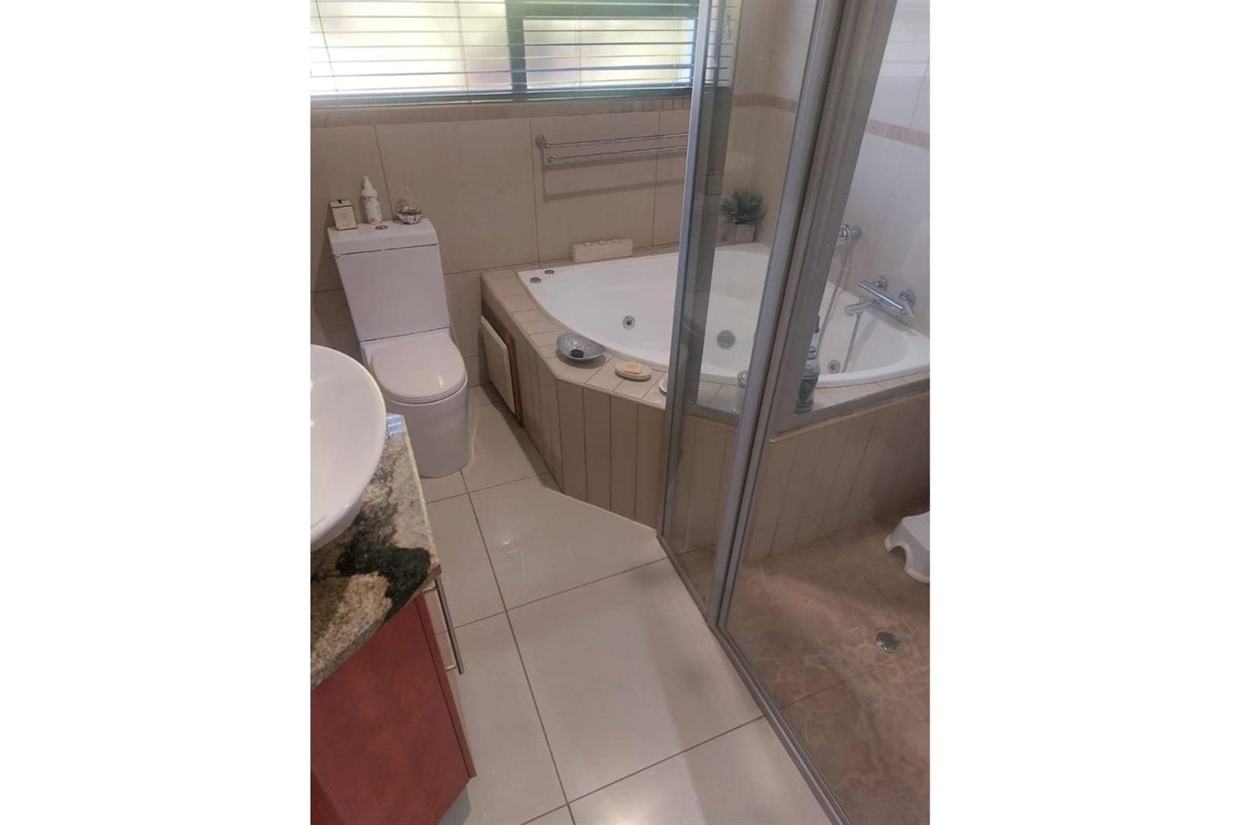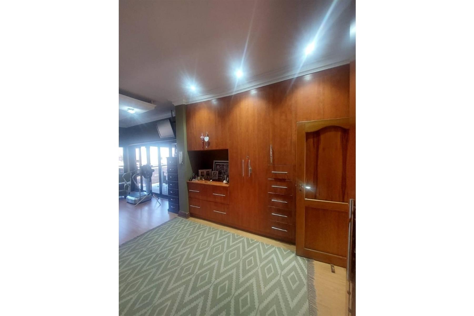 Upon entering the house, you are greeted by an impressive entrance hall. This space is enhanced by a built-in bar and chairs, creating a welcoming atmosphere for entertaining guests. The upper floor hosts a large entertainment area that includes a built-in braai. This area is designed for leisure and socializing, making it perfect for hosting events or spending quality time with friends and family.