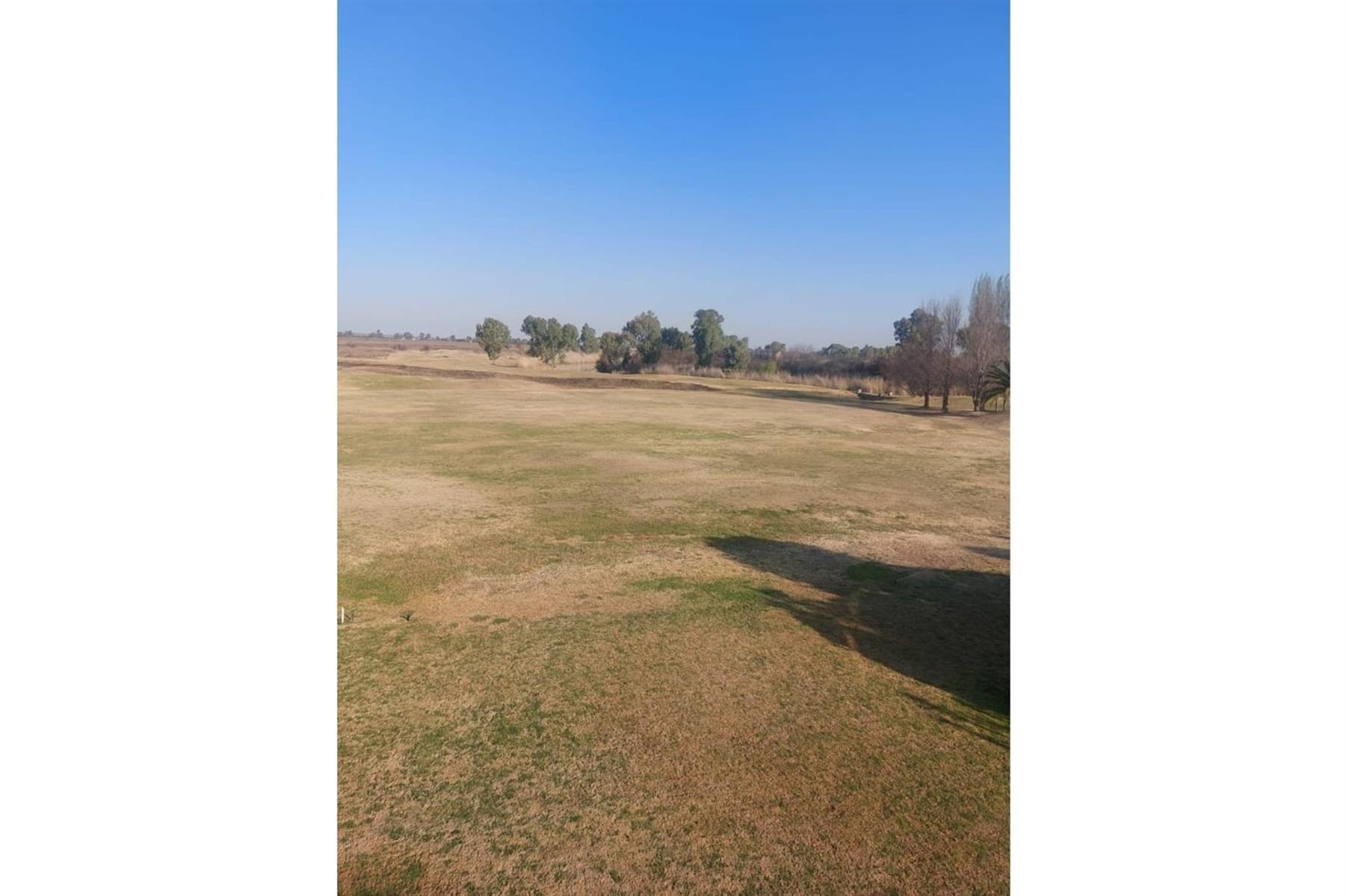 A basement provides extra storage space or the potential for various uses. The house features a large irrigation system that covers the surrounding grass, which is spread over the golf course, contributing to the picturesque landscape.