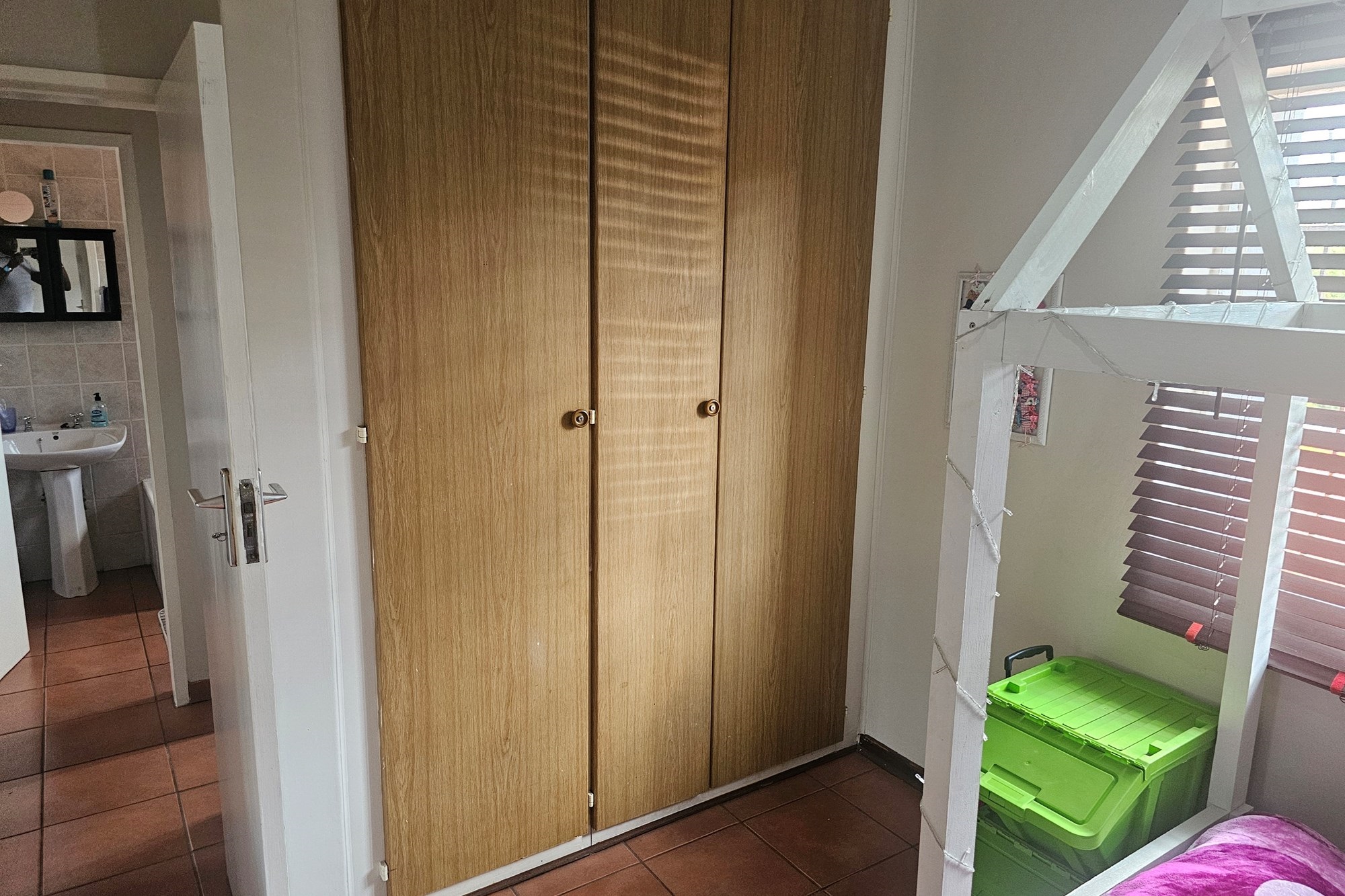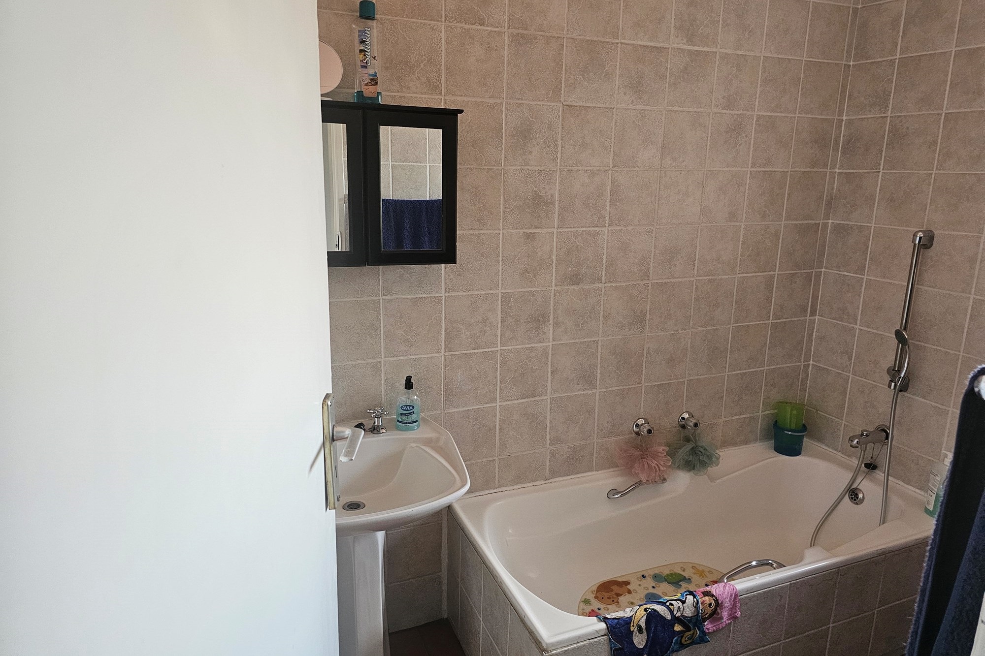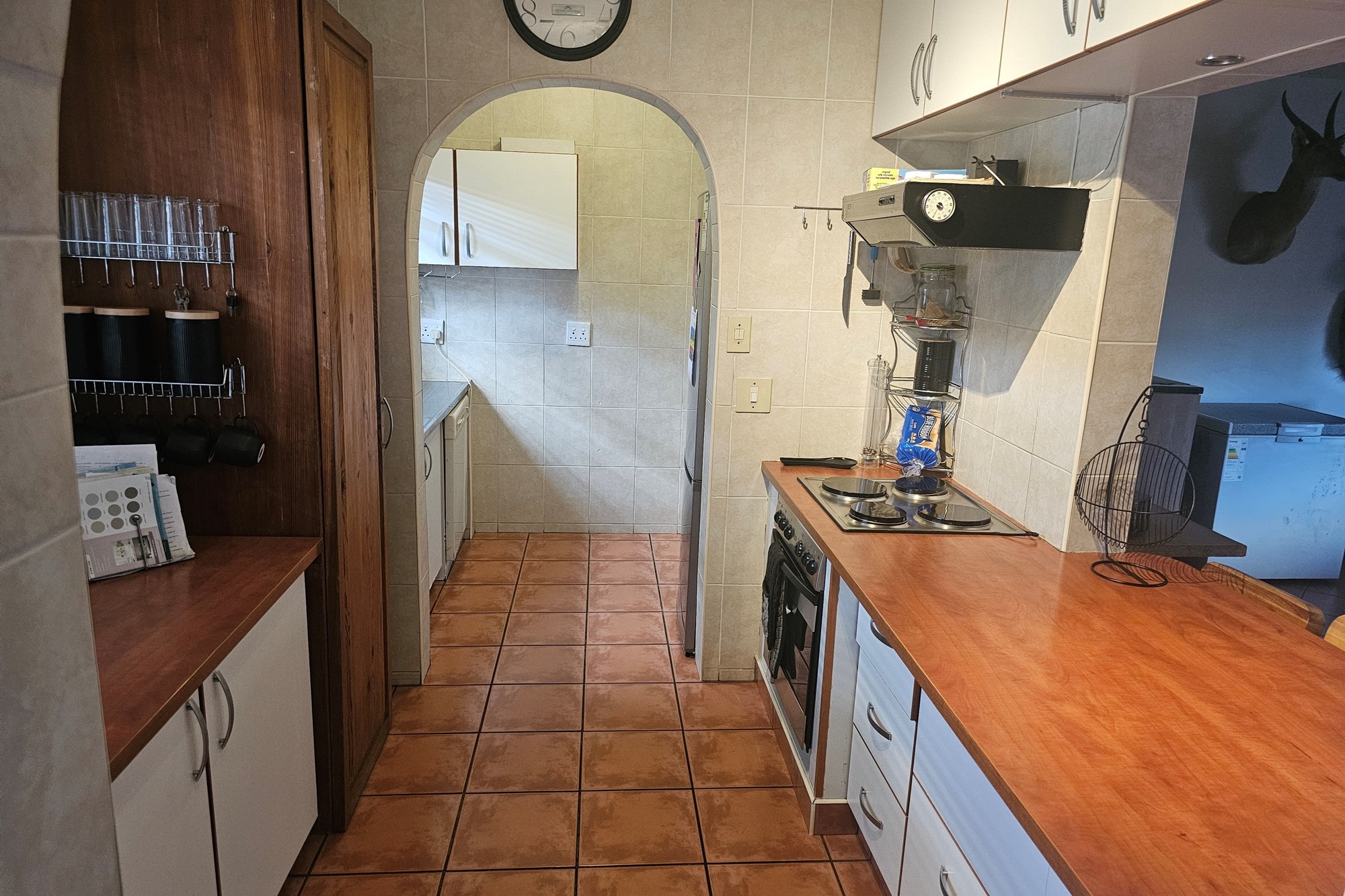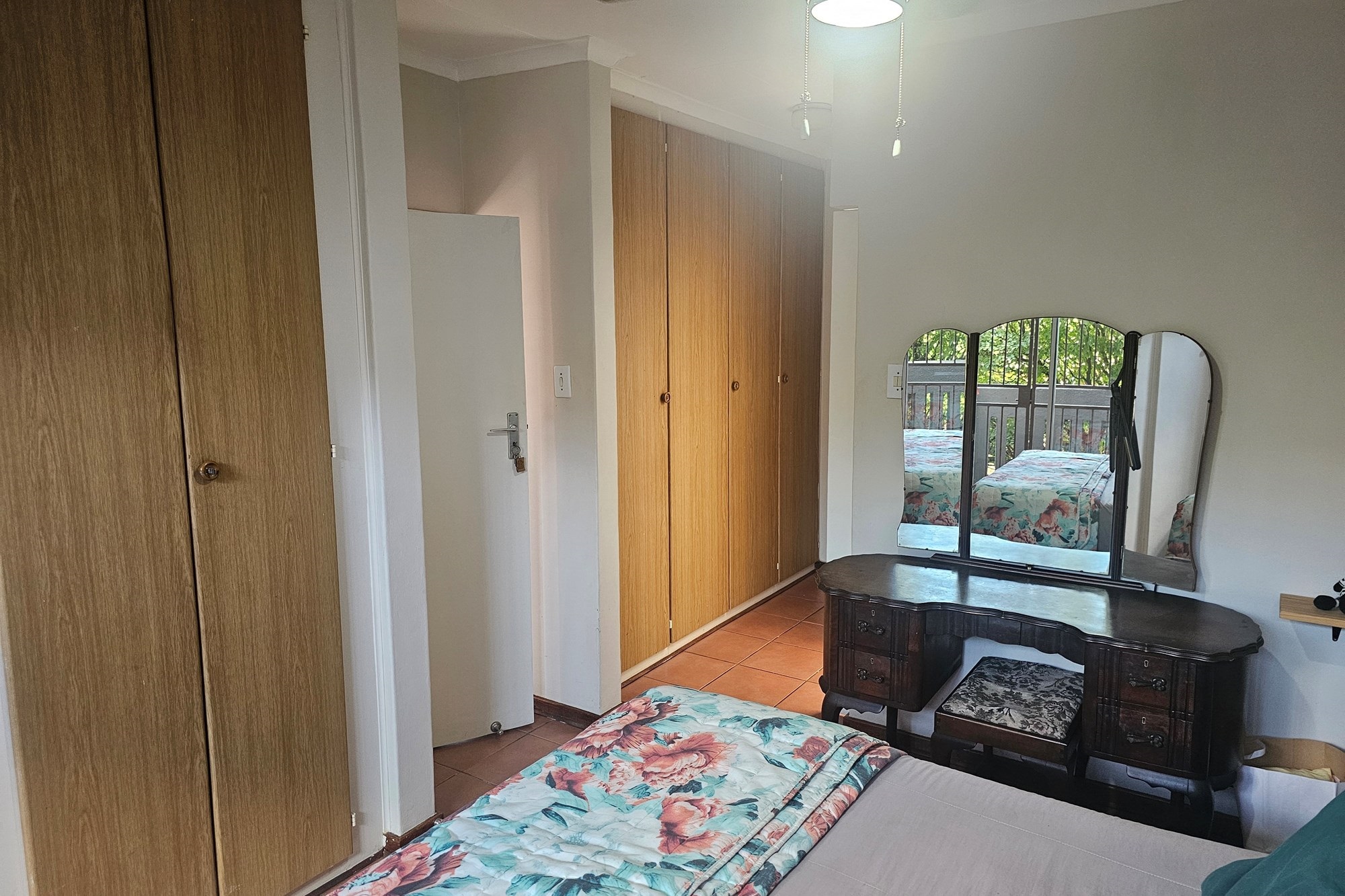 It has three bedrooms, all with built in cupboards, linen cupboard in passage, two neat bathrooms, main en-suite with shower. The other bathroom offers a bath and a shower.