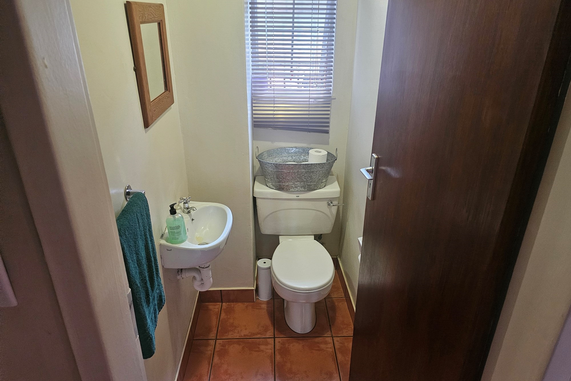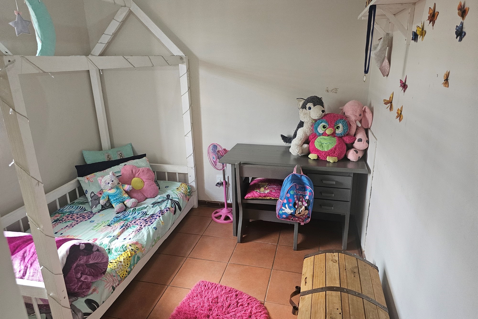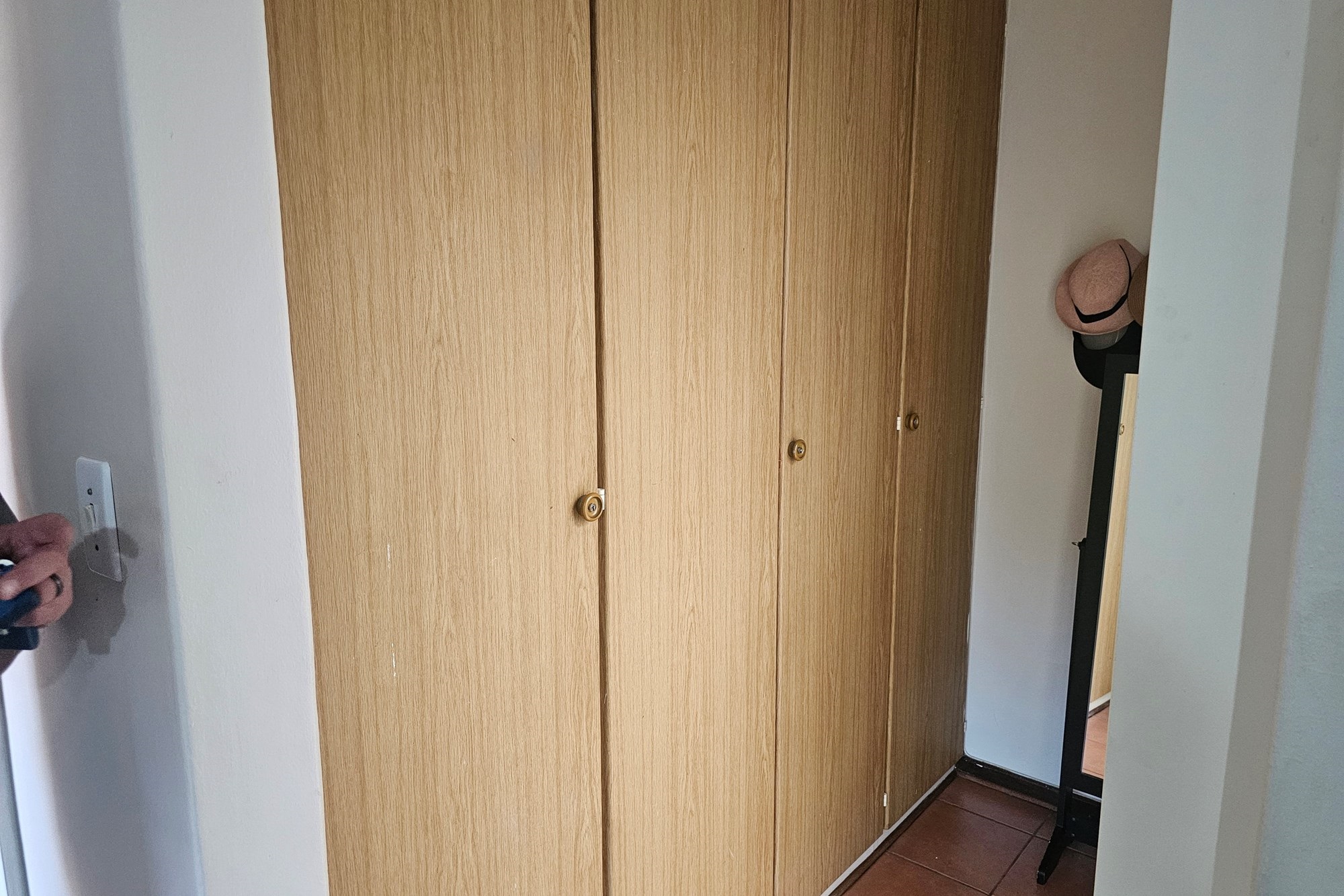 It has three bedrooms, all with built in cupboards, linen cupboard in passage, two neat bathrooms, main en-suite with shower. The other bathroom offers a bath and a shower.