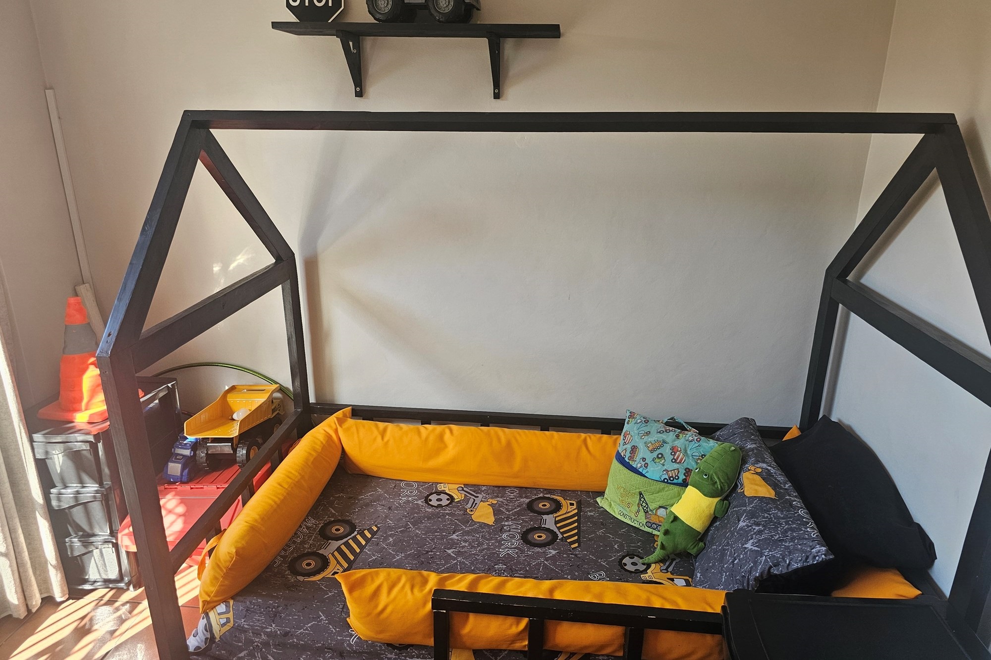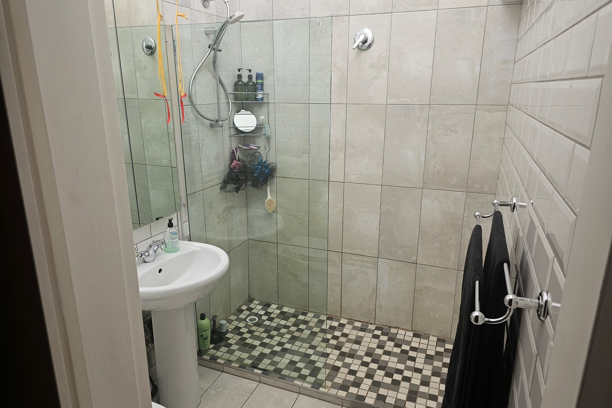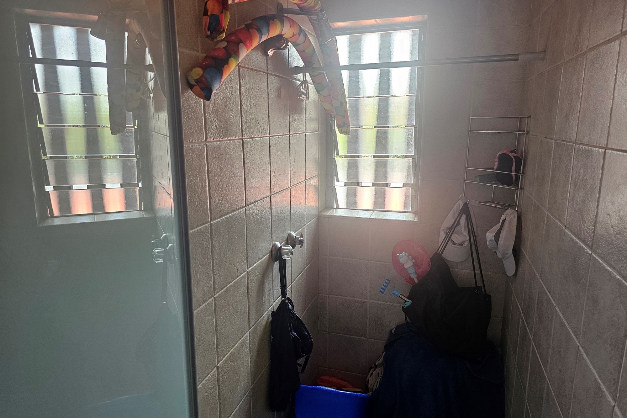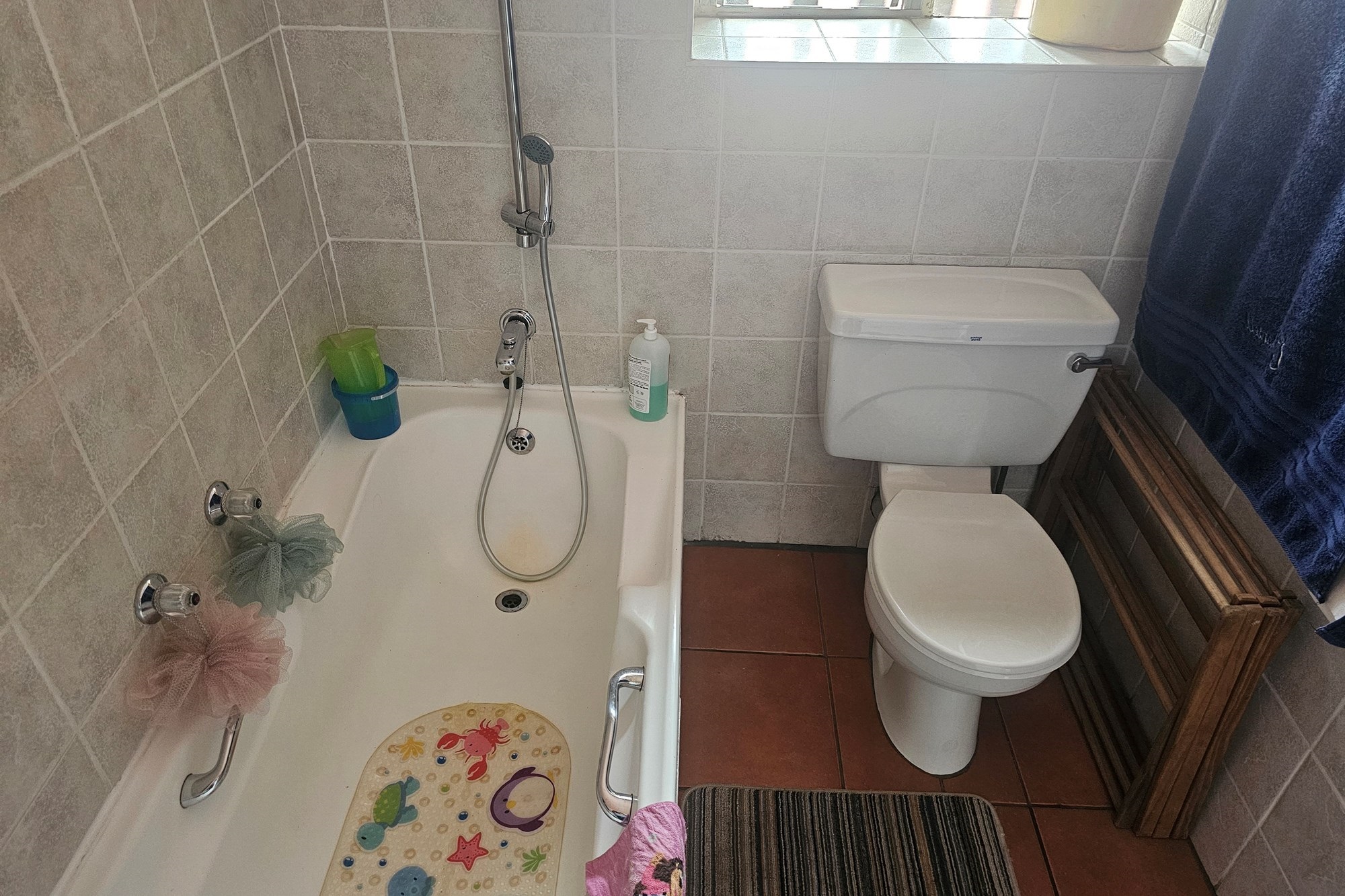 It has three bedrooms, all with built in cupboards, linen cupboard in passage, two neat bathrooms, main en-suite with shower. The other bathroom offers a bath and a shower.