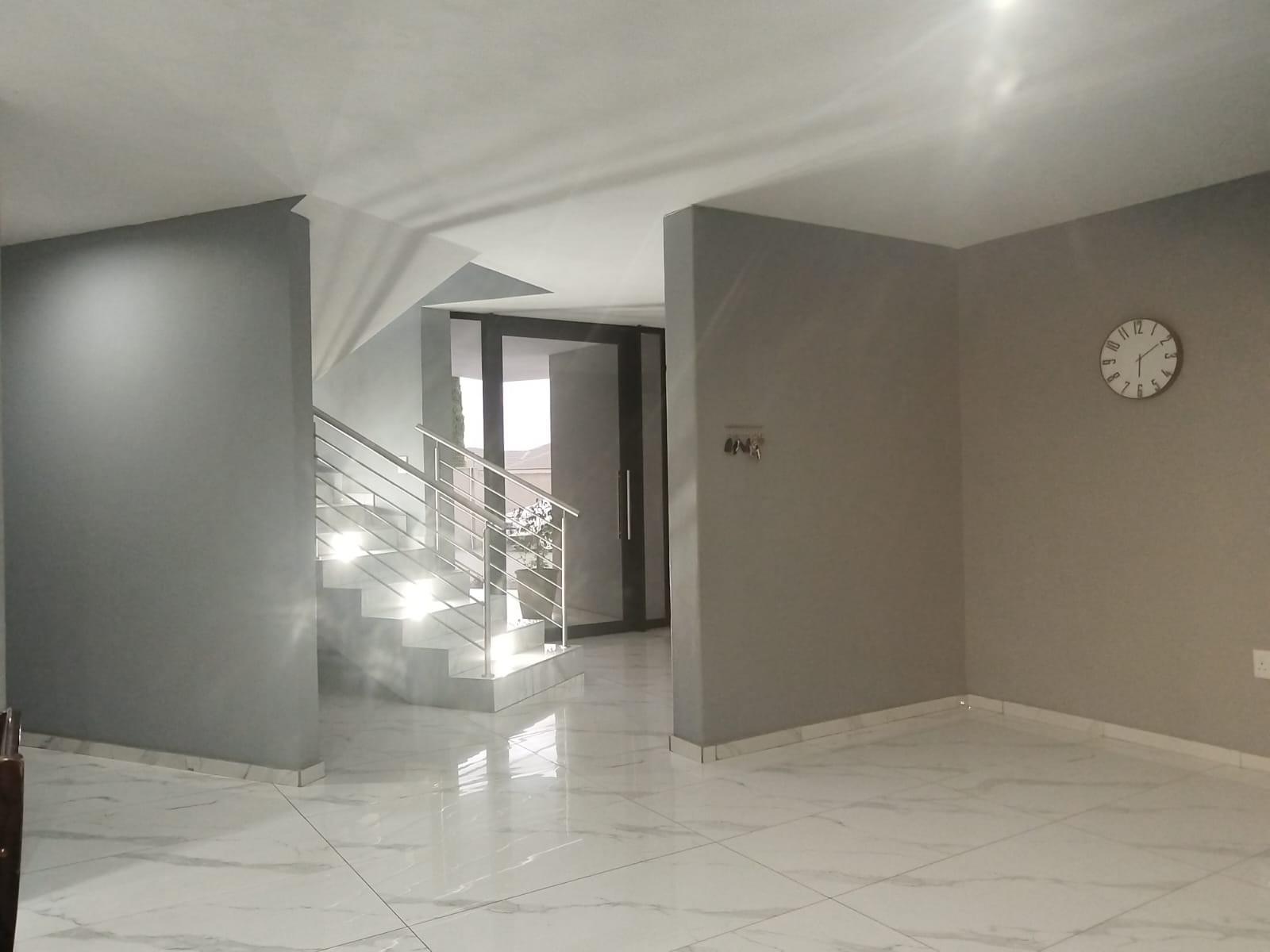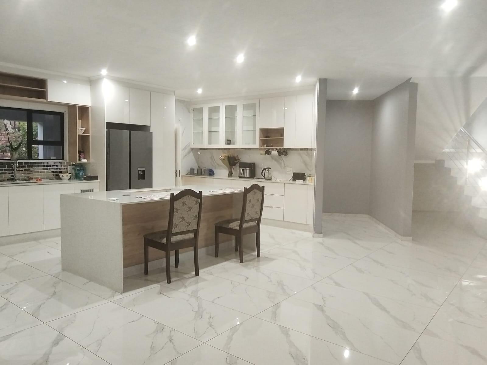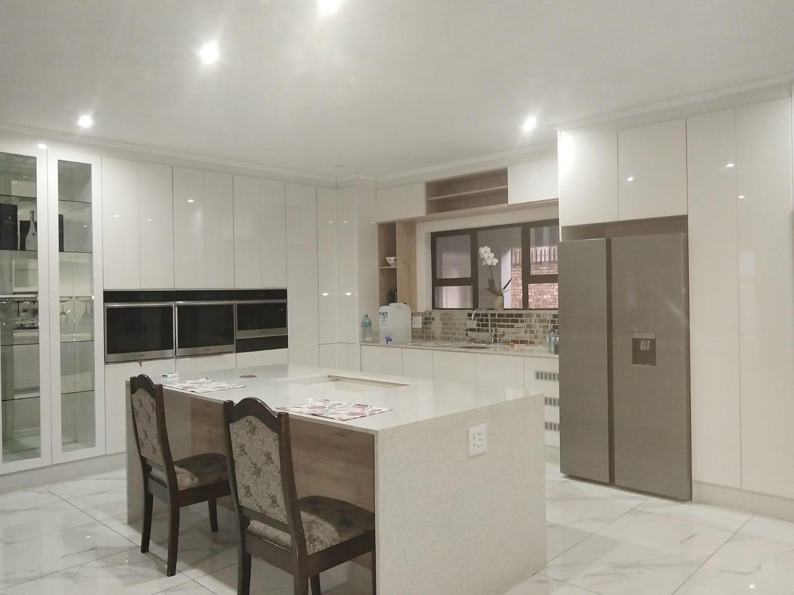 As you enter, the open-plan living areas offer a seamless flow, flooded with natural light, and provide easy access to stacking doors that open up to a spacious patio with picturesque views of the pool. The gourmet kitchen is a dream, featuring high-end finishes, and is perfectly positioned to overlook the living spaces. A large scullery adds convenience and ample storage space.