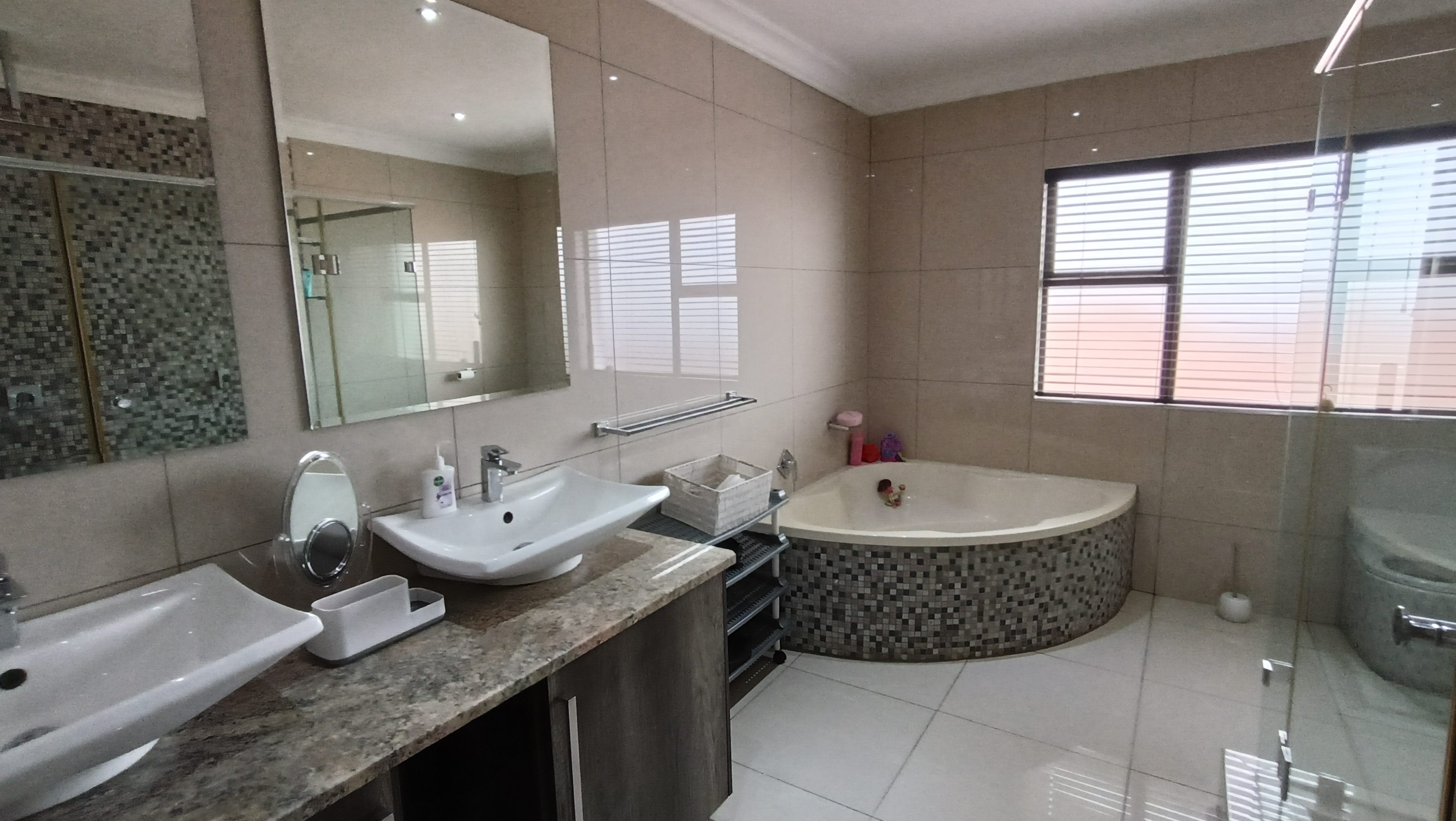 This beautiful double-storey home offers 3 spacious bedrooms, each with its own en-suite bathroom, as well as a guest bathroom. The home features large open-plan living areas, a massive kitchen, and a private study, making it perfect for comfortable family living.