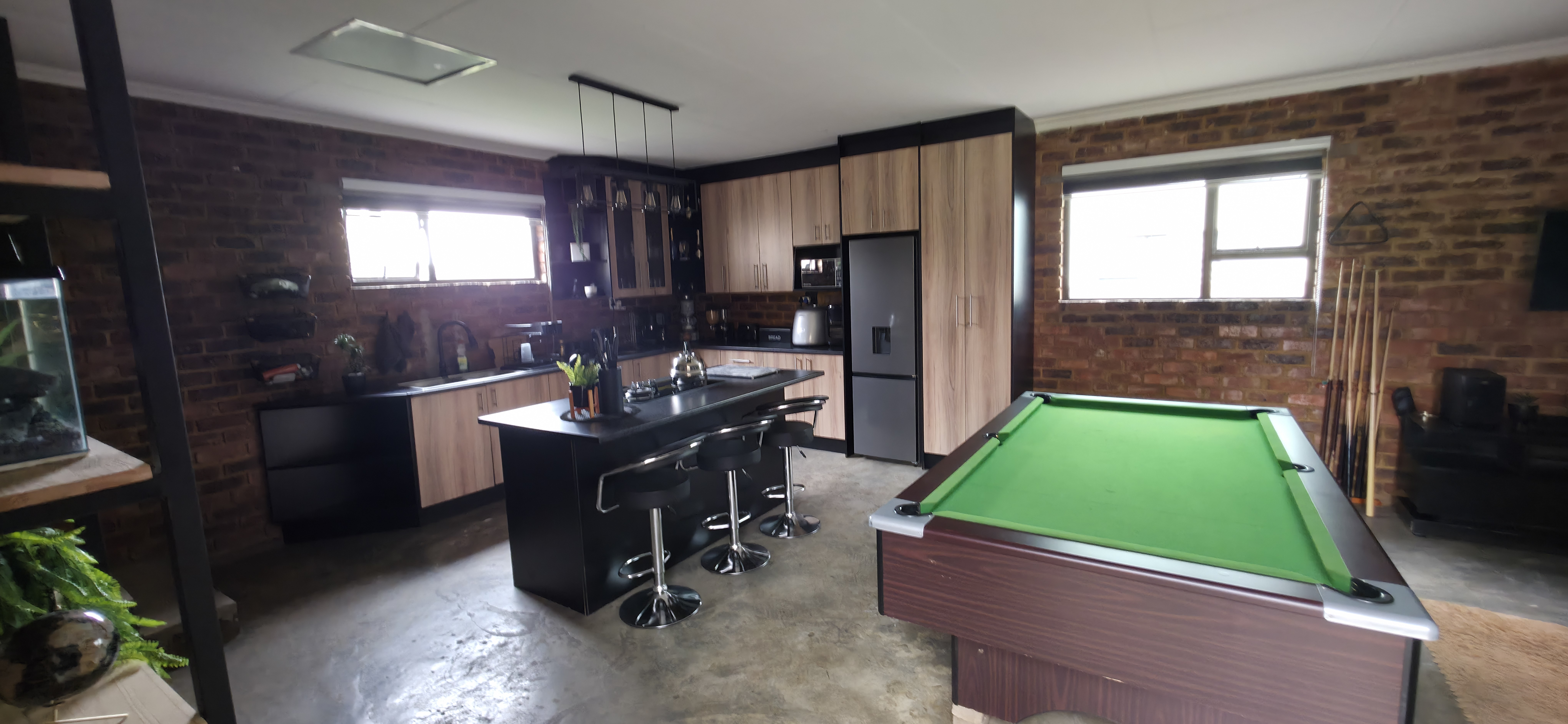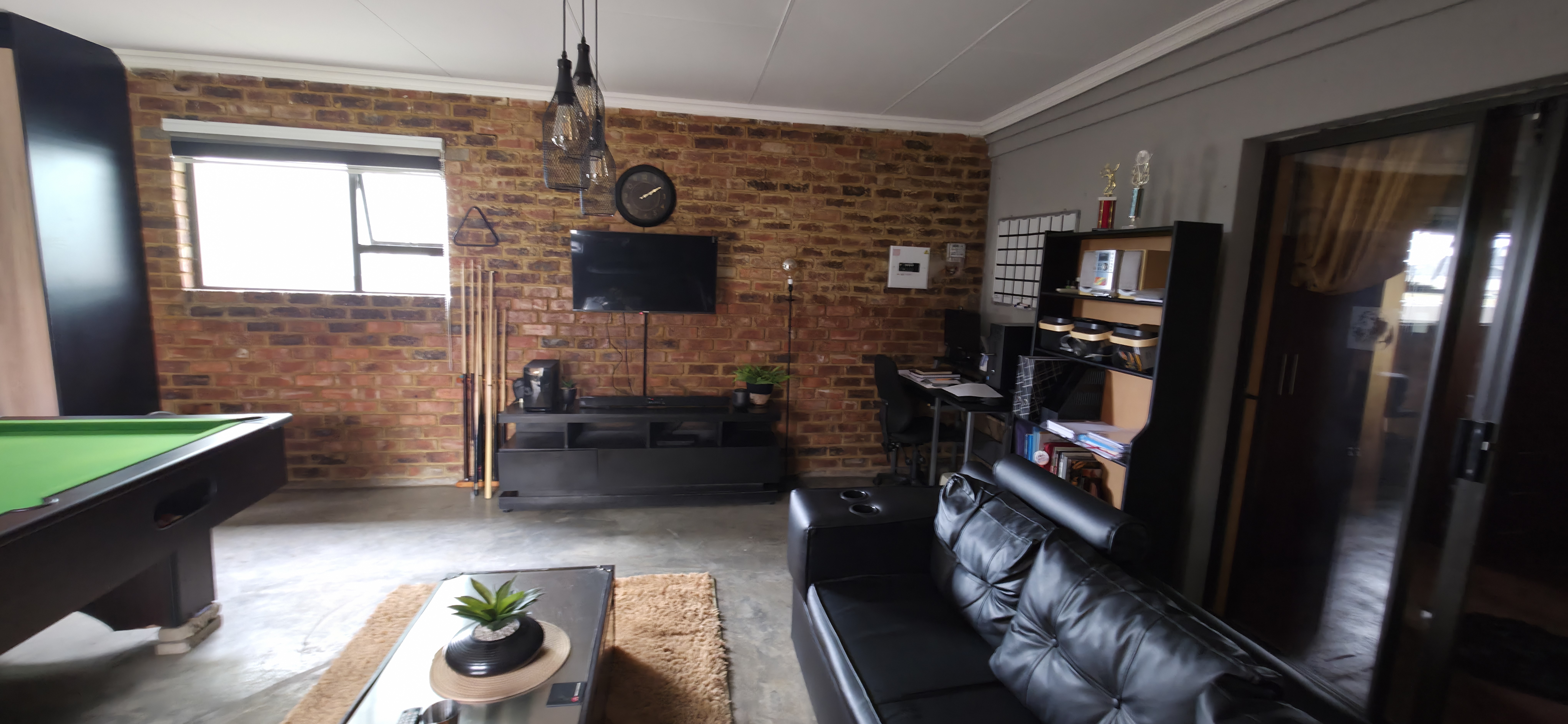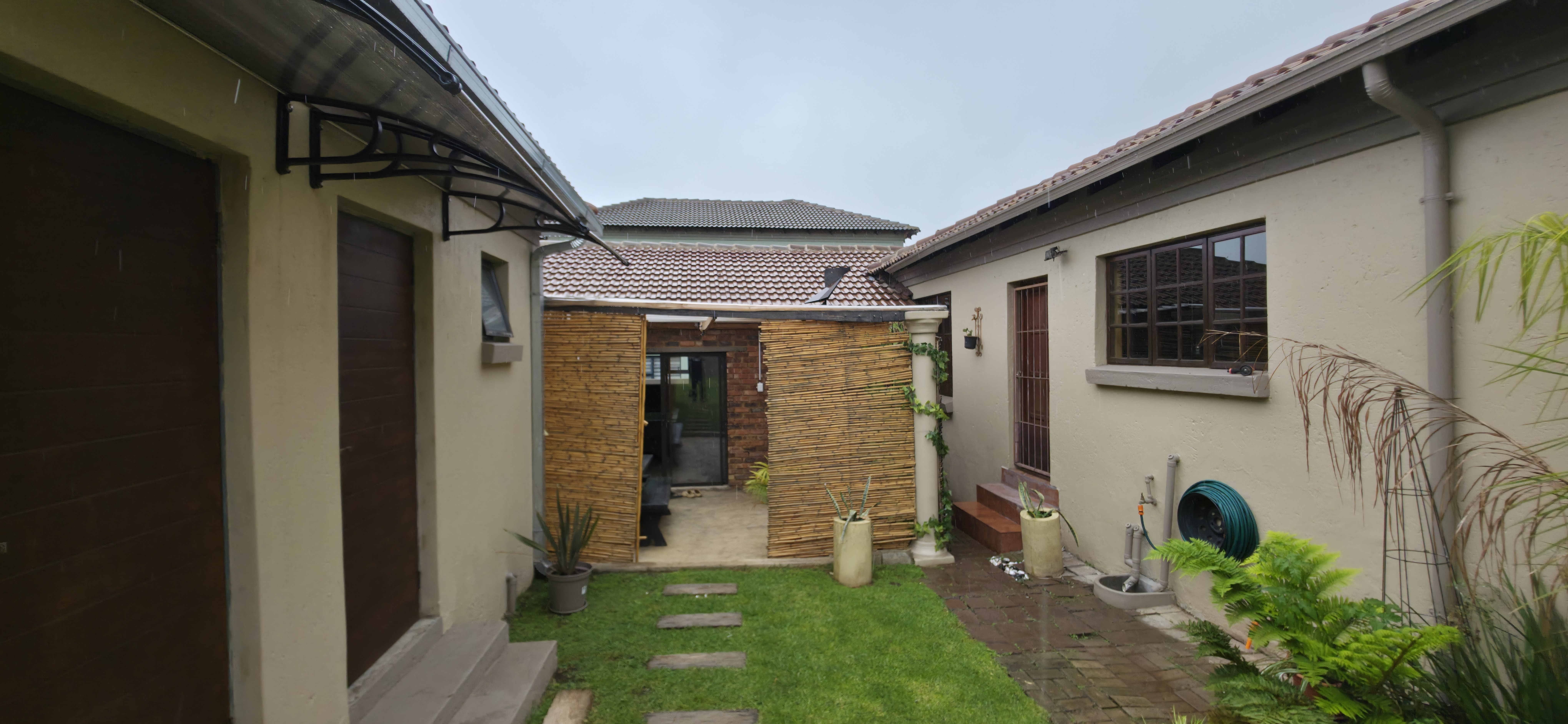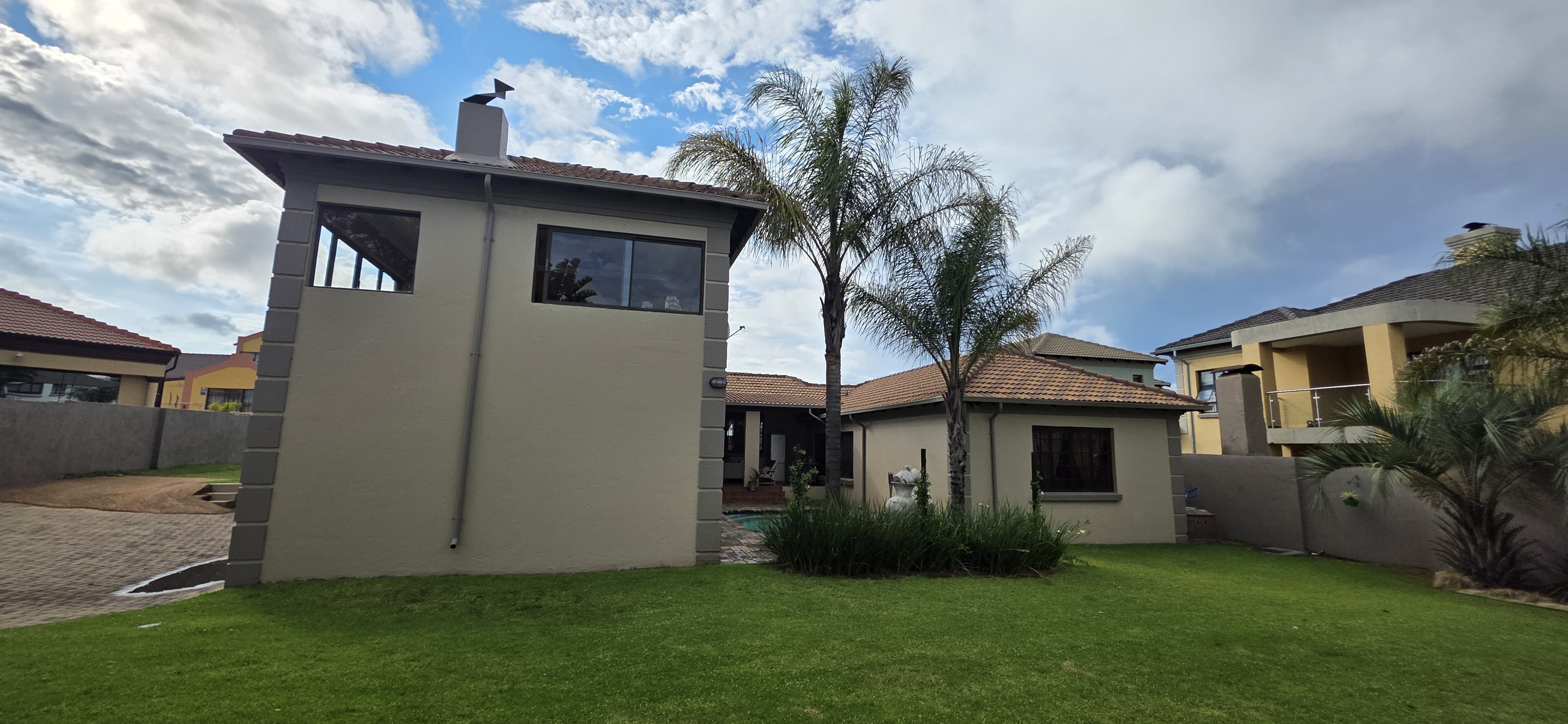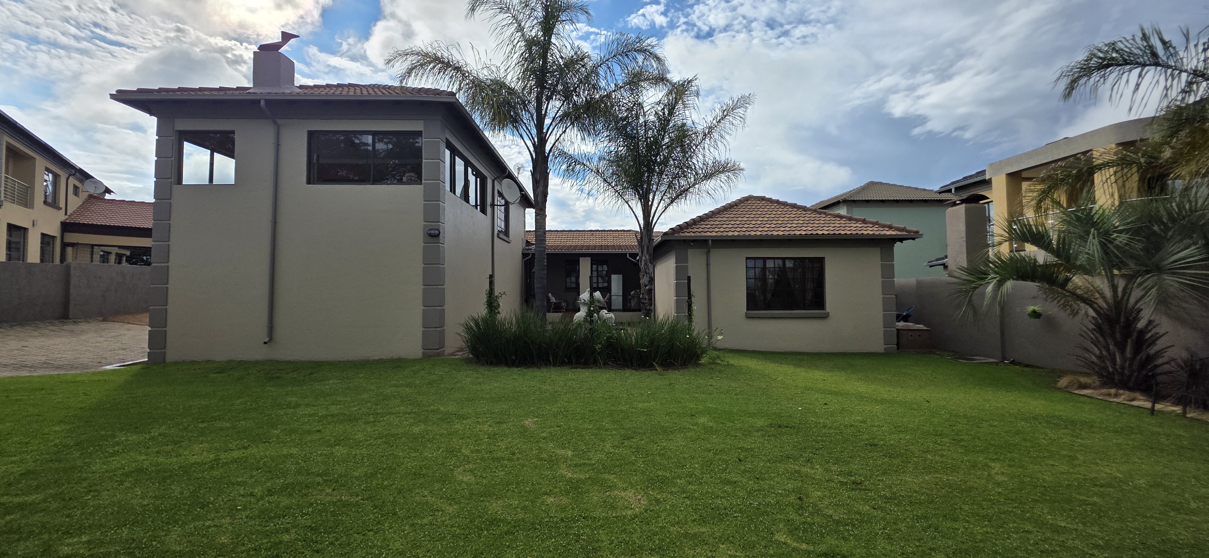 Nestled within a secure complex in the desirable Model Park suburb of Witbank. Spanning an impressive 1259 m2, this residence features an open-plan living area perfect for relaxation and entertaining, complemented by a modern kitchen with granite countertops, a breakfast nook, and ample storage. With five spacious bedrooms, each boasting built-in cupboards and five en-suite bathrooms, plus a guest toilet, this home is designed for family living. Enjoy the upper-level family room that opens to an indoor braai area with stunning views, a recreation room with its own kitchen leading to a patio, and a beautifully manicured garden with a sparkling pool. Additional highlights include three automated garages, a carport, a store room, prepaid electricity, and a 5000lt JoJo tank with a pressure pump, all while benefiting from low monthly levies. Don't miss the opportunity to make this exquisite property your family's new sanctuary!