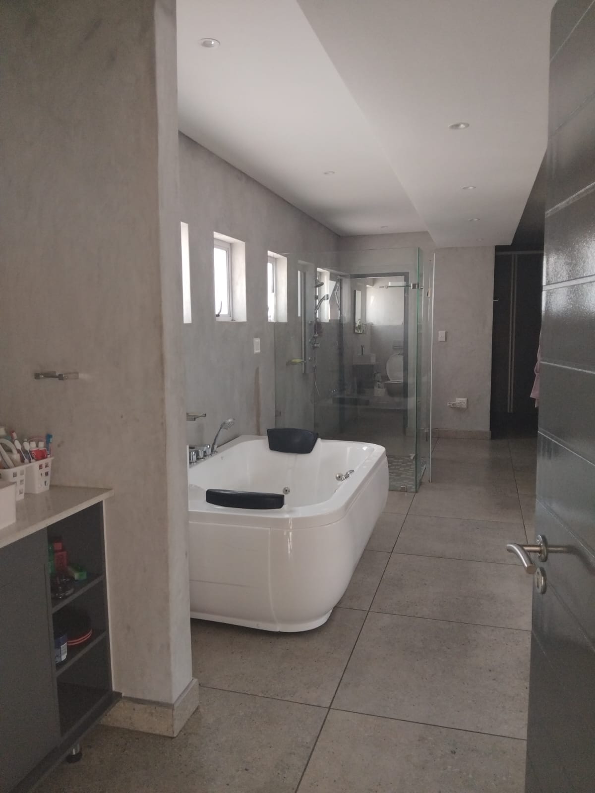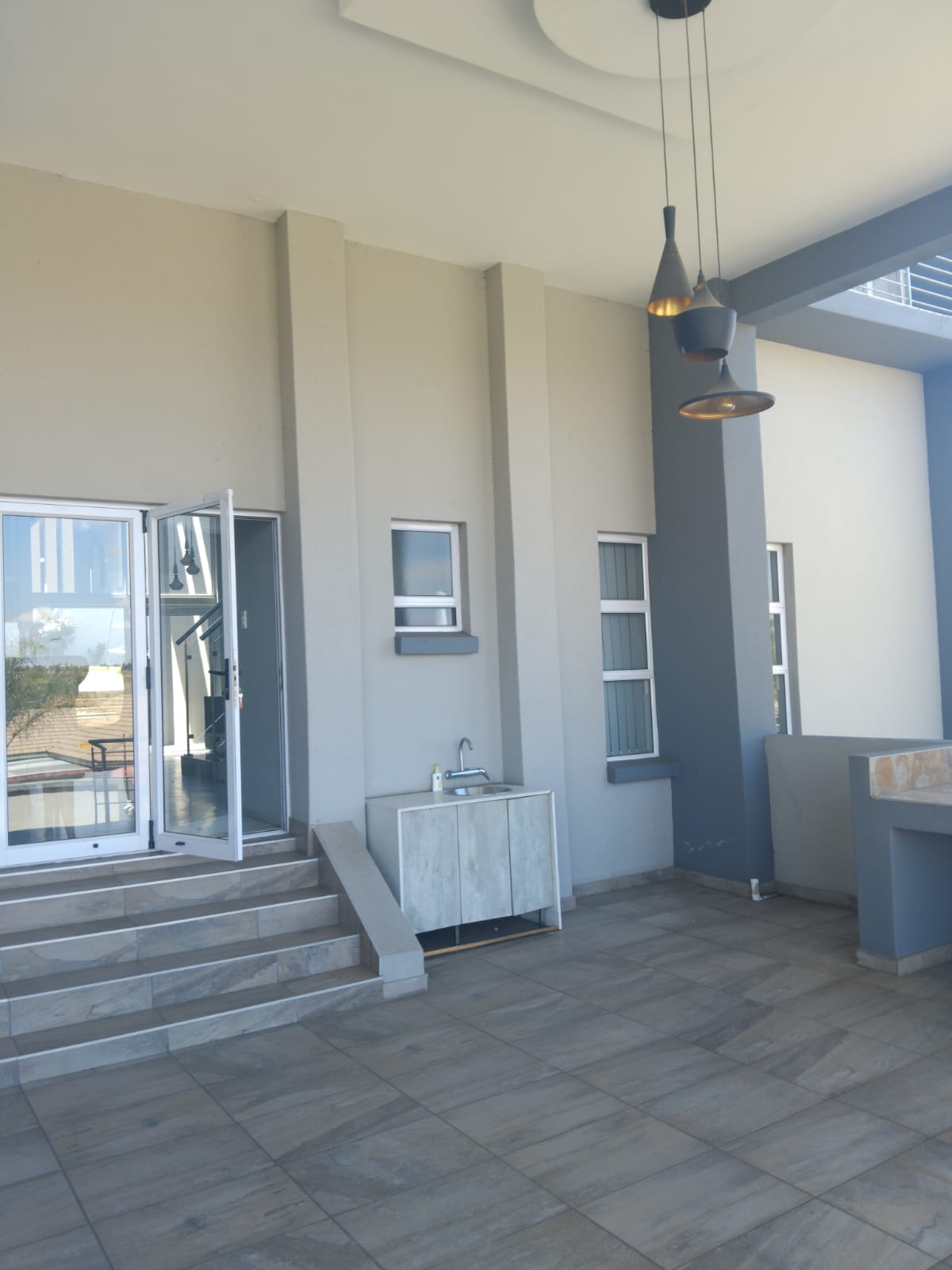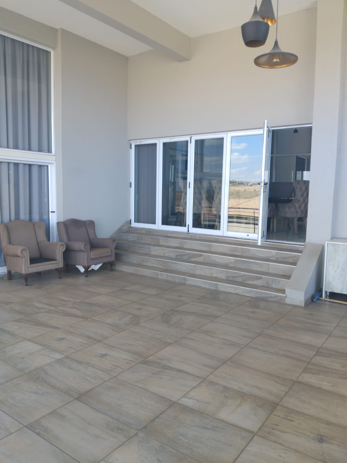 Welcome to this luxurious residence, featuring a spacious kitchen complete with a scullery. The kitchen seamlessly connects to a cozy TV room, which can be closed off with sliding doors for added privacy. Adjacent to the kitchen is a dining area that comfortably accommodates an eight-seater table.