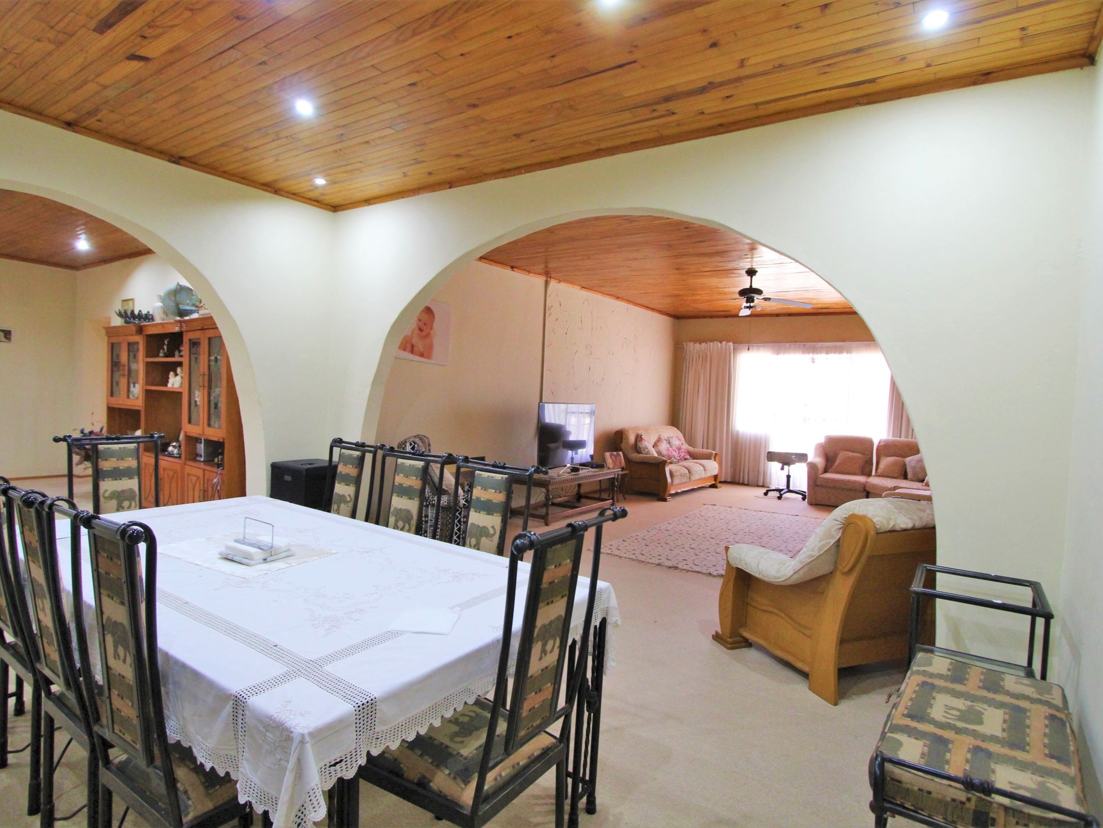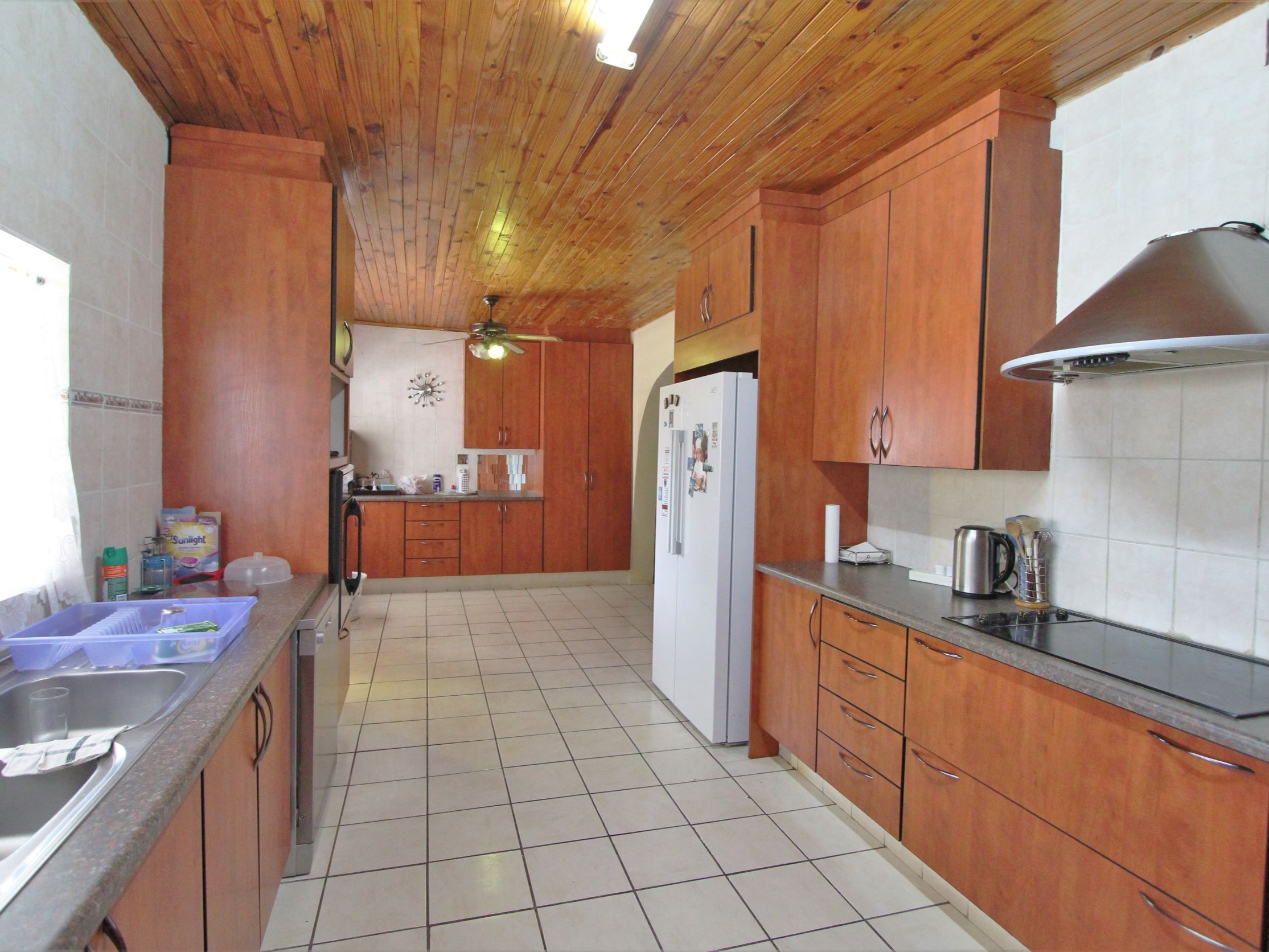 The main house is spacious with 5 bedrooms, 3 bathrooms, of which 2 is en-suite. There is also an entrance hall, kitchen, dining room and lounge. Next to the house you will find a lapa and one bedroom flat. You will also find a 2 bedroom flat on the premises, as well as 2 over night rooms for renting.