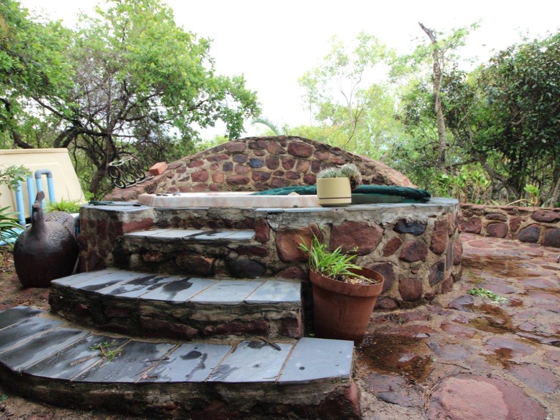 Beweeg na die eenddam met voerplekke vir wild, 1 slaapkamer rondawel met 'n ongelooflike uitsig kan bo-op die berg gevind word.
