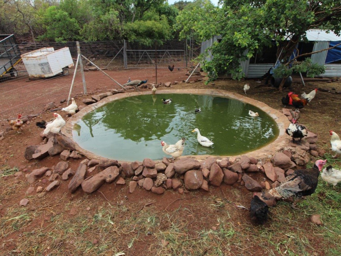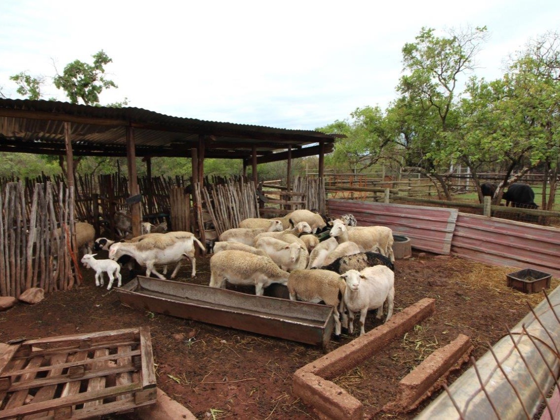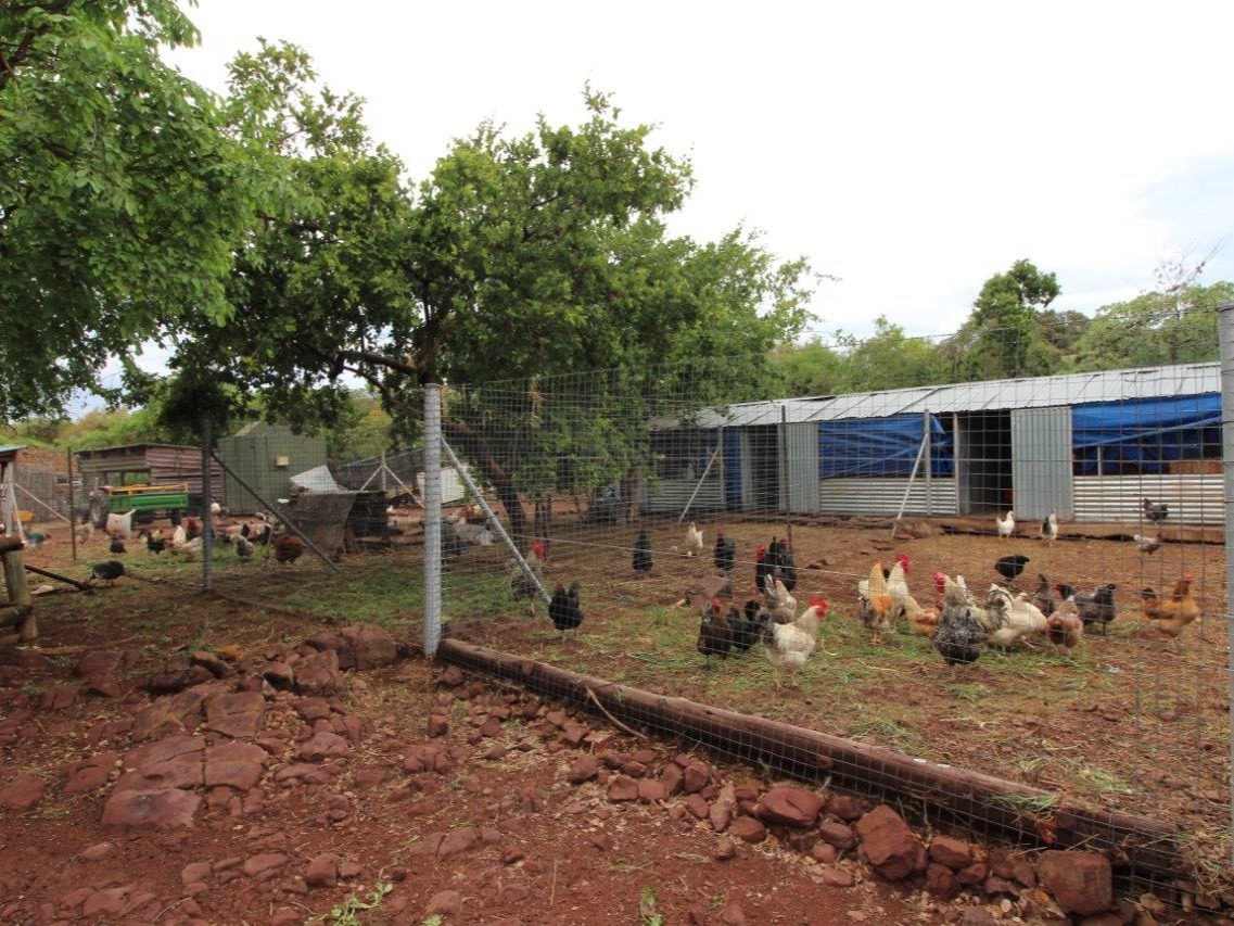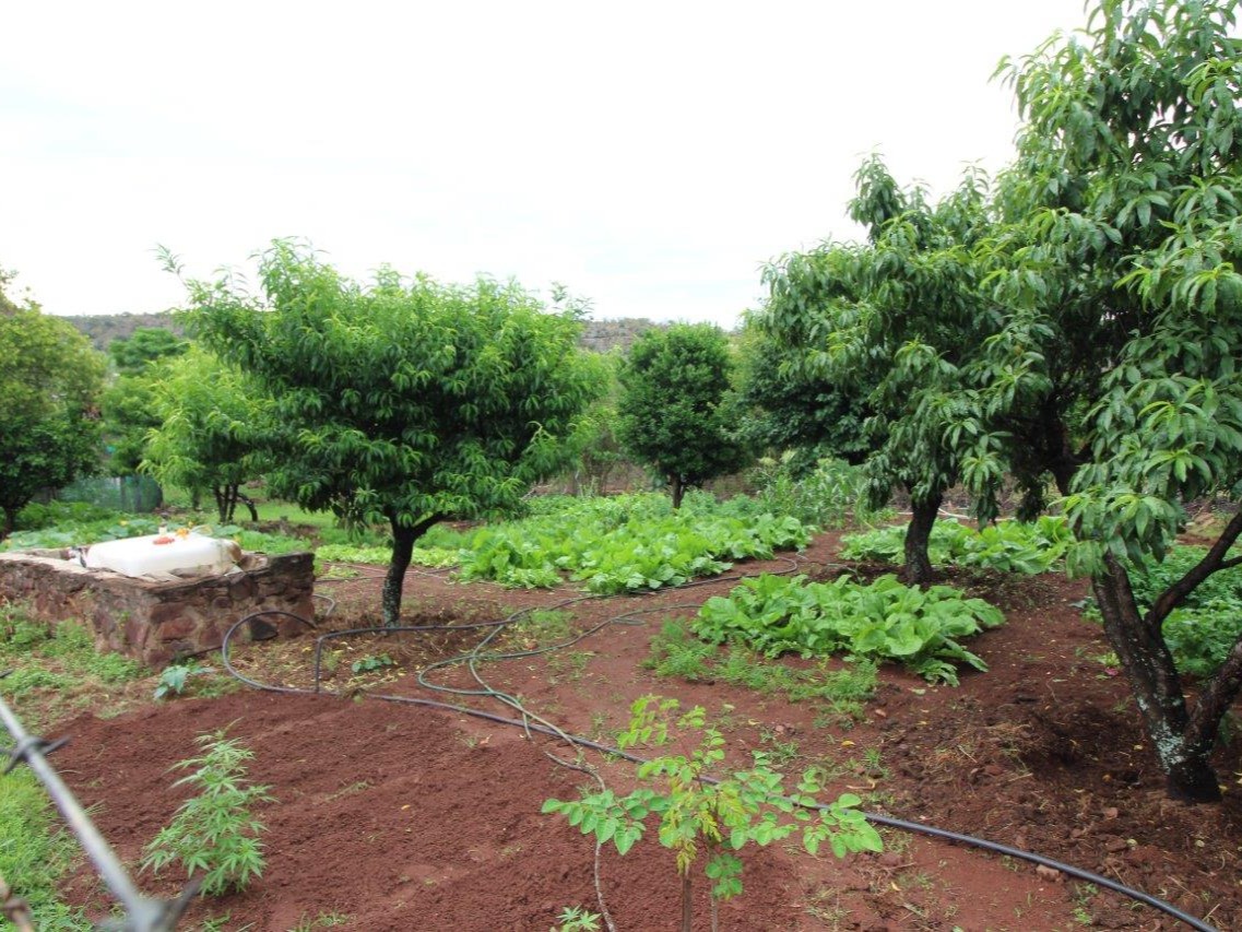 Ongeveer 1 ha bewerkbare grond, wat gebruik word vir groente, vrugtebome, eende, hoenders, bokke en beeste.