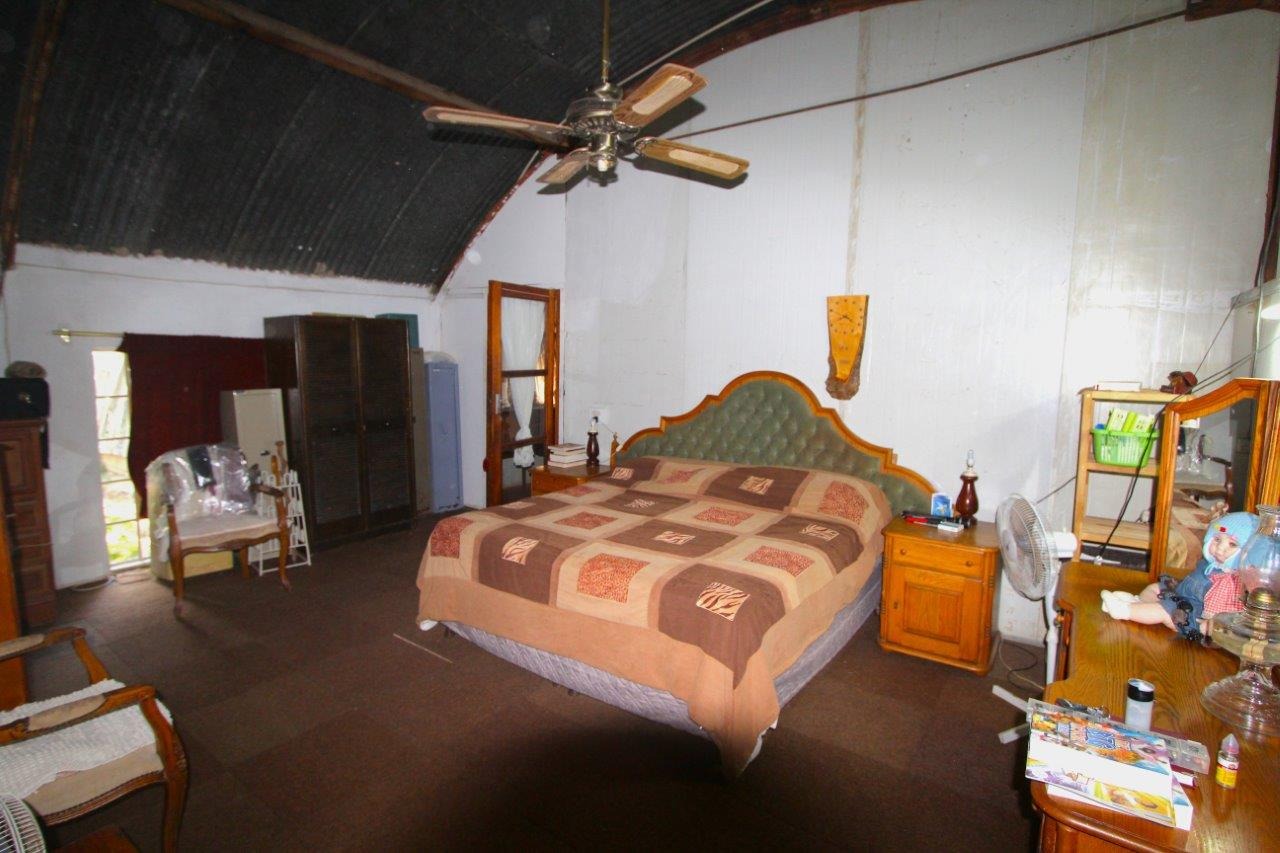 Hierdie plaas bestaan uit 2 titelaktes, elk ongeveer 12Ha groot, reg langs mekaar. Eiendom word voetstoots verkoop. Die plaashuis bestaan uit 'n sinkdak met 2 slaapkamers en 2 badkamers, met 'n jacuzzi. Oopplan leefarea met 'n eetarea.