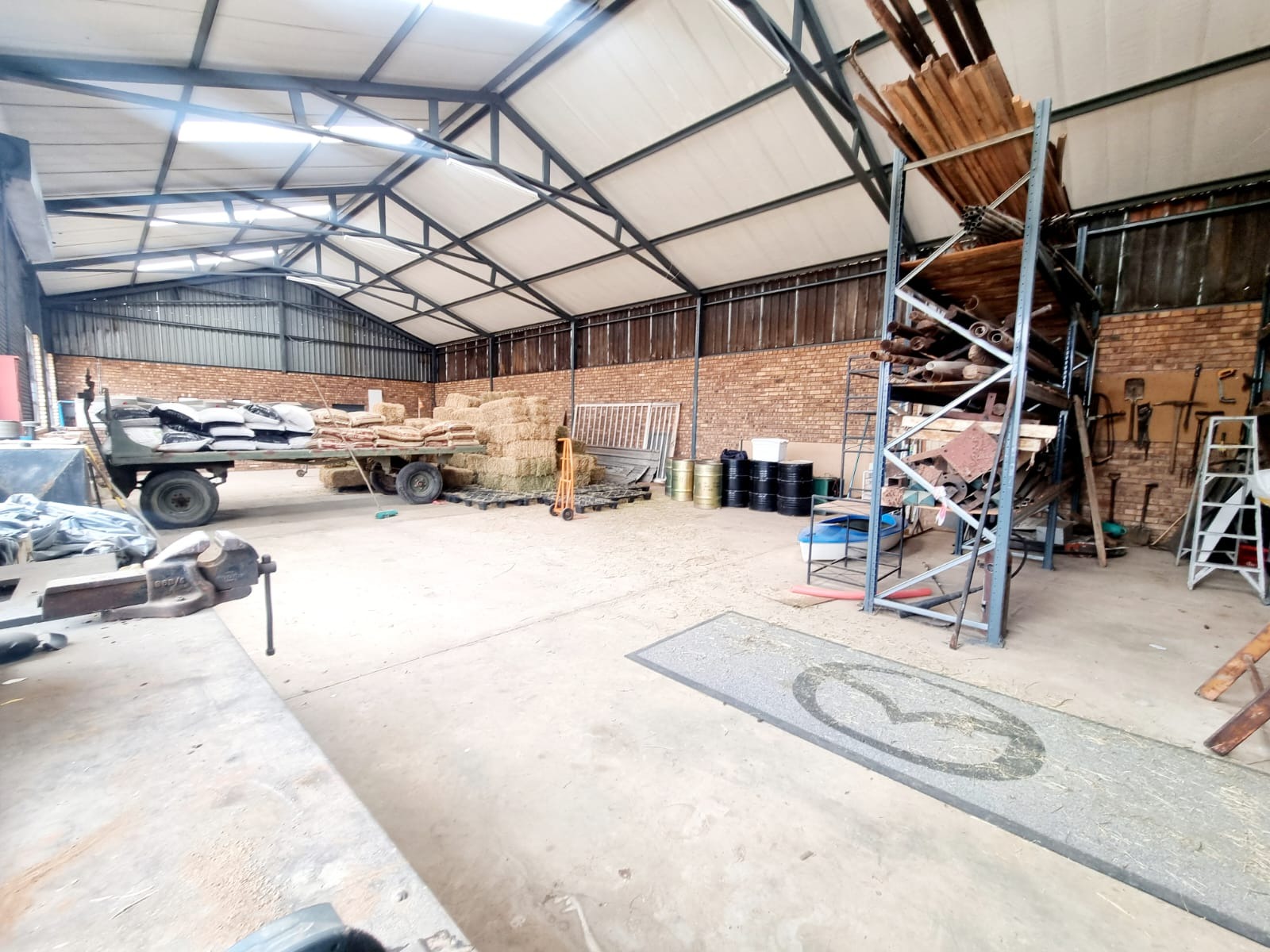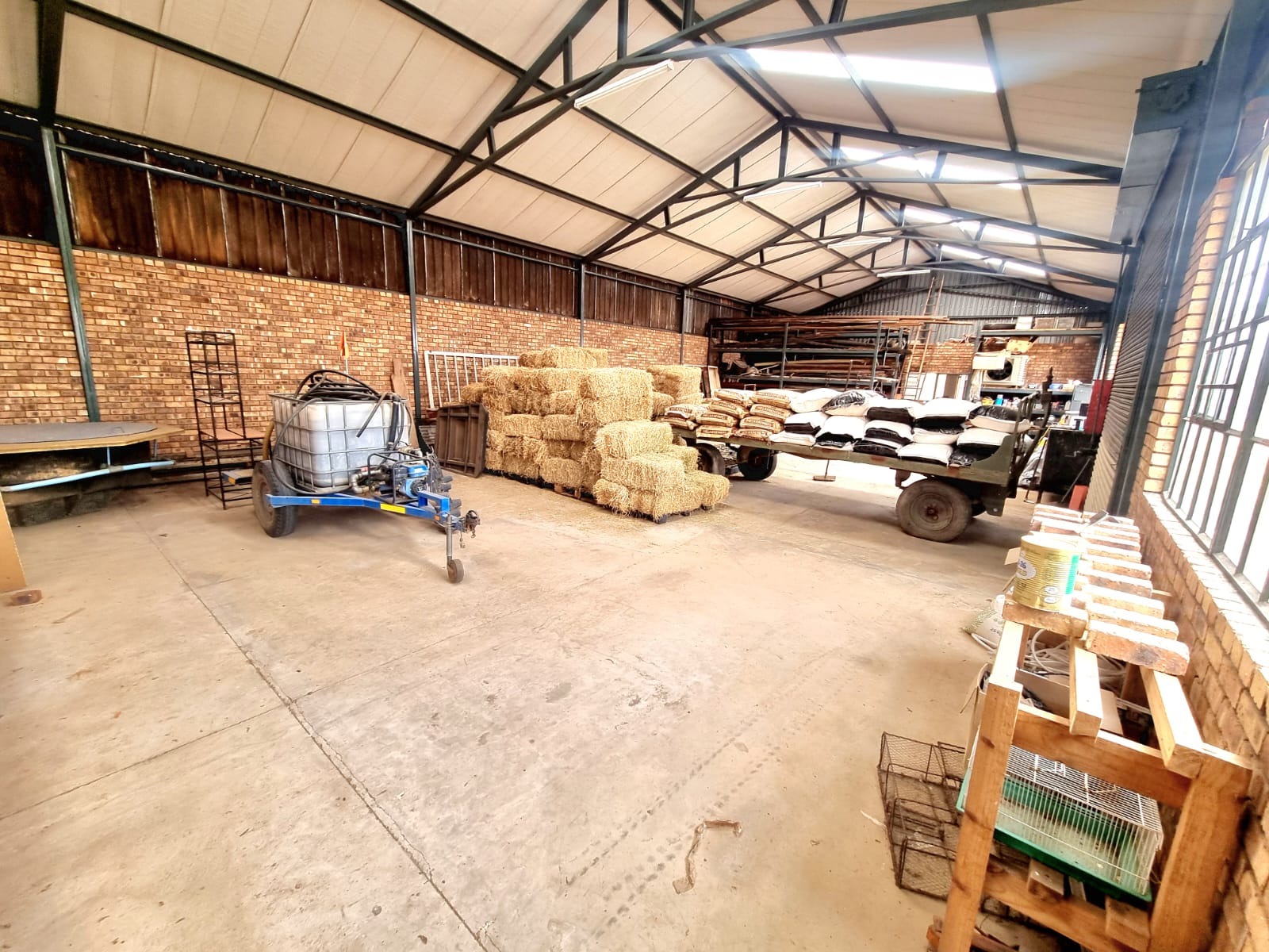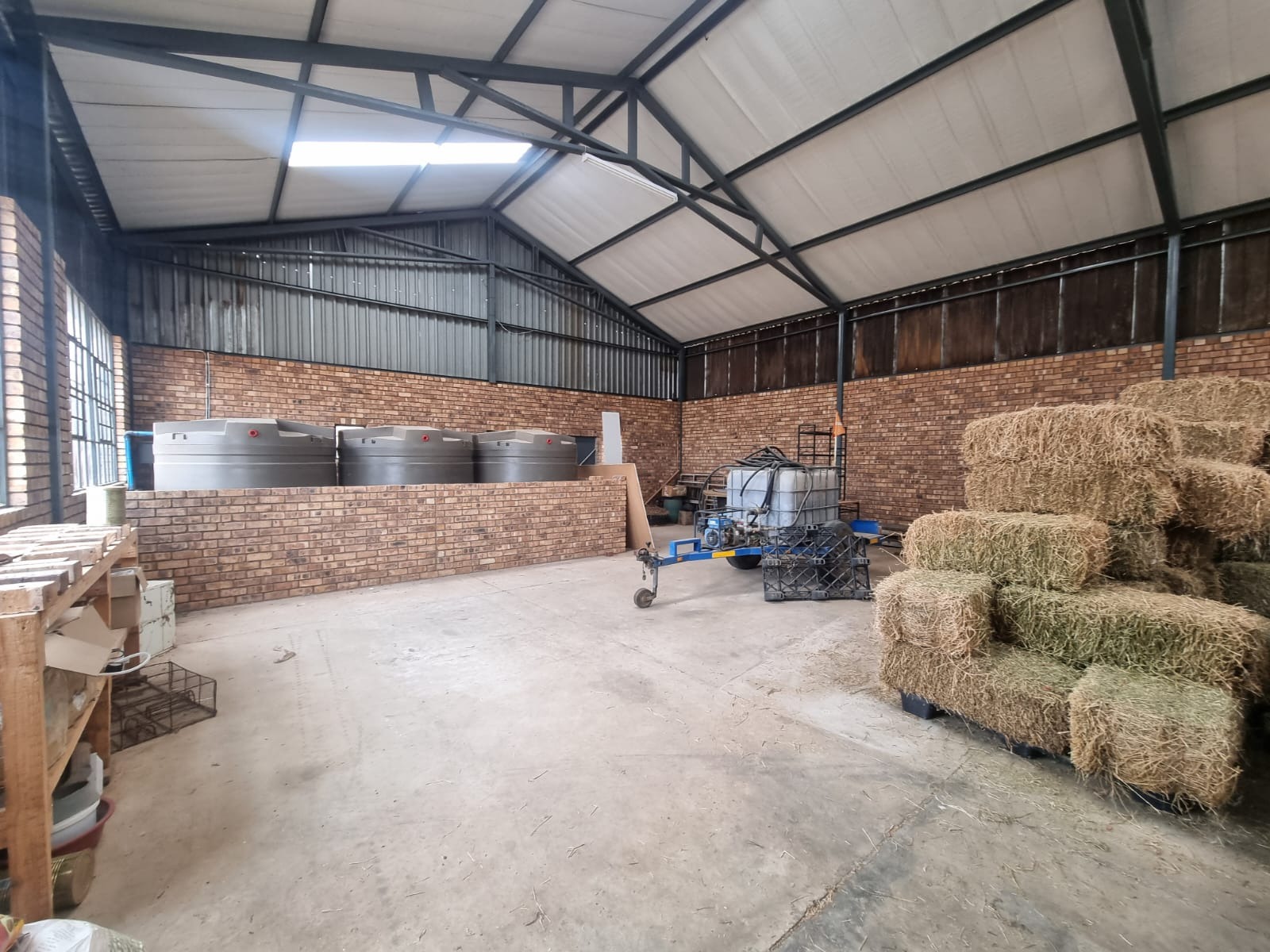 Additional features include a huge warehouse with staff housing (two rooms with a kitchen and bathroom), a slaughter area, and ample storage for a working farm. The warehouse comes with many extras, such as water tanks and shelving—check the pictures for more details. There's even a free-range chicken coop on the farm, offering potential for business ventures.