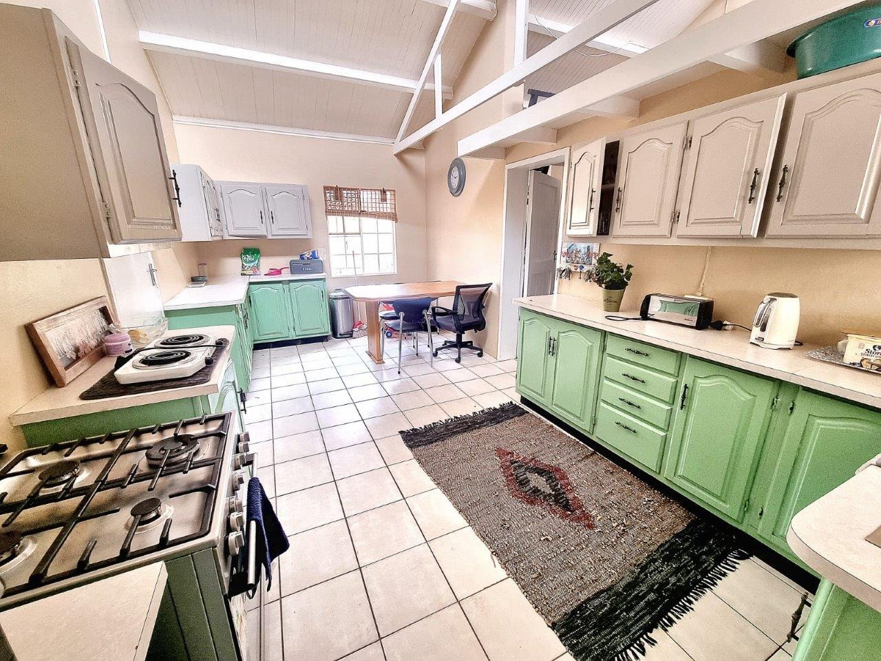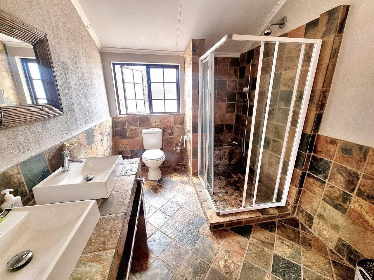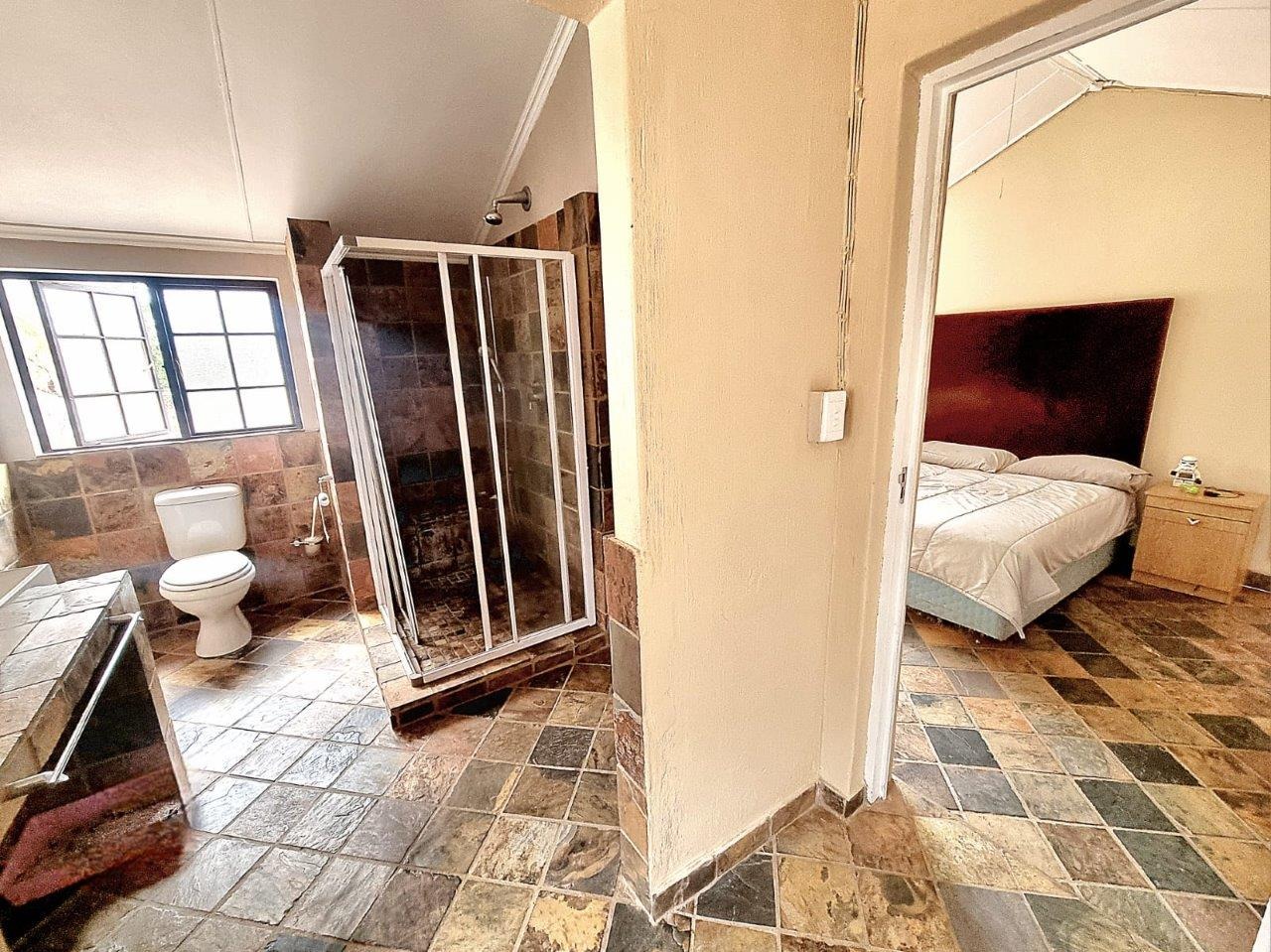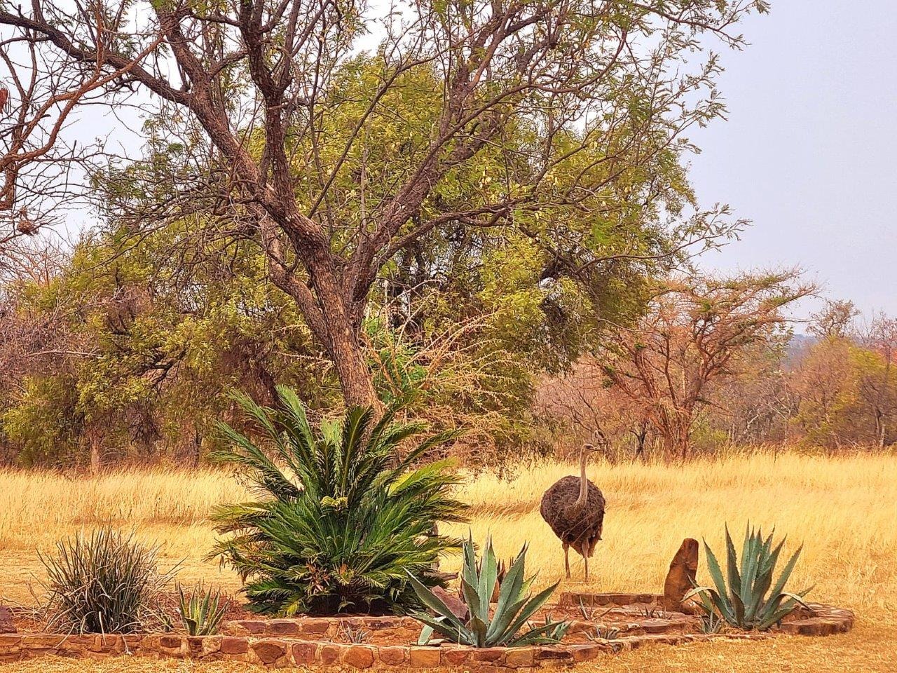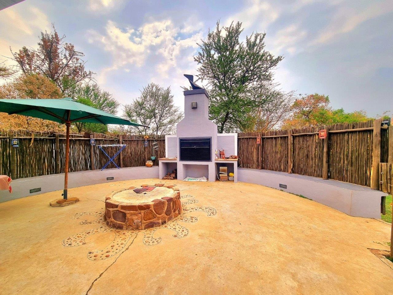 As you enter through the impressive entrance, lined with majestic palm trees, you’re immediately immersed in nature’s beauty. The solar-powered, three-bedroom, two-bathroom farmhouse boasts spacious living areas designed for comfort and relaxation. Outside, a stunning boma invites you to entertain under the stars, and a swimming pool adds a refreshing touch to the Bushveld setting, where you might even spot an ostrich peeking through.