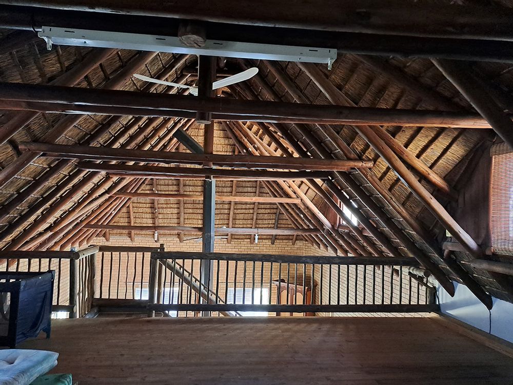 Spacious loft overlooking the living area with fireplace, which leads out to the Bar/Lapa which overlooks the pool and natural pond (not persistent)