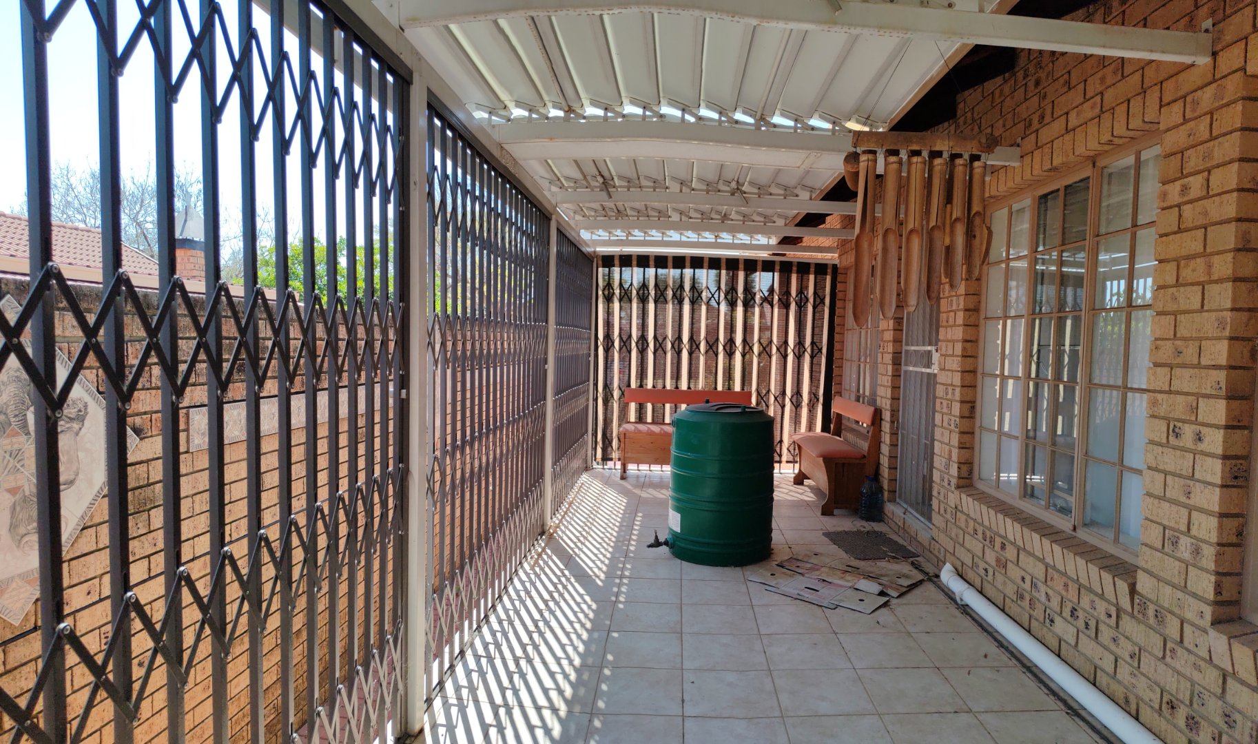 Opens onto a spacious stoep, fully enclosed with Trellidoors