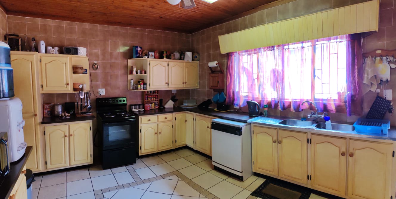 The sturdily constructed residence, boasts a tile roof and facebrick walls, all meticulously maintained. Inside, superior finishes includes brick and plastered walls with laminated floors.