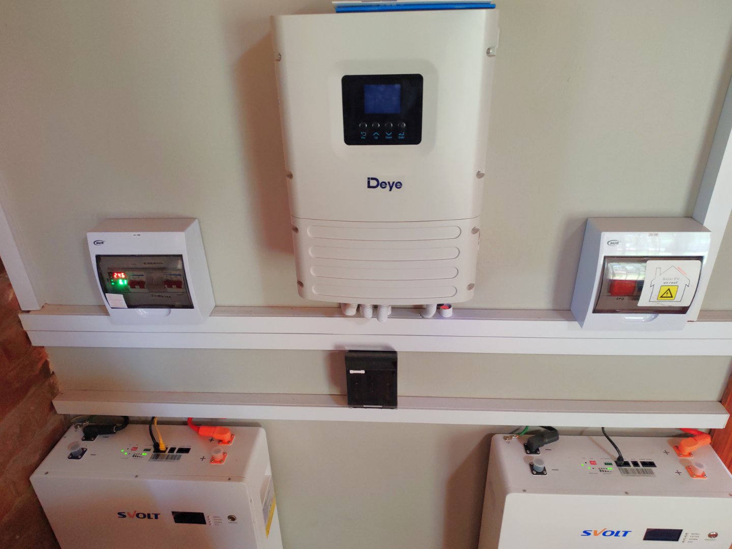 6Kva Deye inverter with 8 solar panels and 10Kva batteries.