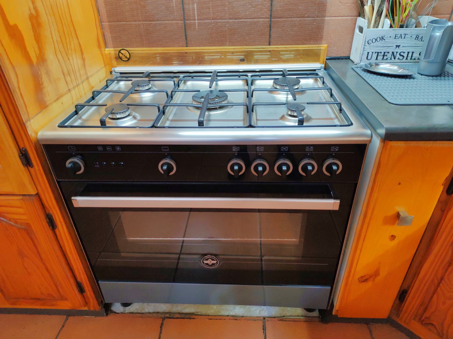 The kitchen is fitted with built-in cupboards, a gas stove and separate laundry room.