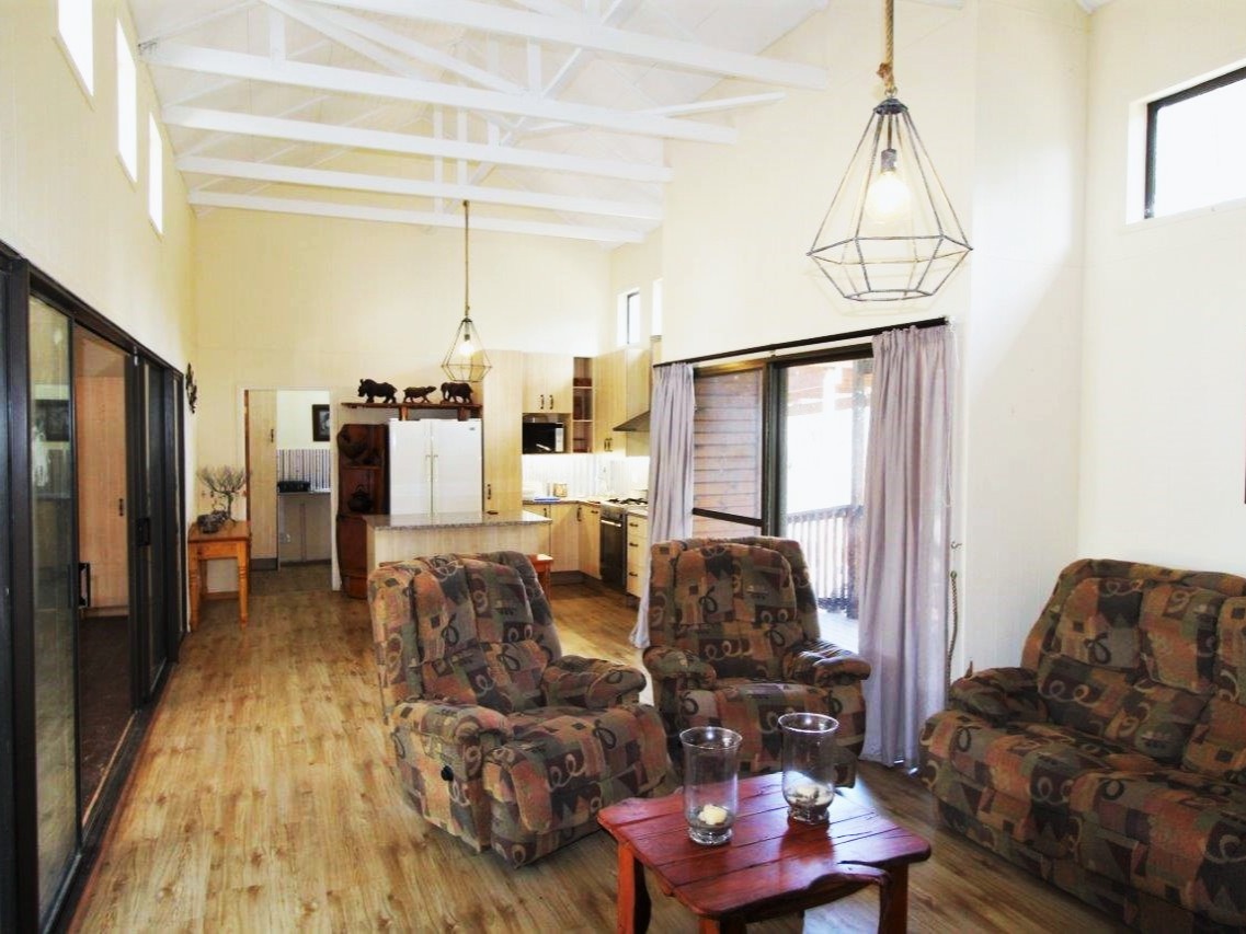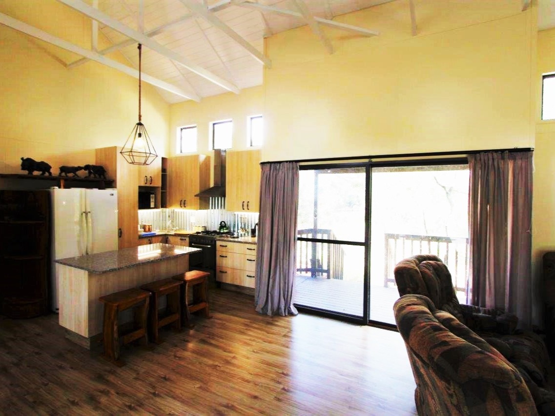 This beautiful, appointed home situated on a 1,1 Ha stand offers you 2 bedrooms (both ensuite), with lots of built-in cupboards and both opening onto the deck with large sliding doors inviting nature into your space. The lovely open plan living and kitchen area, lead onto a large recreational area that flows onto the deck bringing nature closer. In the lounge there’s a cozy little fireplace for those cold winter nights giving it not only heat, but also some charm and atmosphere. This unit is sold fully furnished with good appliances and furniture, making it very convenient for the new buyer.