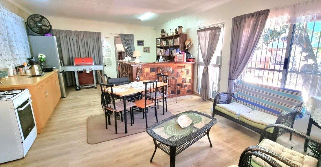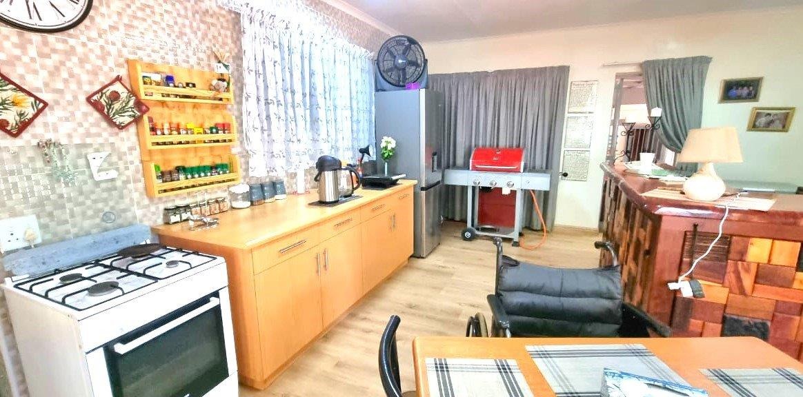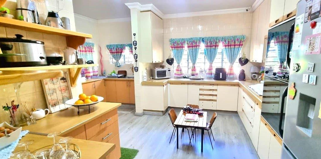 This 4-bedroom home is located in a highly sought-after area, ideal for a family looking to be completely self-sufficient. It feels like a small farm with various fruit trees, a vegetable garden, irrigation system, 3 water tanks with pressure pump, borehole and full solar system, all located on a massive stand!