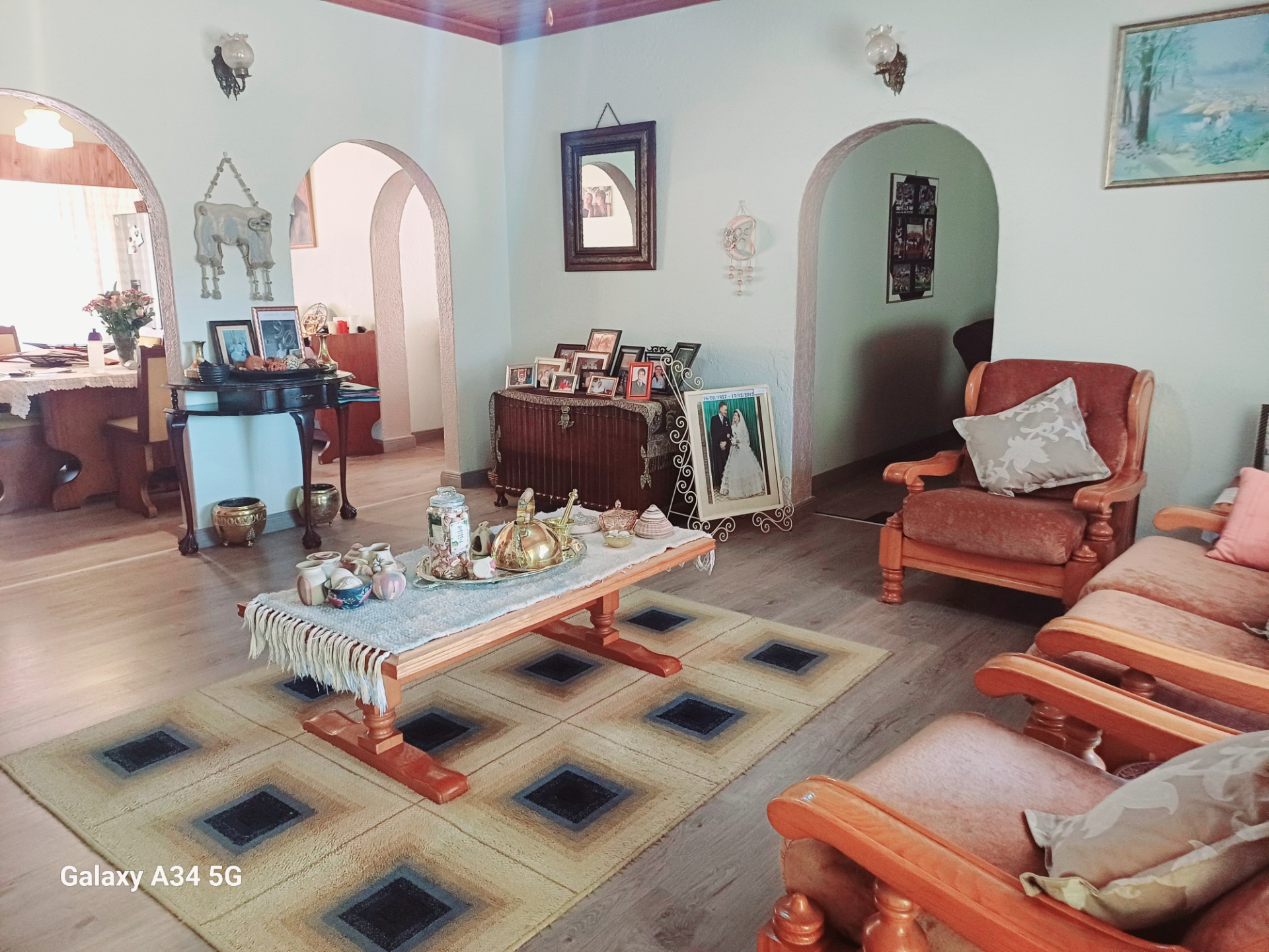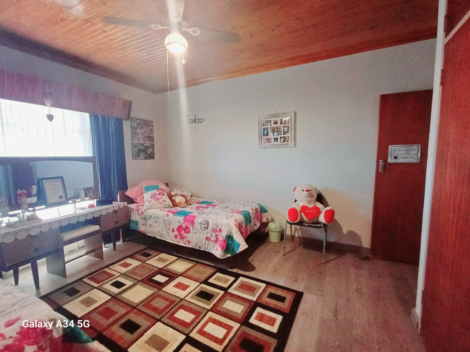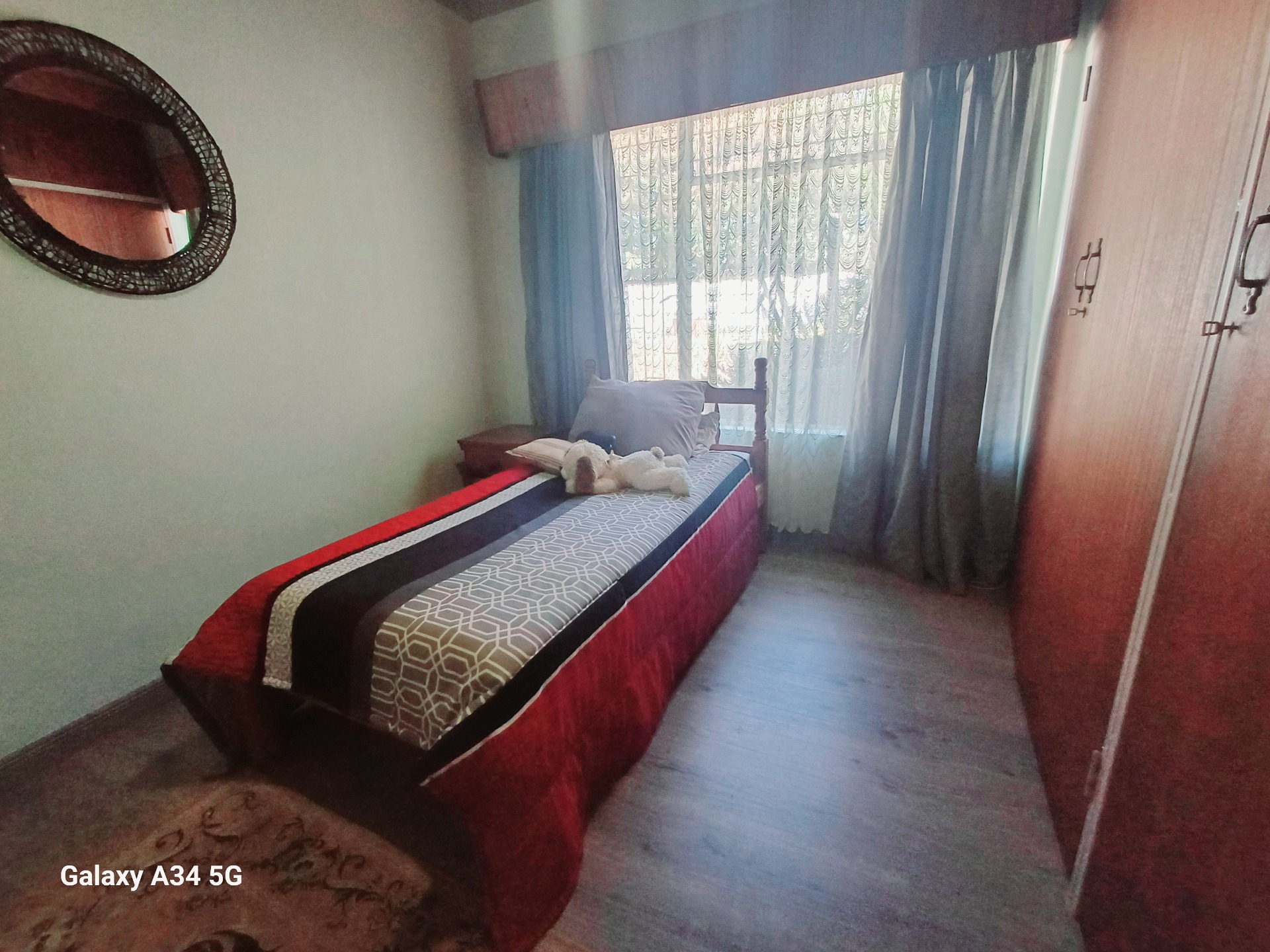 This well-built residence features a tile roof and face brick walls, all meticulously maintained. Inside, superior finishes include brick and plastered walls complemented by laminated floors.