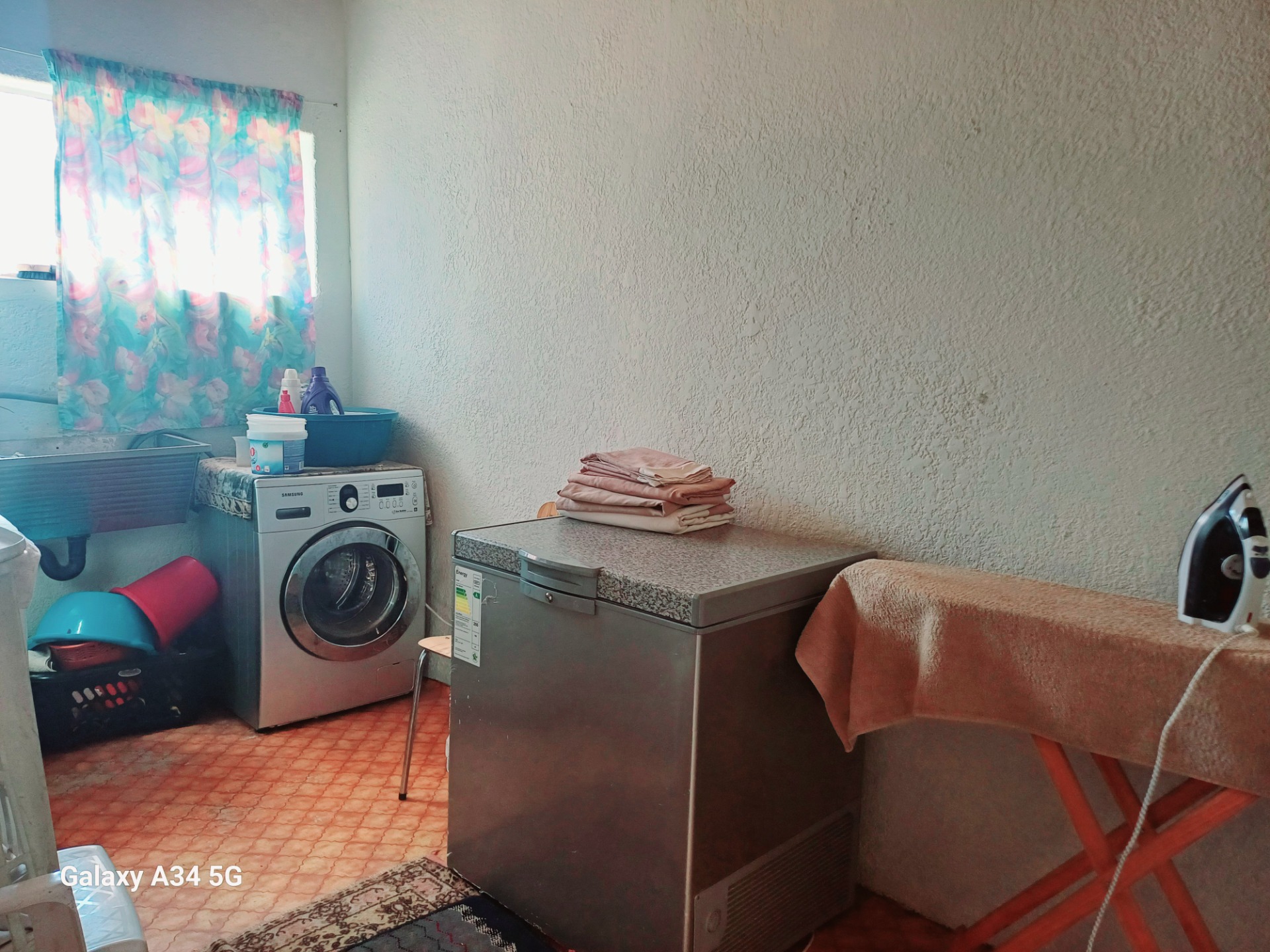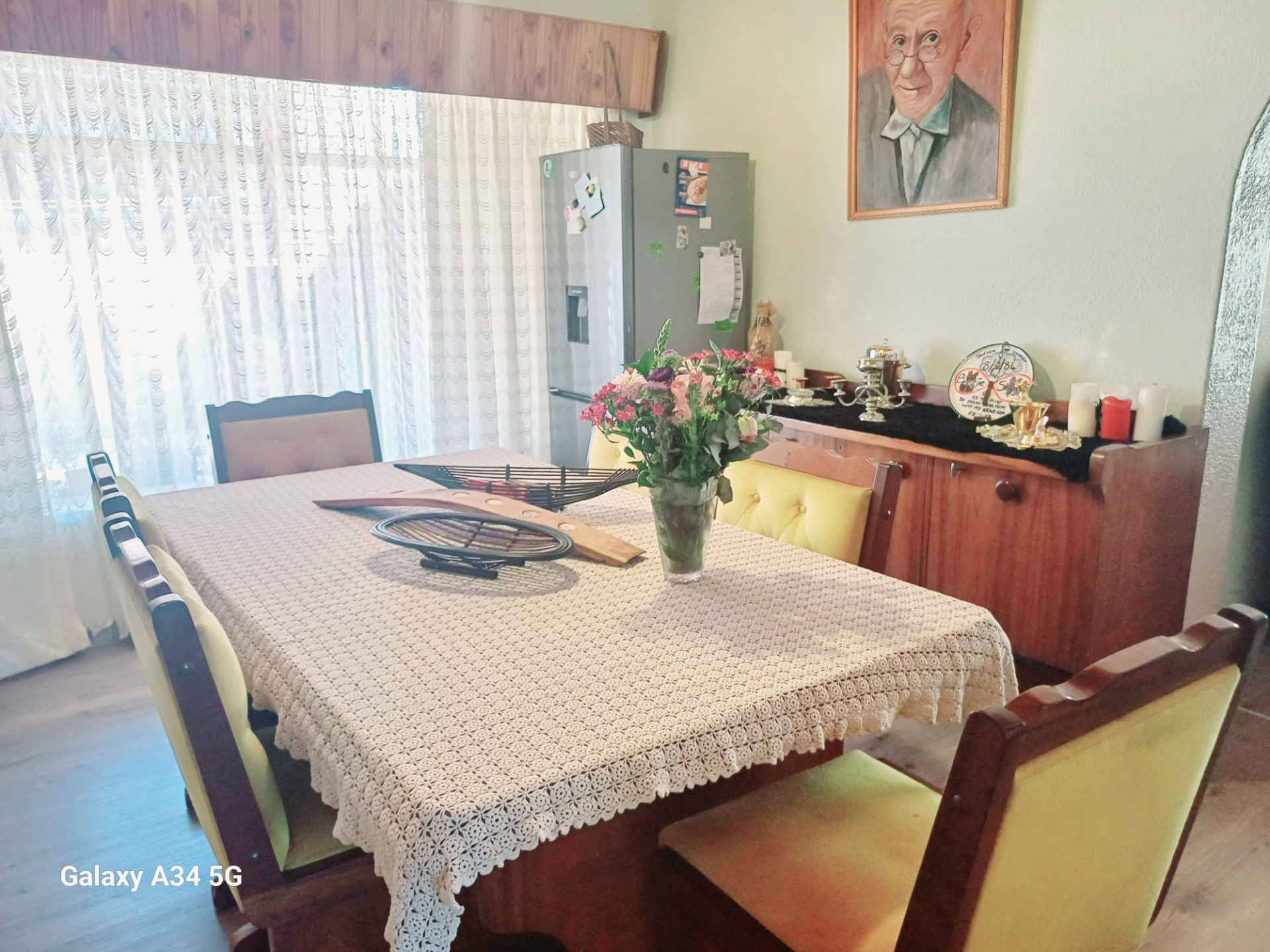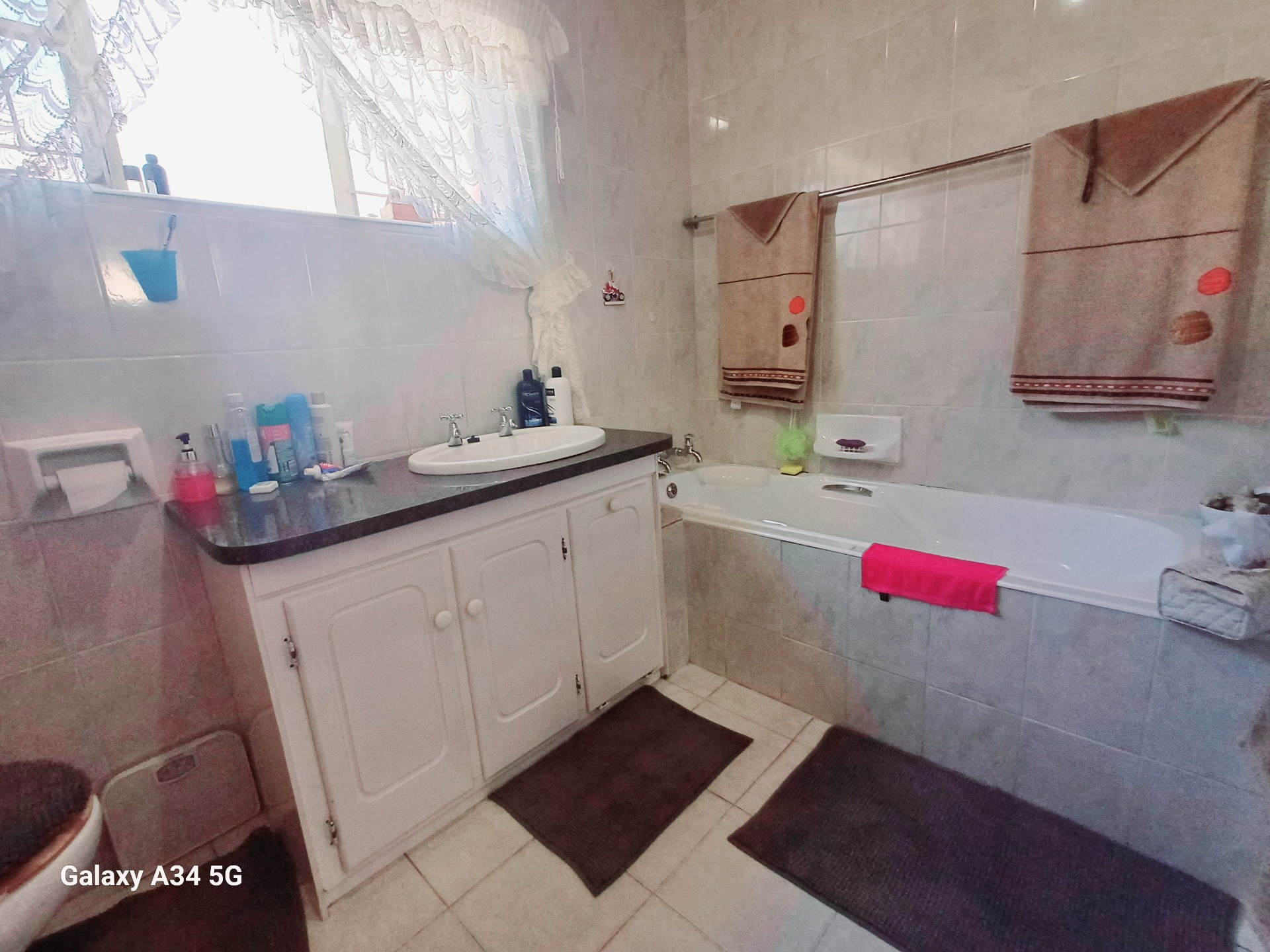 This well-built residence features a tile roof and face brick walls, all meticulously maintained. Inside, superior finishes include brick and plastered walls complemented by laminated floors.