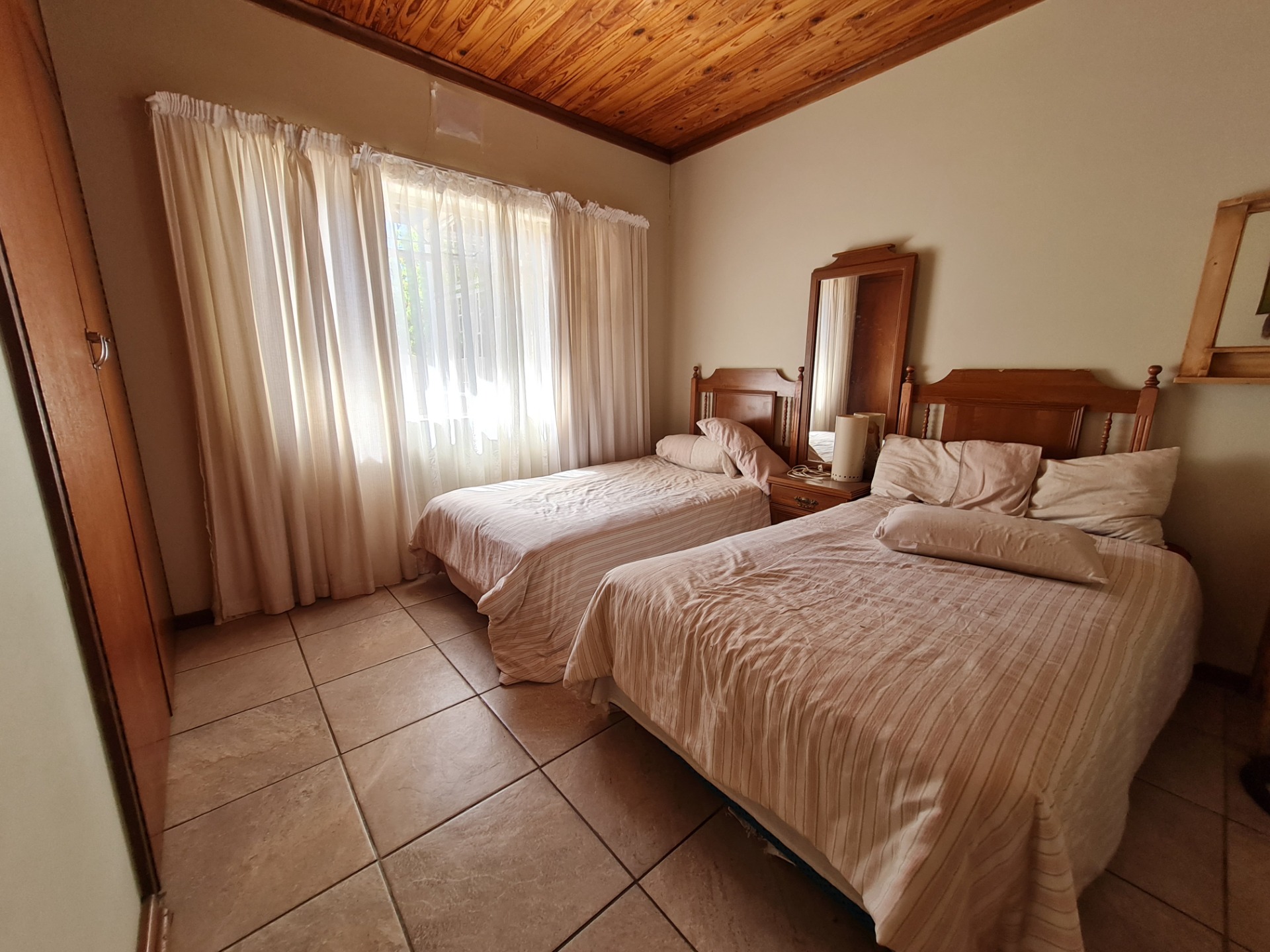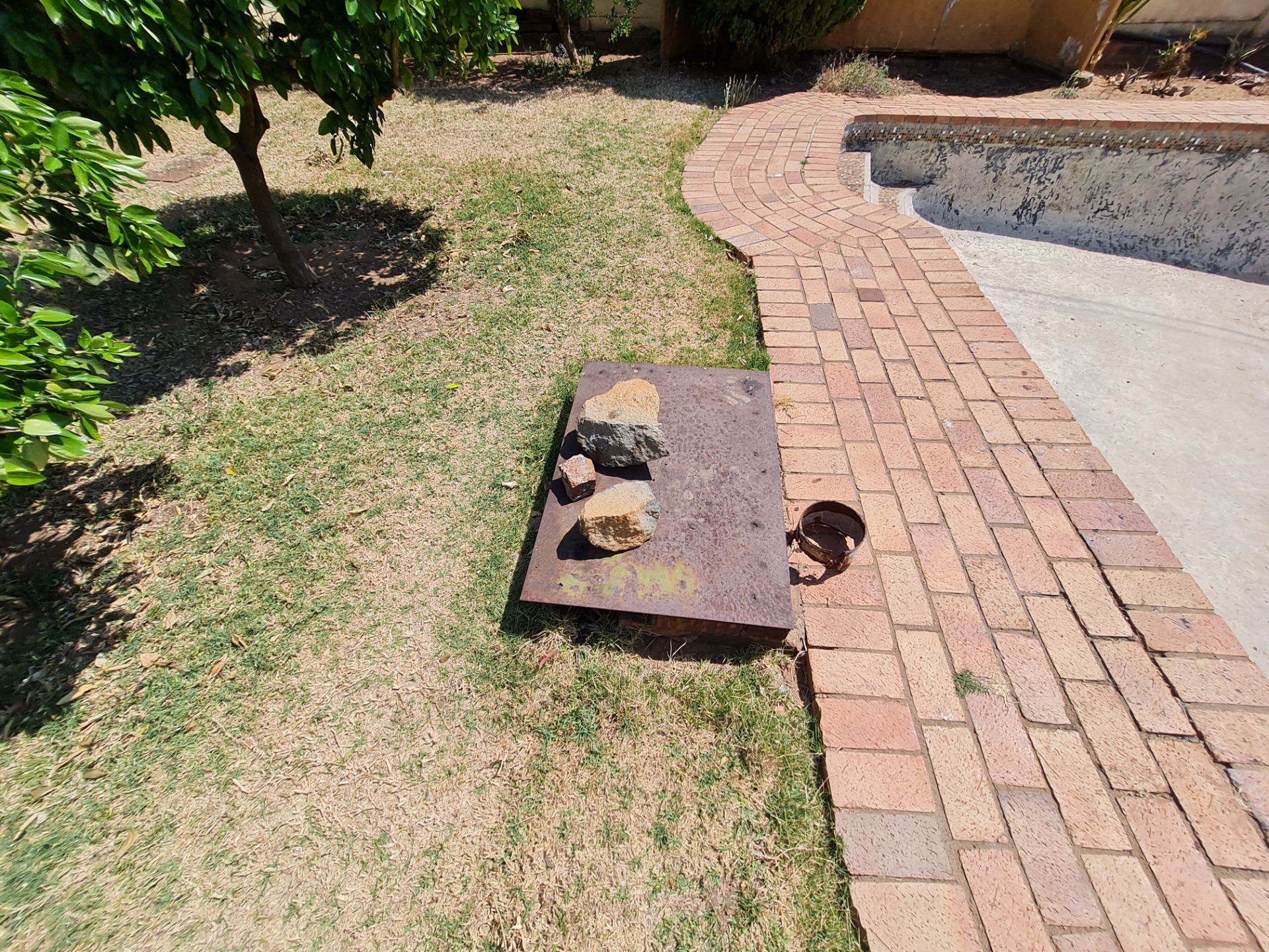 Additional features include a borehole, ensuring a reliable water supply for maintaining the garden and pool, with solar lights located only in the kitchen and main bedroom. The meticulously designed built-in cupboards throughout the home enhance organization and convenience.