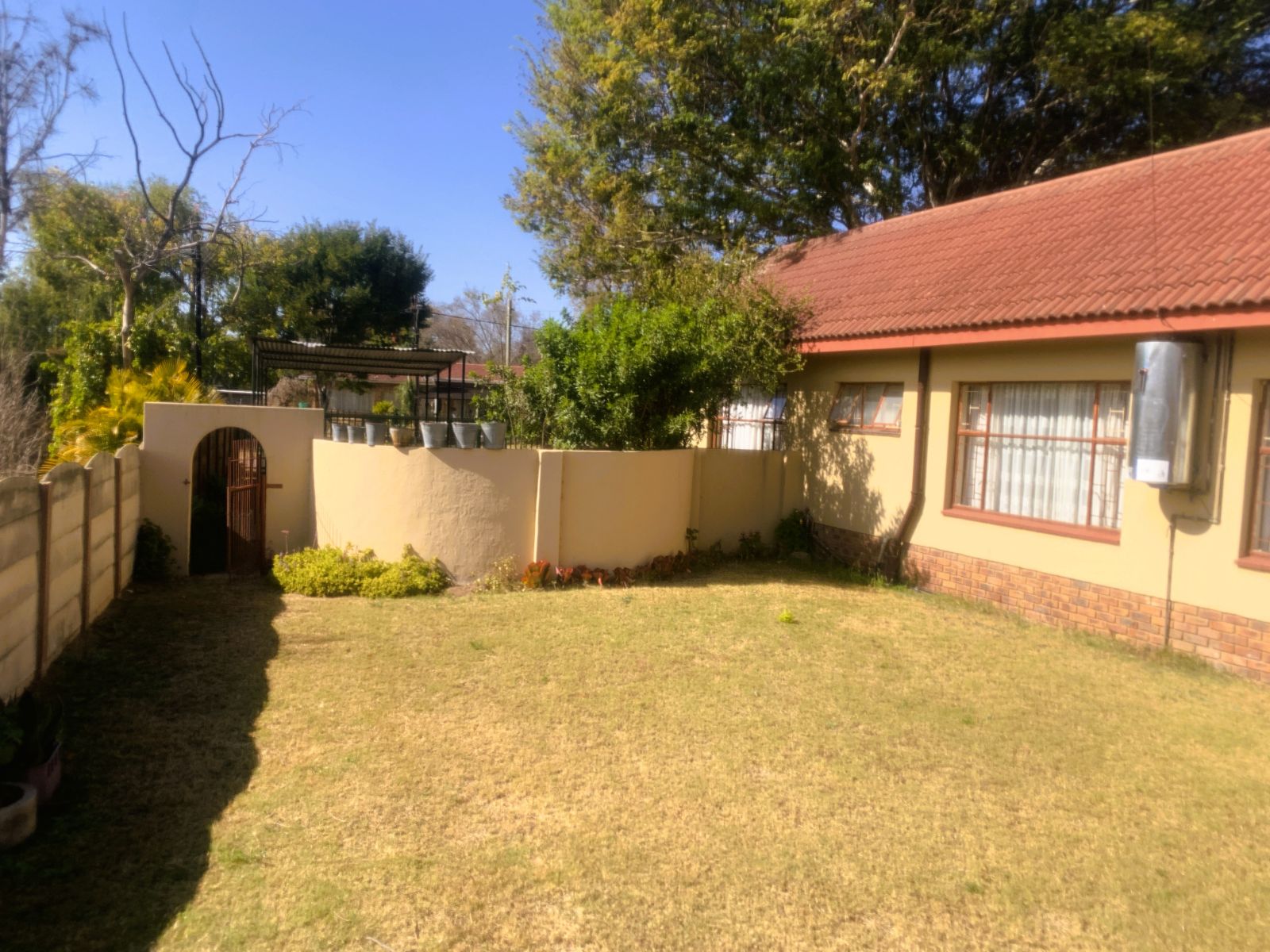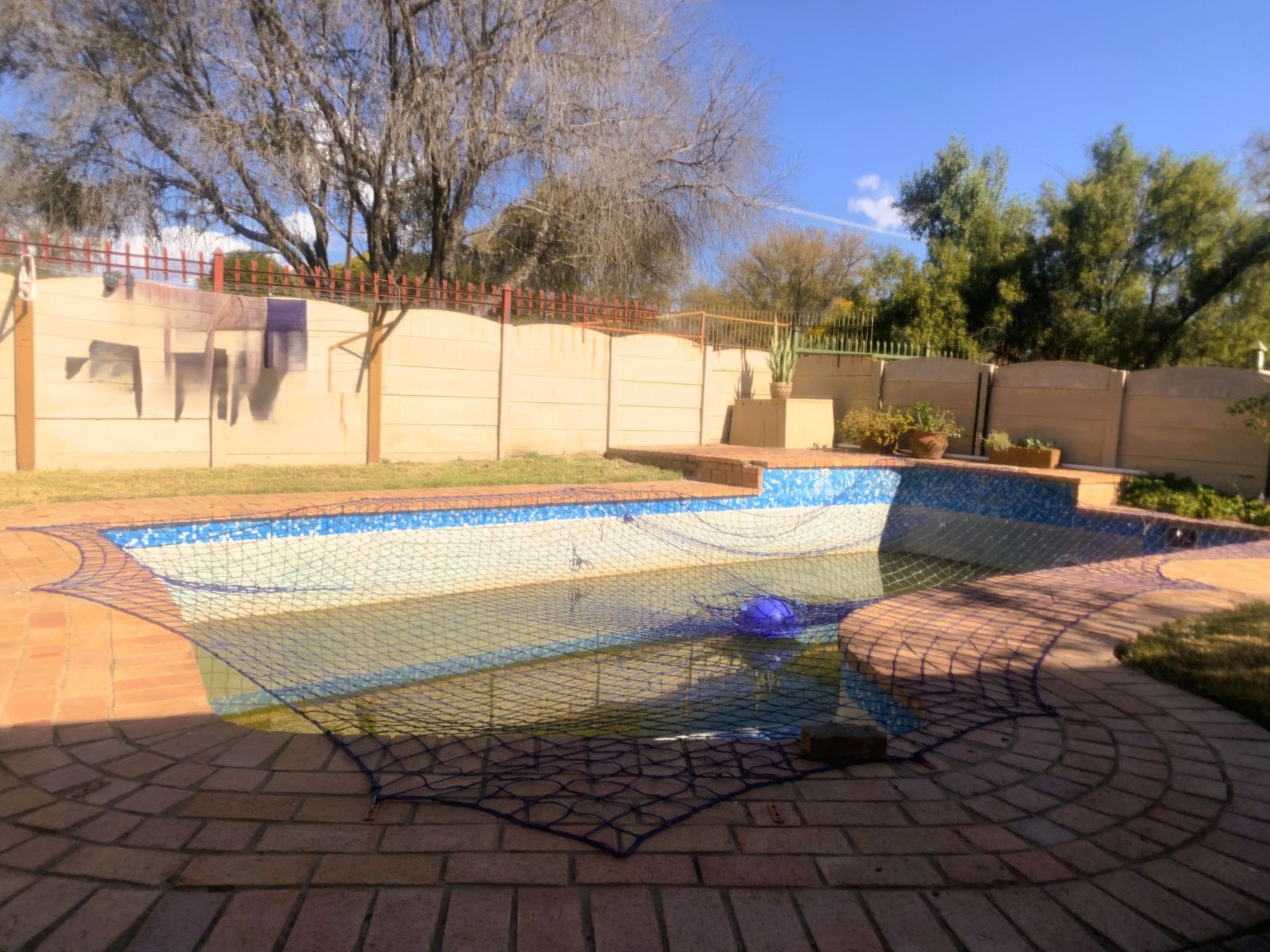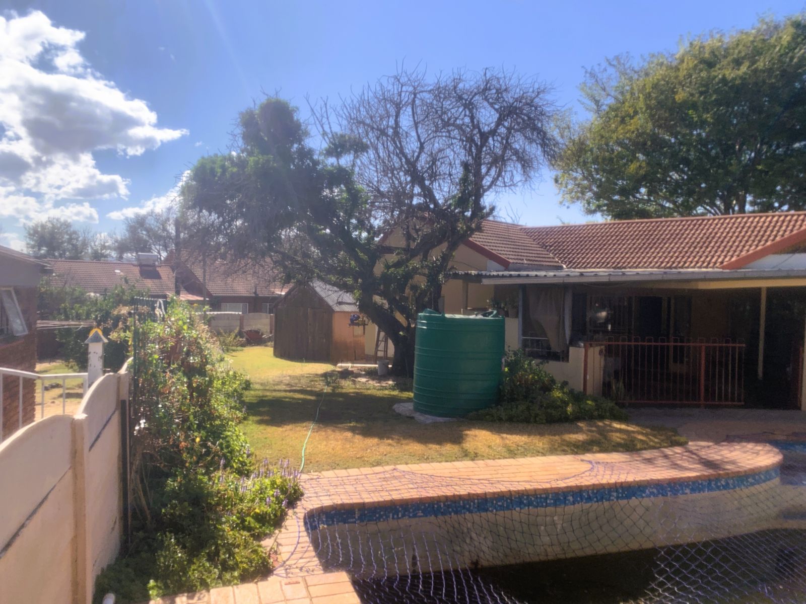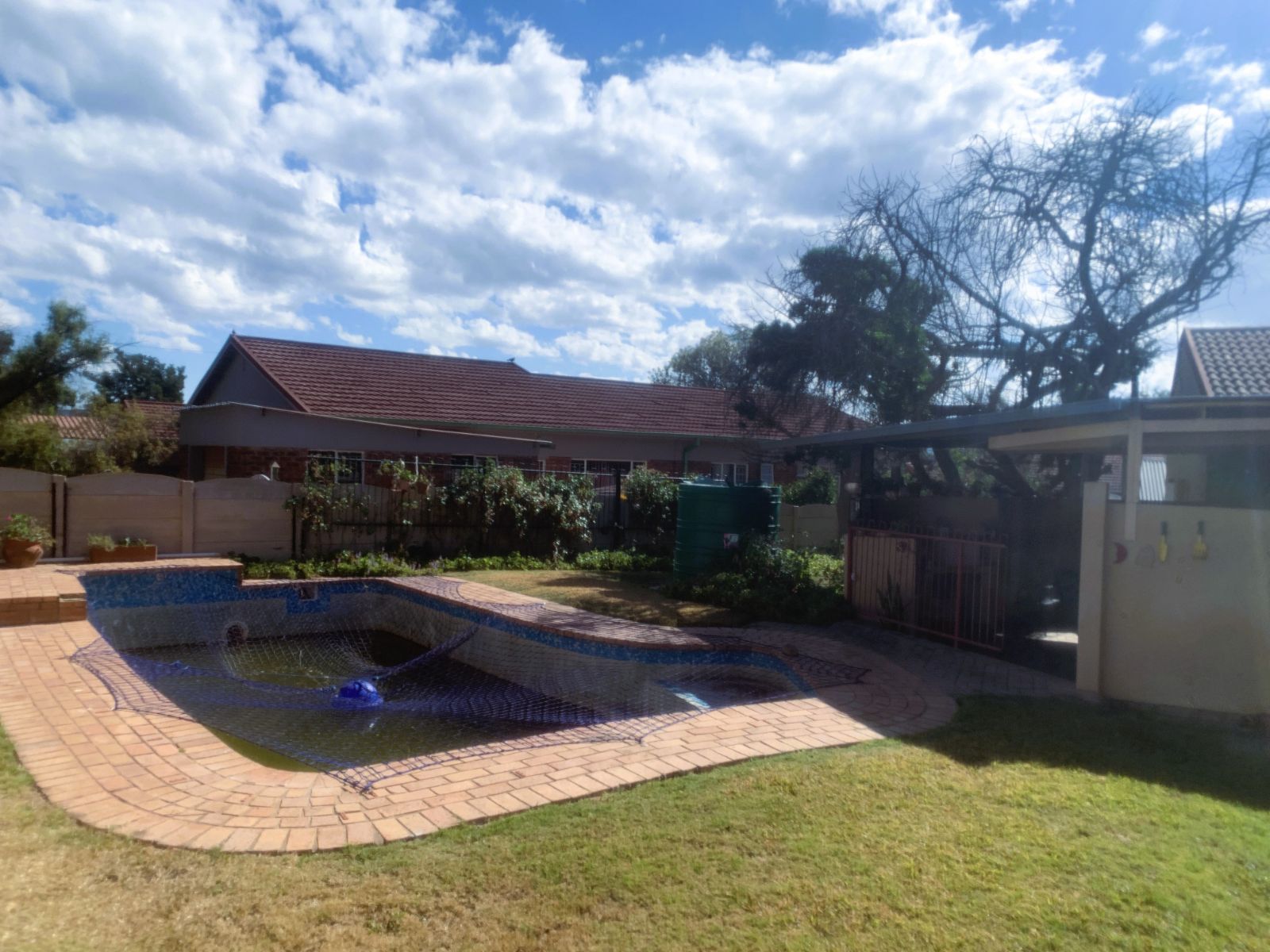 The TV lounge leads out to a lovely covered patio, seamlessly connected to the built-in braai area—perfect for entertaining. The swimming pool, though needing minor repairs, promises hours of family fun during our famously hot Bushveld summers.
