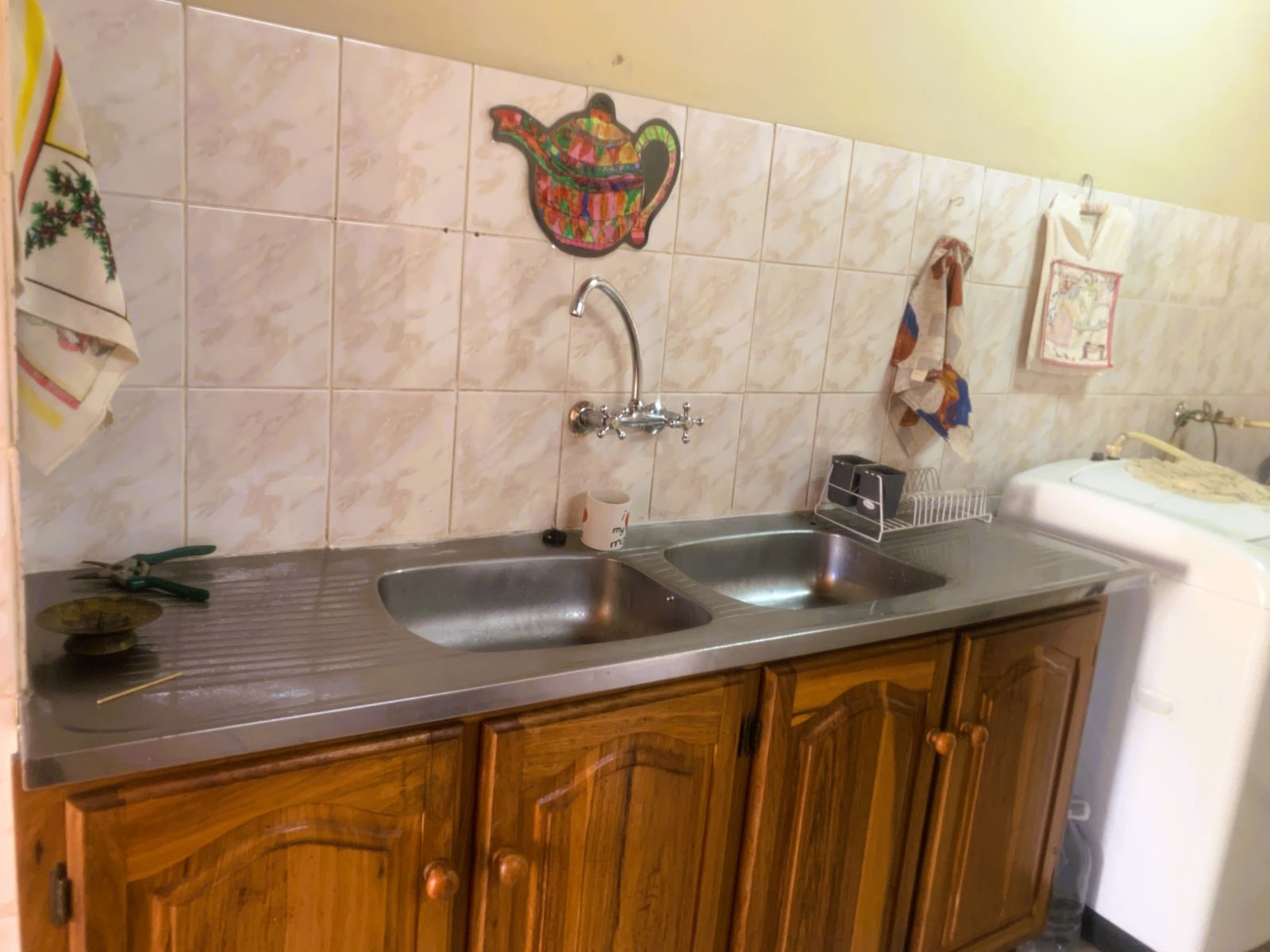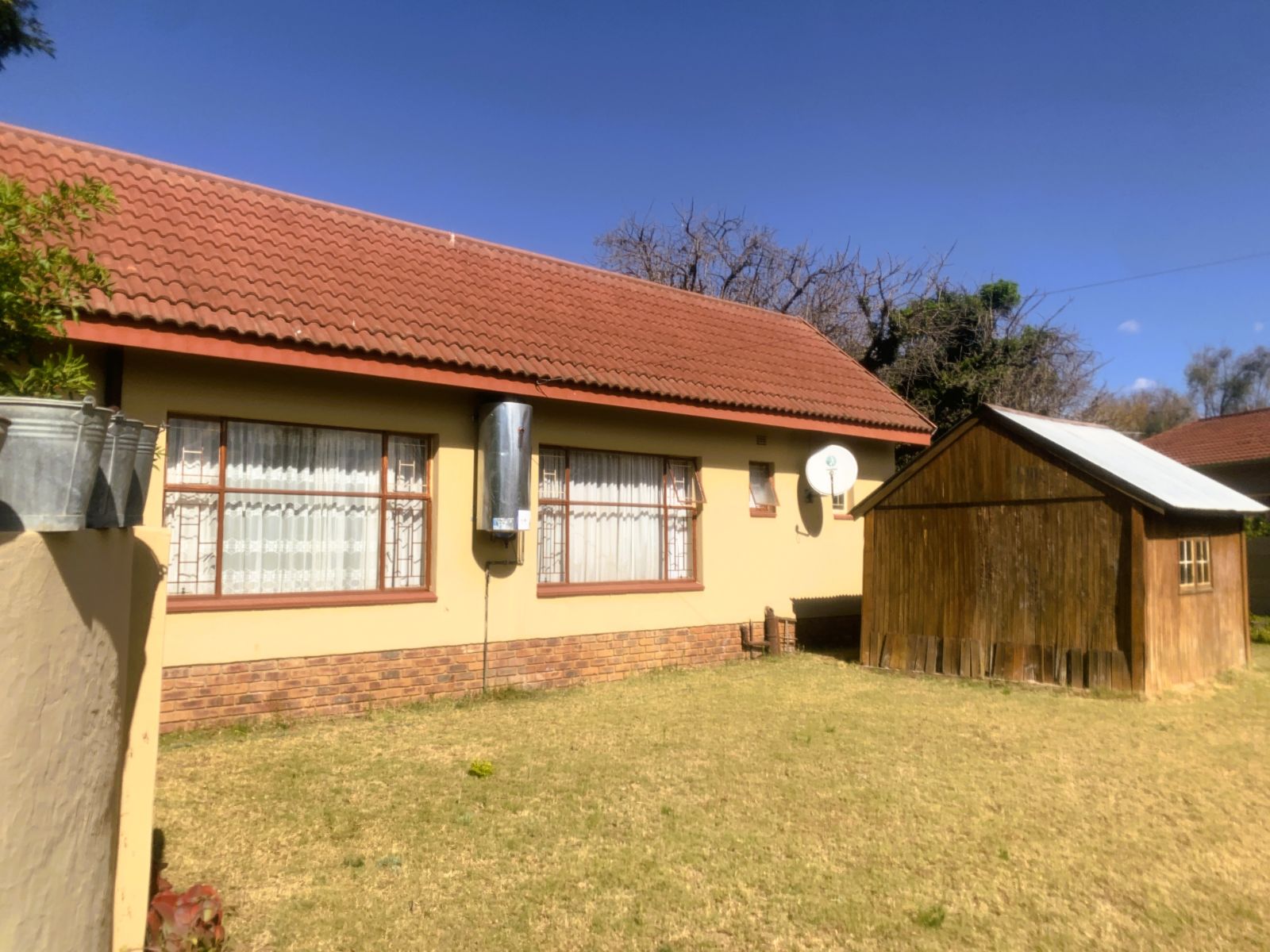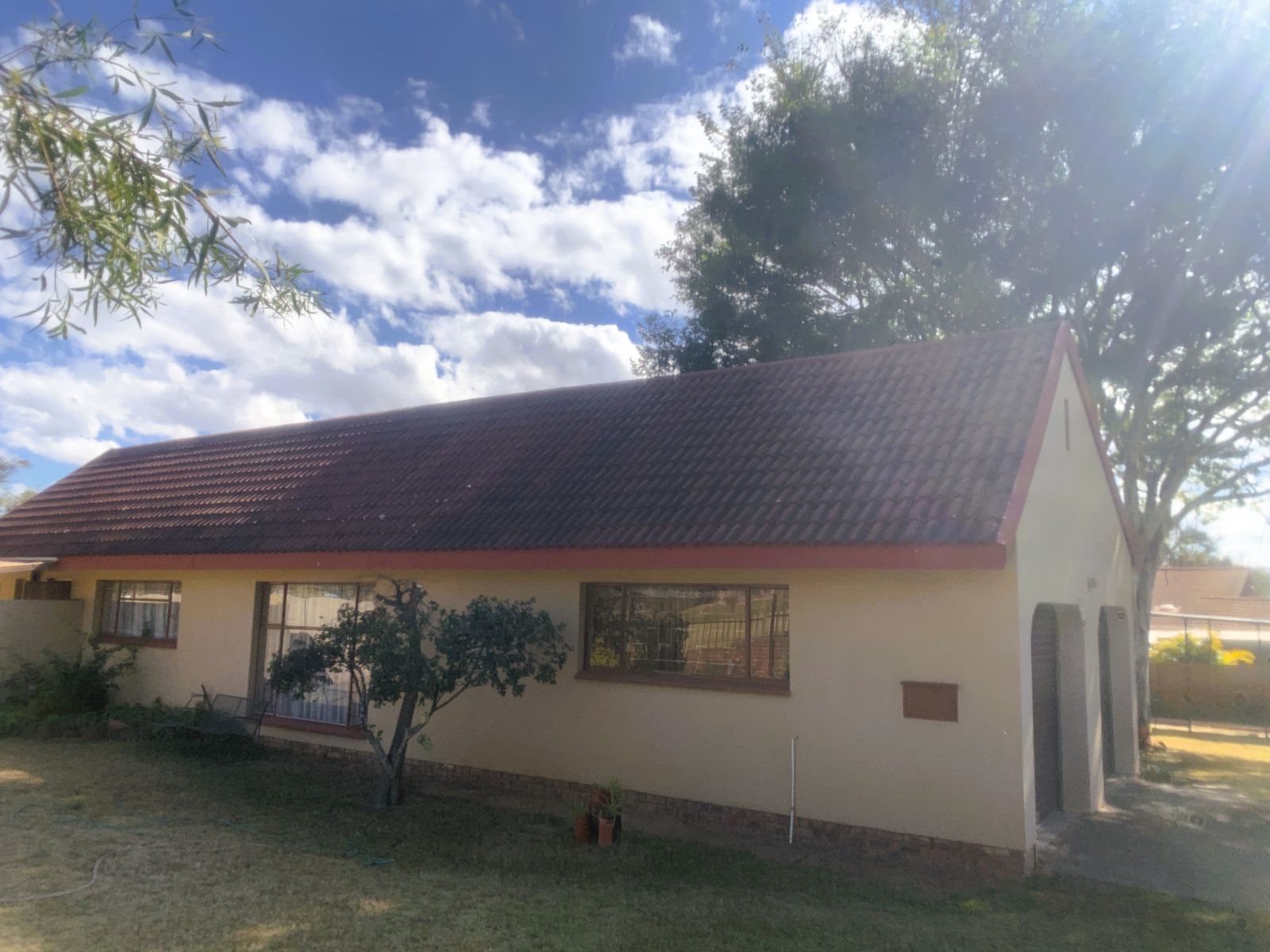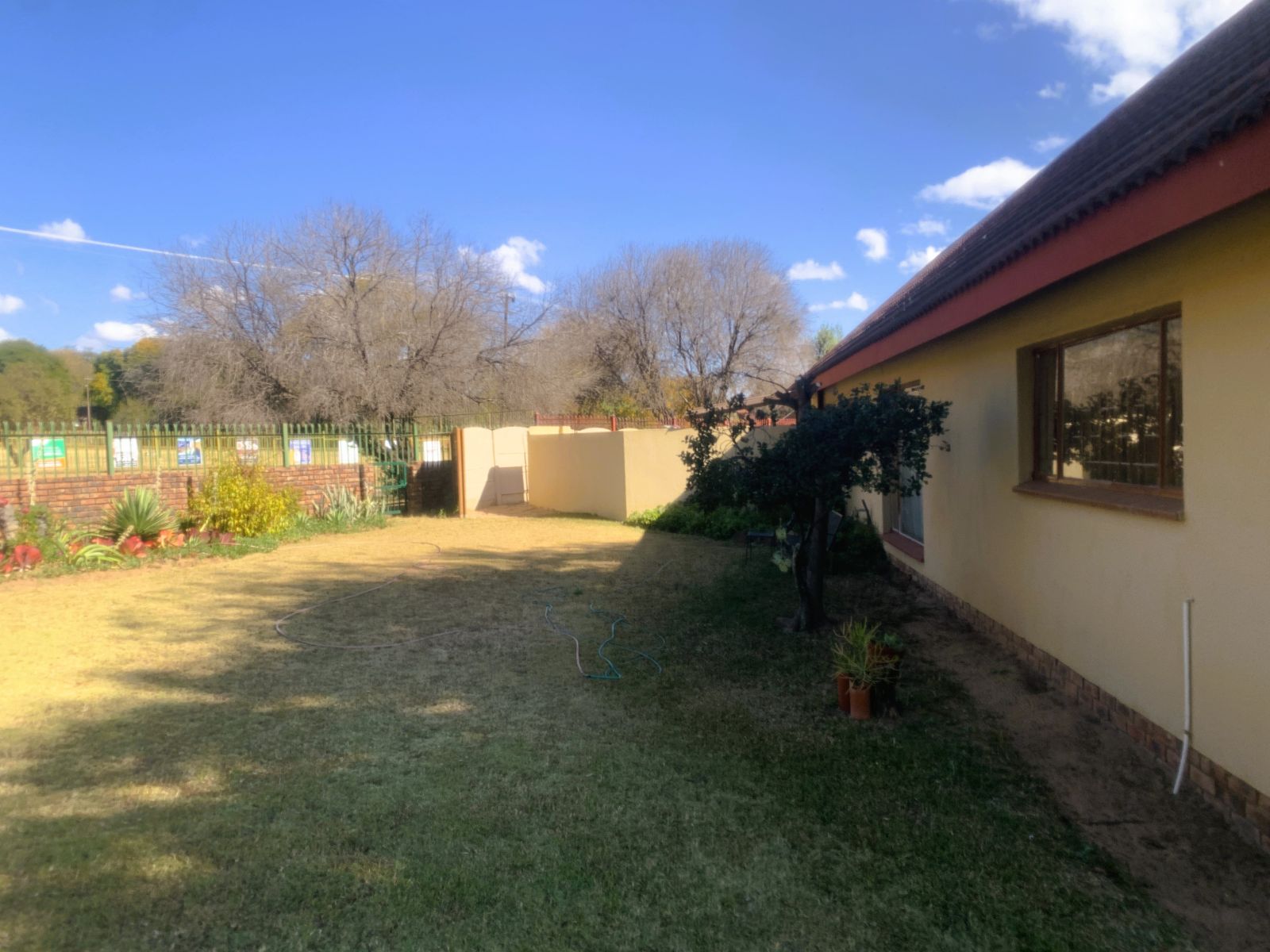 The TV lounge leads out to a lovely covered patio, seamlessly connected to the built-in braai area—perfect for entertaining. The swimming pool, though needing minor repairs, promises hours of family fun during our famously hot Bushveld summers.