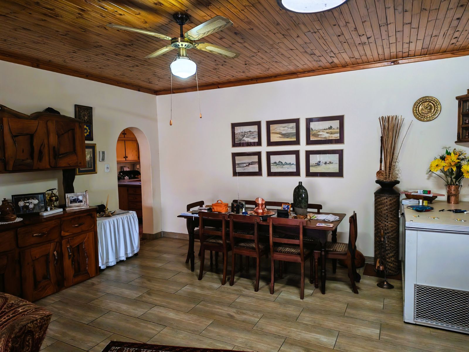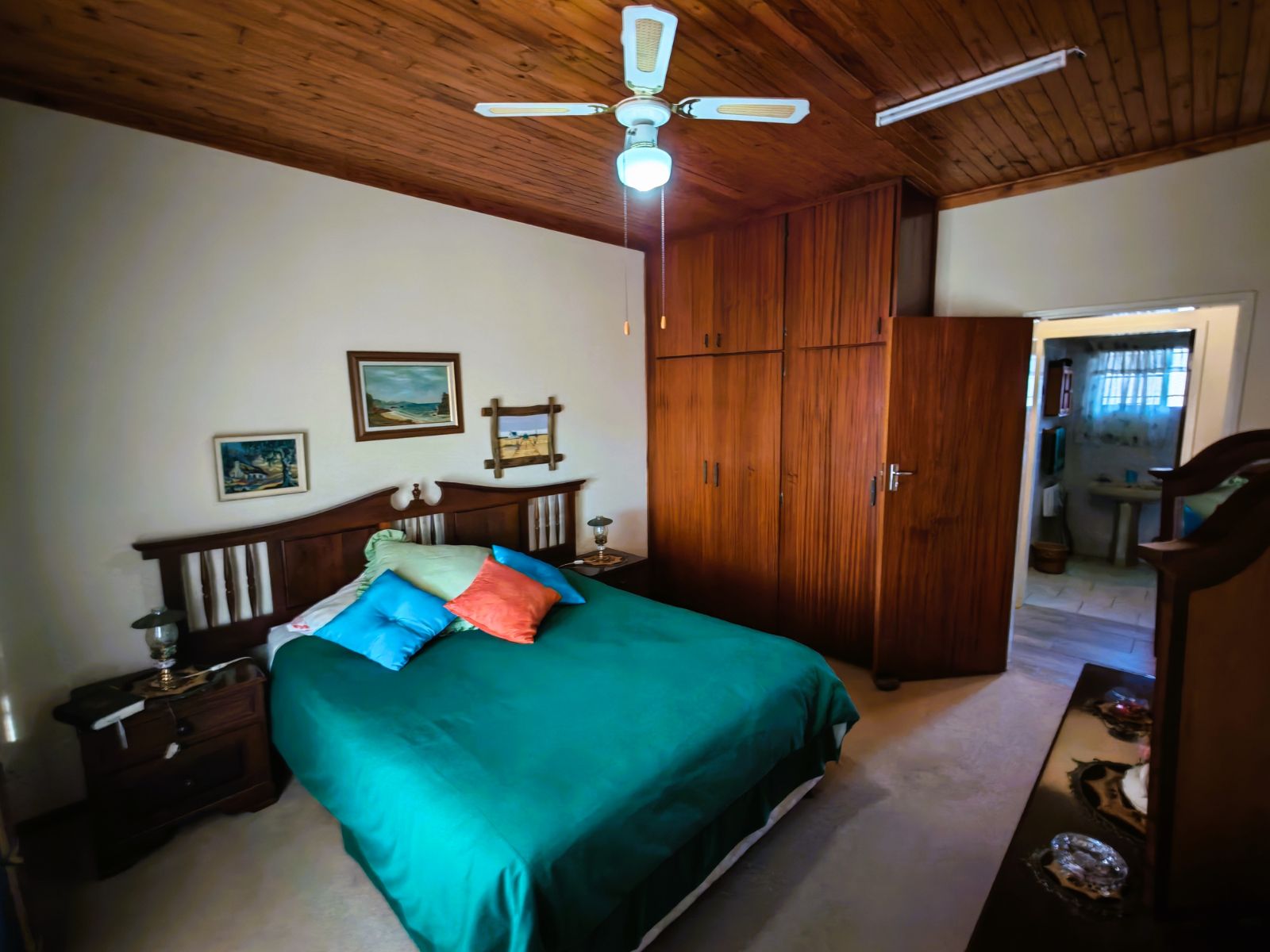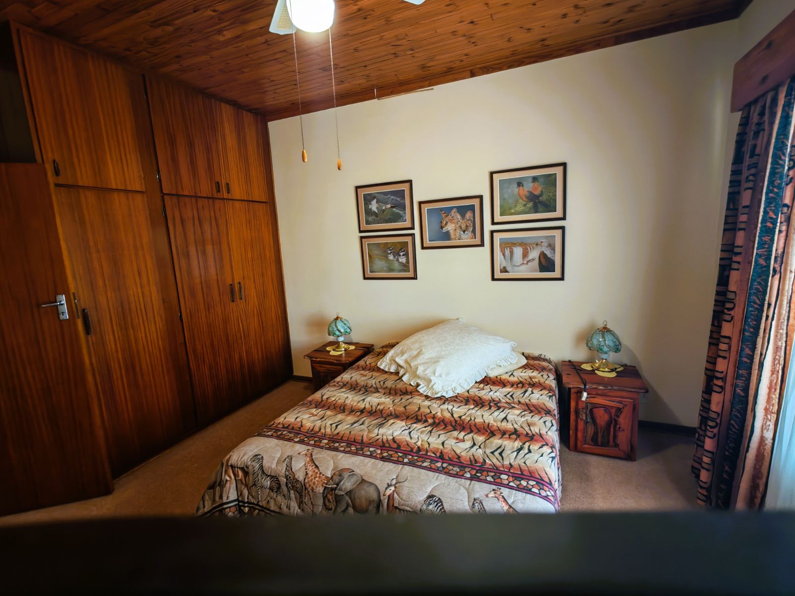 This generously sized 4-bedroom family home is nestled on a large 1172 sqm stand in one of Modimolle’s most sought-after residential areas. Built in the era of spacious design and solid construction, each of the four bedrooms features built-in cupboards, ceiling fans, and comfortable carpeting. The main bedroom boasts an entire wall of built-ins, a walk-in closet, and a private ensuite bathroom with a bath, basin, and toilet.