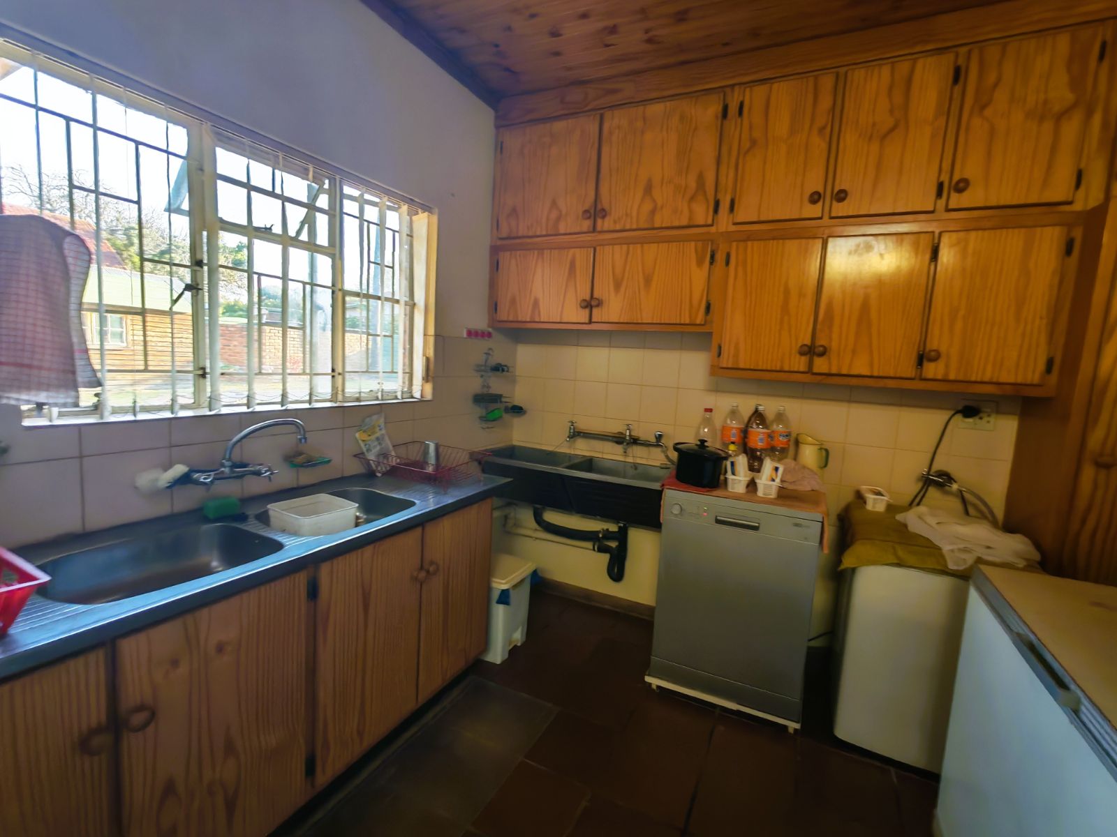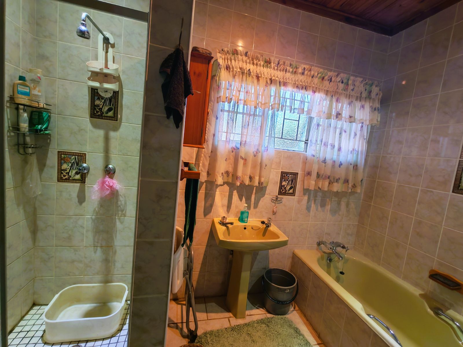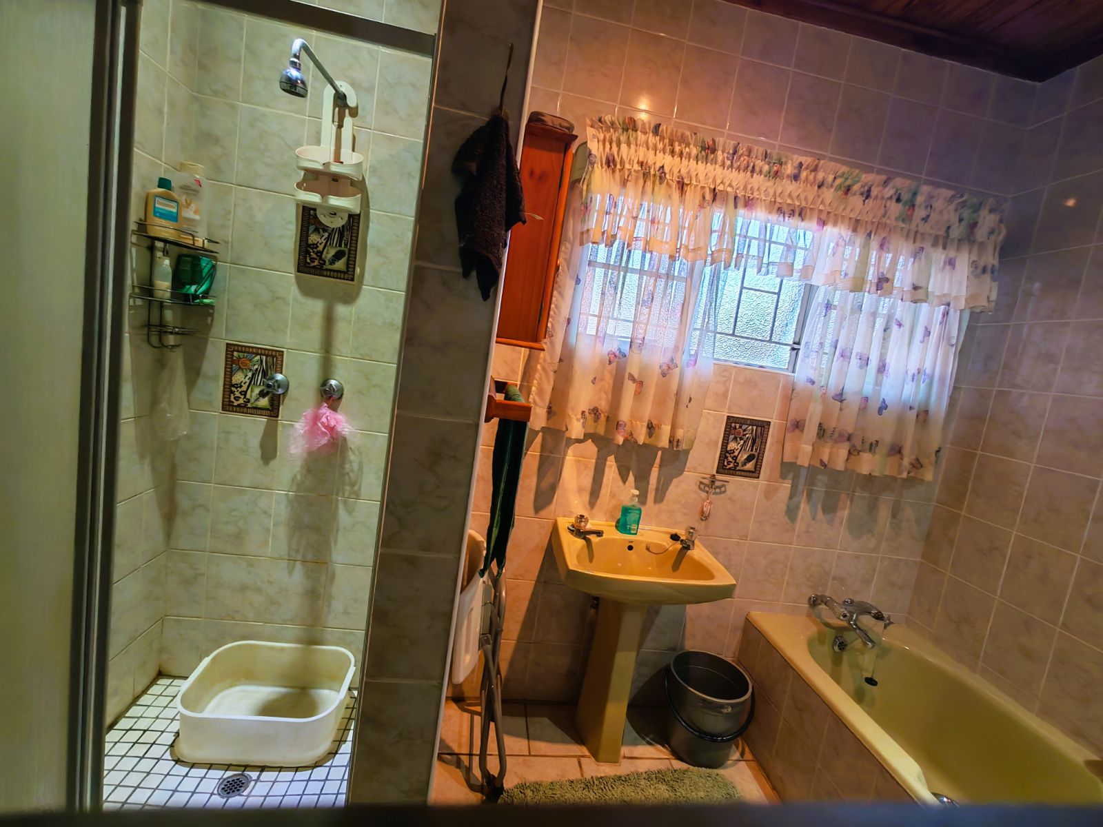 This generously sized 4-bedroom family home is nestled on a large 1172 sqm stand in one of Modimolle’s most sought-after residential areas. Built in the era of spacious design and solid construction, each of the four bedrooms features built-in cupboards, ceiling fans, and comfortable carpeting. The main bedroom boasts an entire wall of built-ins, a walk-in closet, and a private ensuite bathroom with a bath, basin, and toilet.