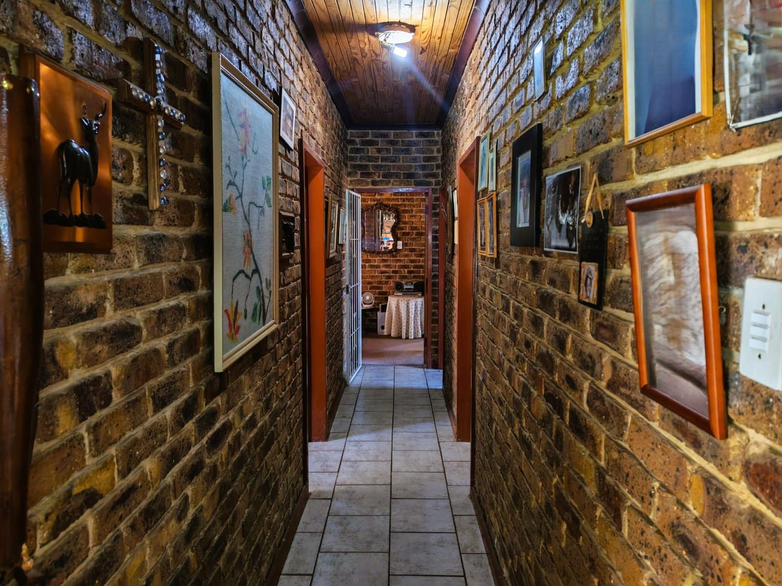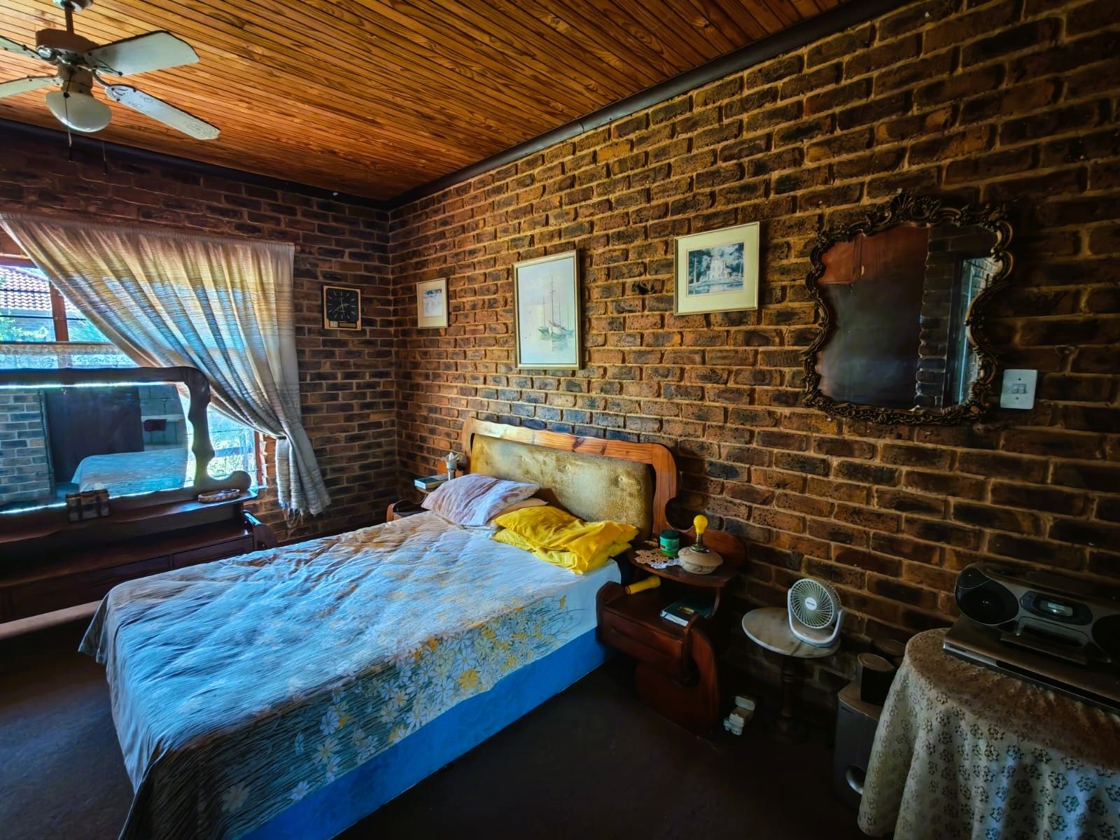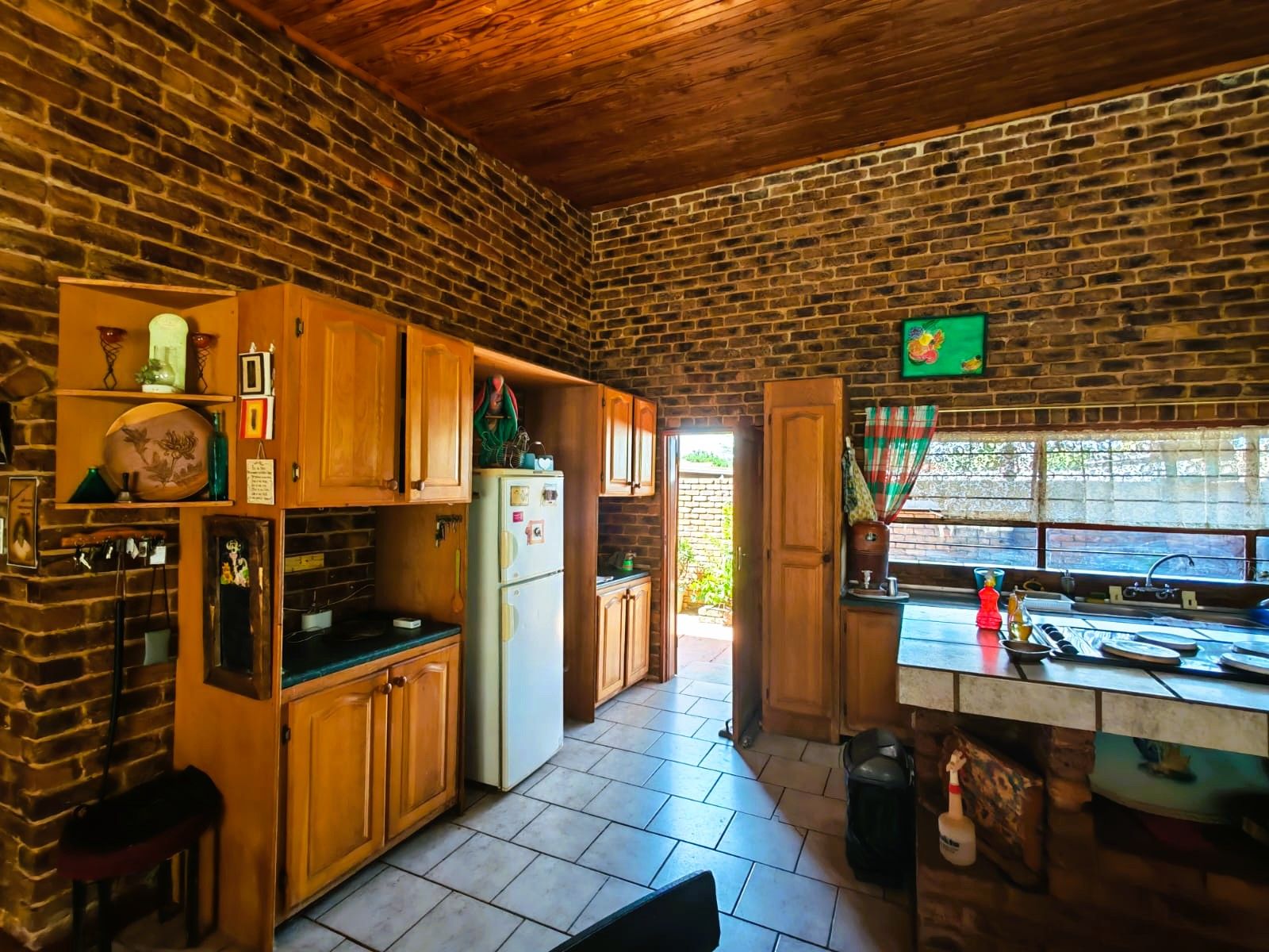 The heart of the home is a massive open-plan living area. High knotty pine ceilings create an airy, grand atmosphere across the lounge, dining, and kitchen zones. Step outside to a private patio featuring a built-in braai, perfect for those famous Bushveld evenings.
