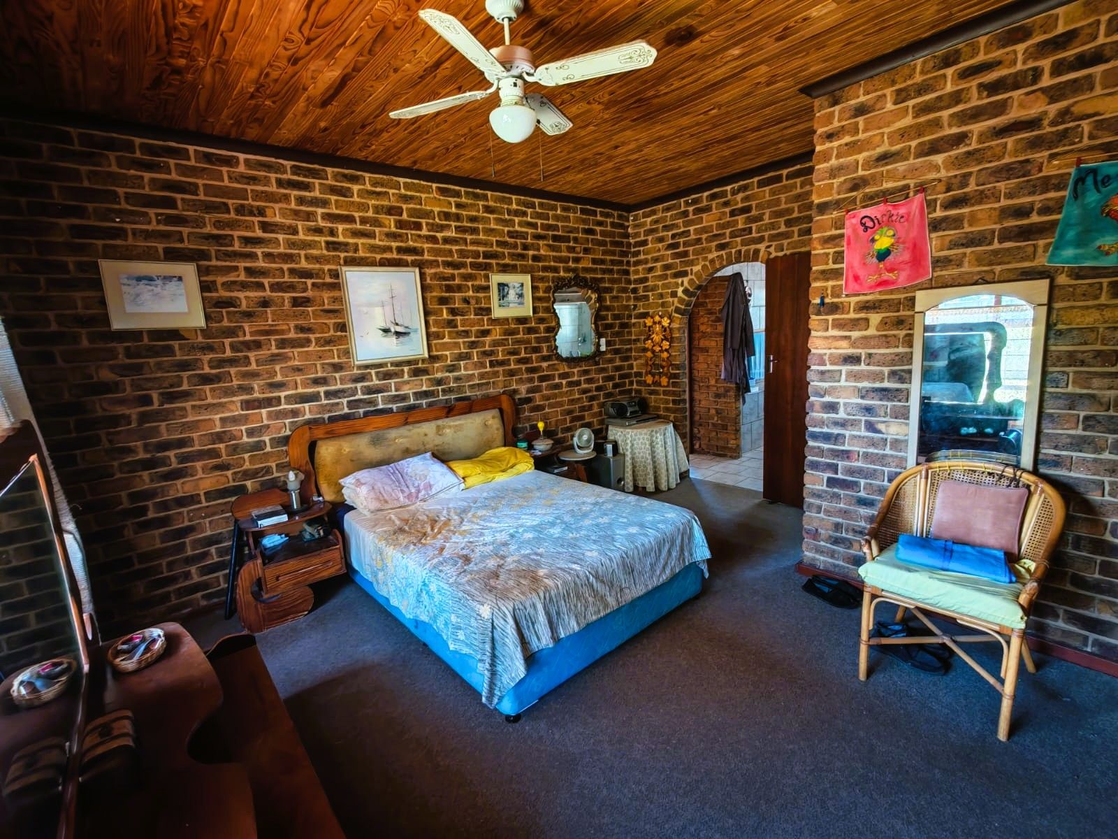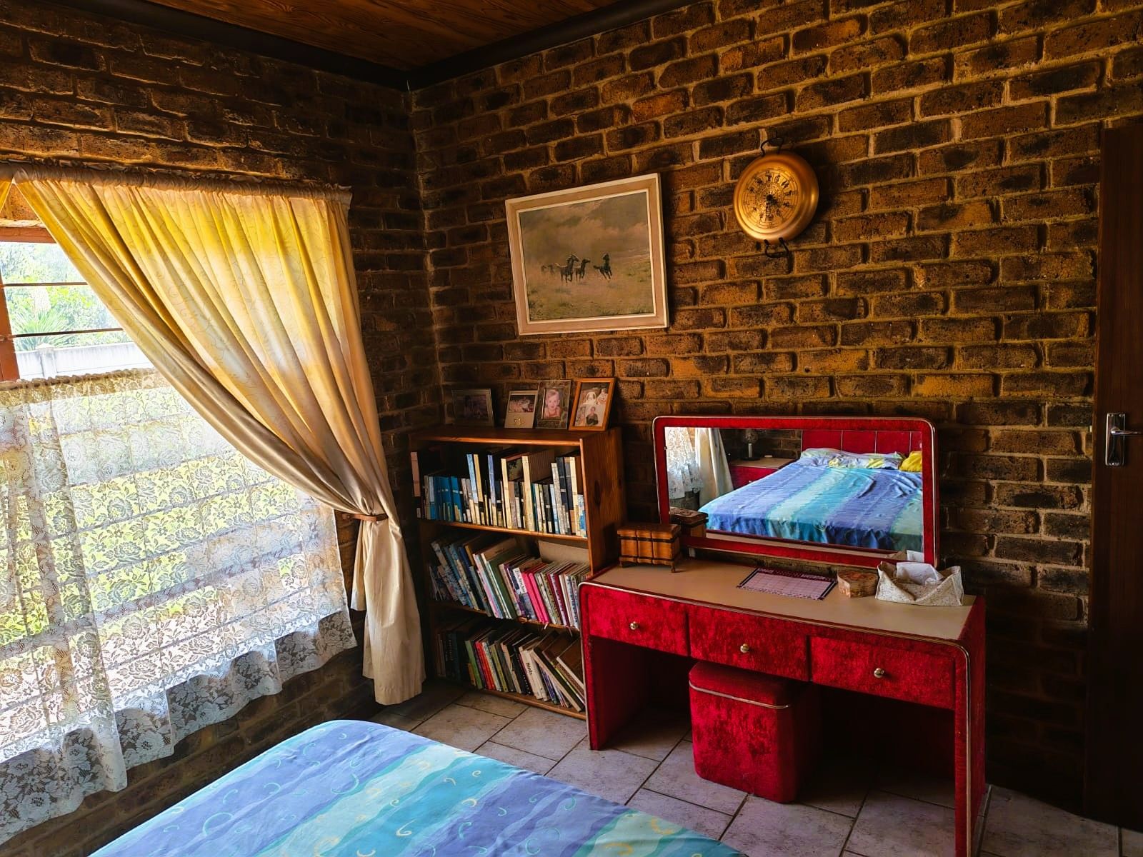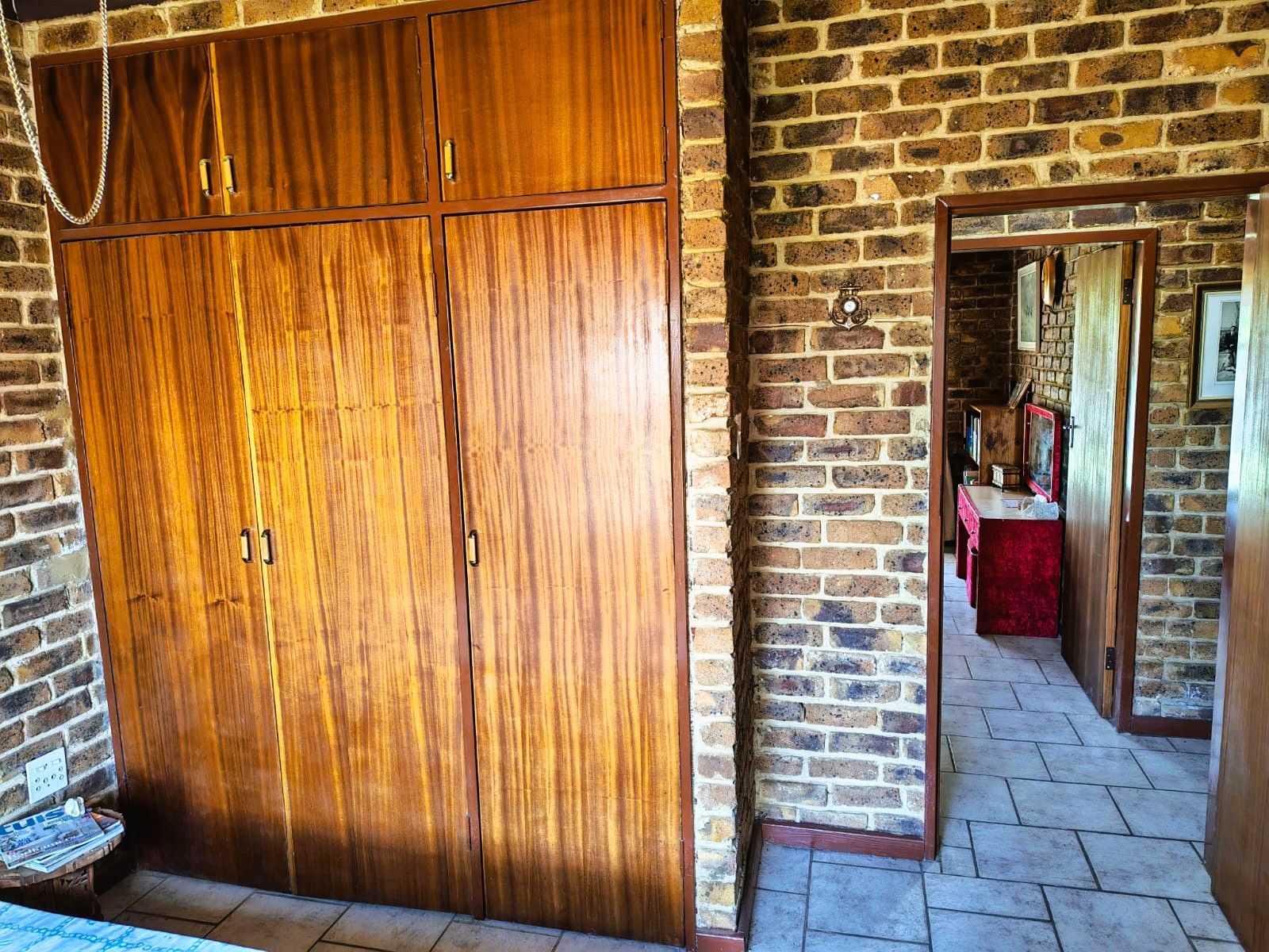 The heart of the home is a massive open-plan living area. High knotty pine ceilings create an airy, grand atmosphere across the lounge, dining, and kitchen zones. Step outside to a private patio featuring a built-in braai, perfect for those famous Bushveld evenings.