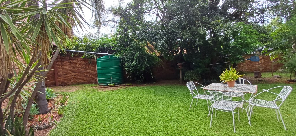 An additional tiled room leading off the main bedroom, fitted with loose cupboards (available by separate arrangement), provides access to a bachelor-style flatlet. The flatlet includes a small kitchenette with breakfast nook, a bathroom with shower, toilet, and basin, and direct access to the garden—ideal for extended family, guests, or rental income.