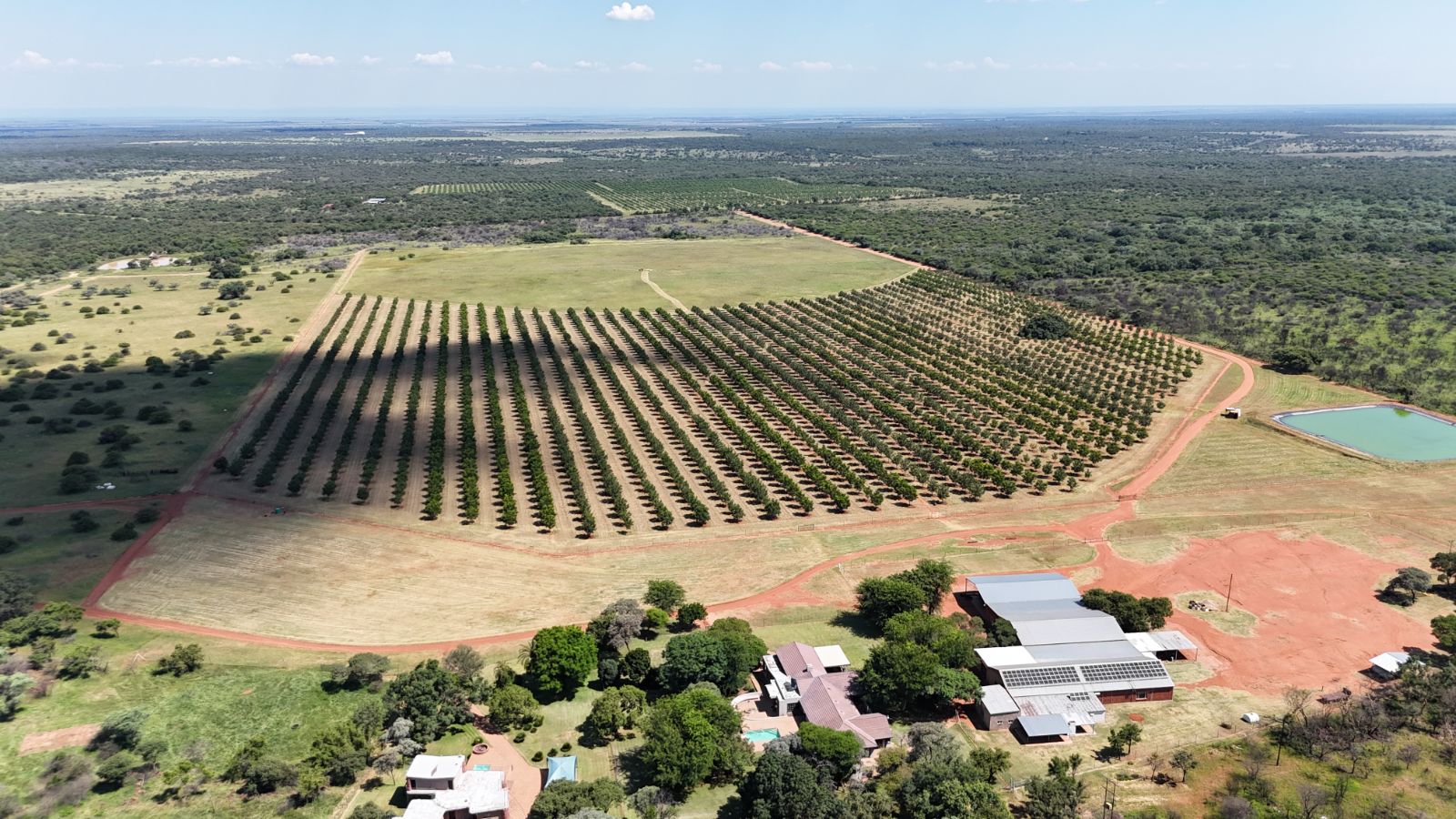 Water resources on the farm are abundant, with six equipped boreholes, three not yet equipped, two soil dams, and a large, 19,000m2 lined dam. There are three pivot irrigation systems covering 14 hectares, making it ideal for growing a wide range of crops.