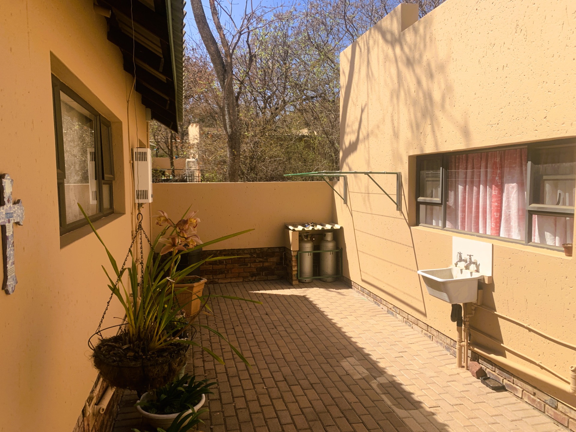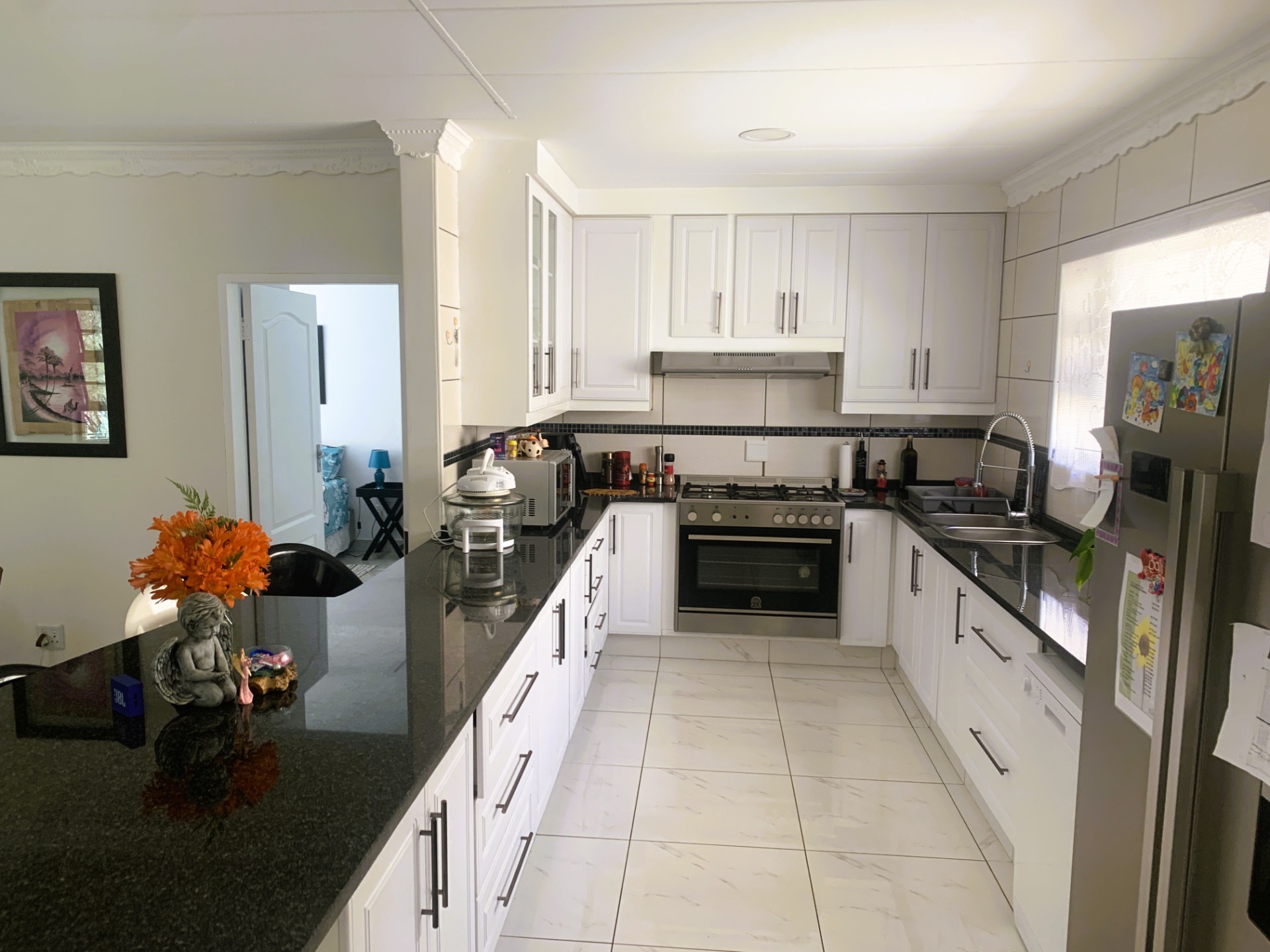This 175m2 modern retirement home offers a unique opportunity to experience nature up close. This beautiful 600m2 stand is set against the backdrop of a mountain, it welcomes you with stylish white tiles and sleek finishes. The open-plan kitchen boasts a gas stove and striking Rustenburg granite countertops, combining elegance with functionality. It also features a spacious pantry with a sliding door, perfect for extra storage.
