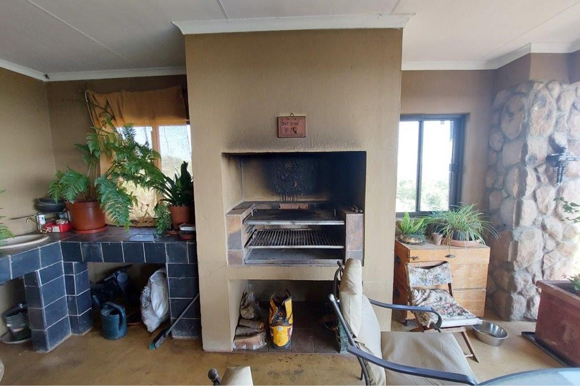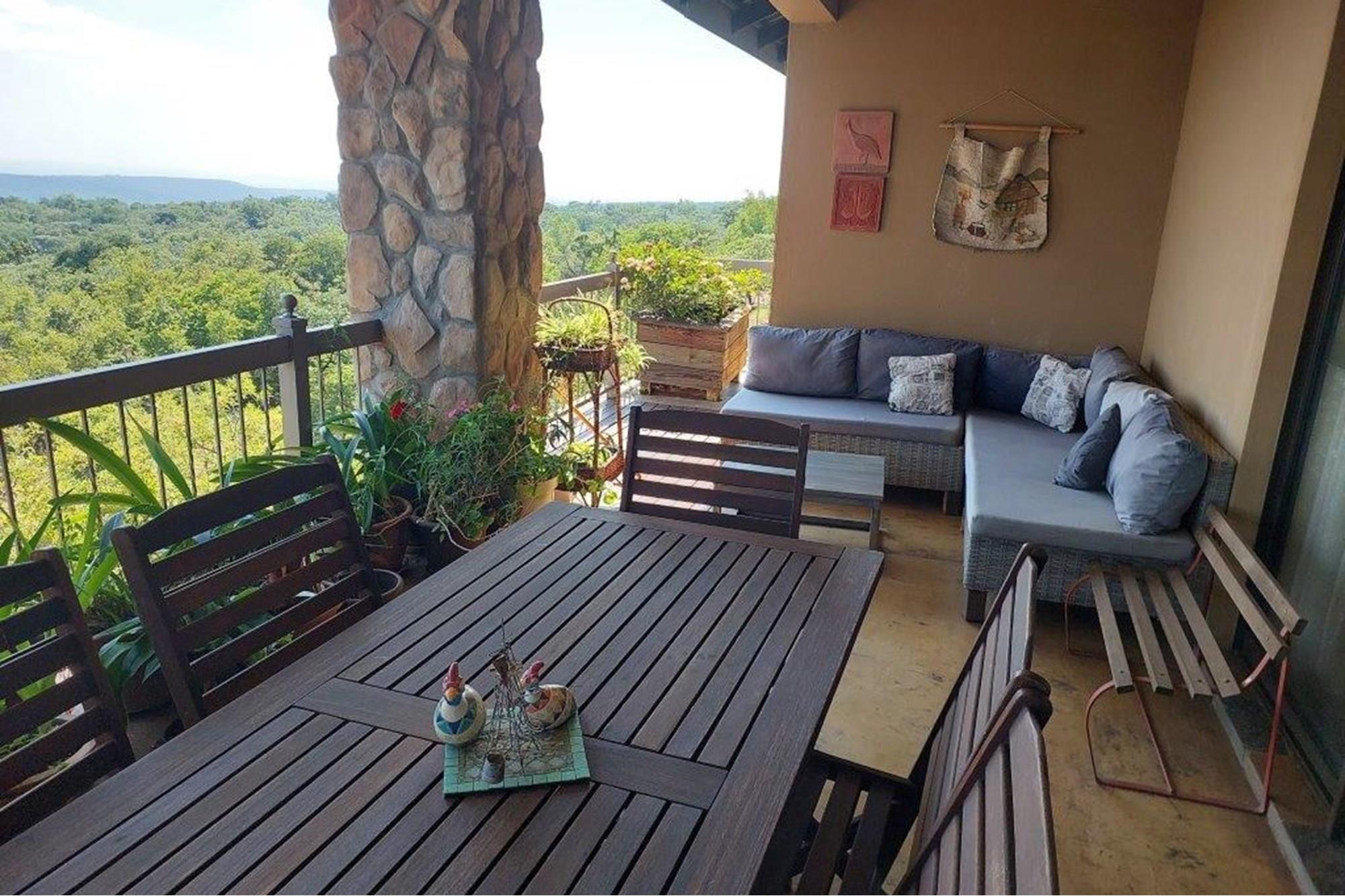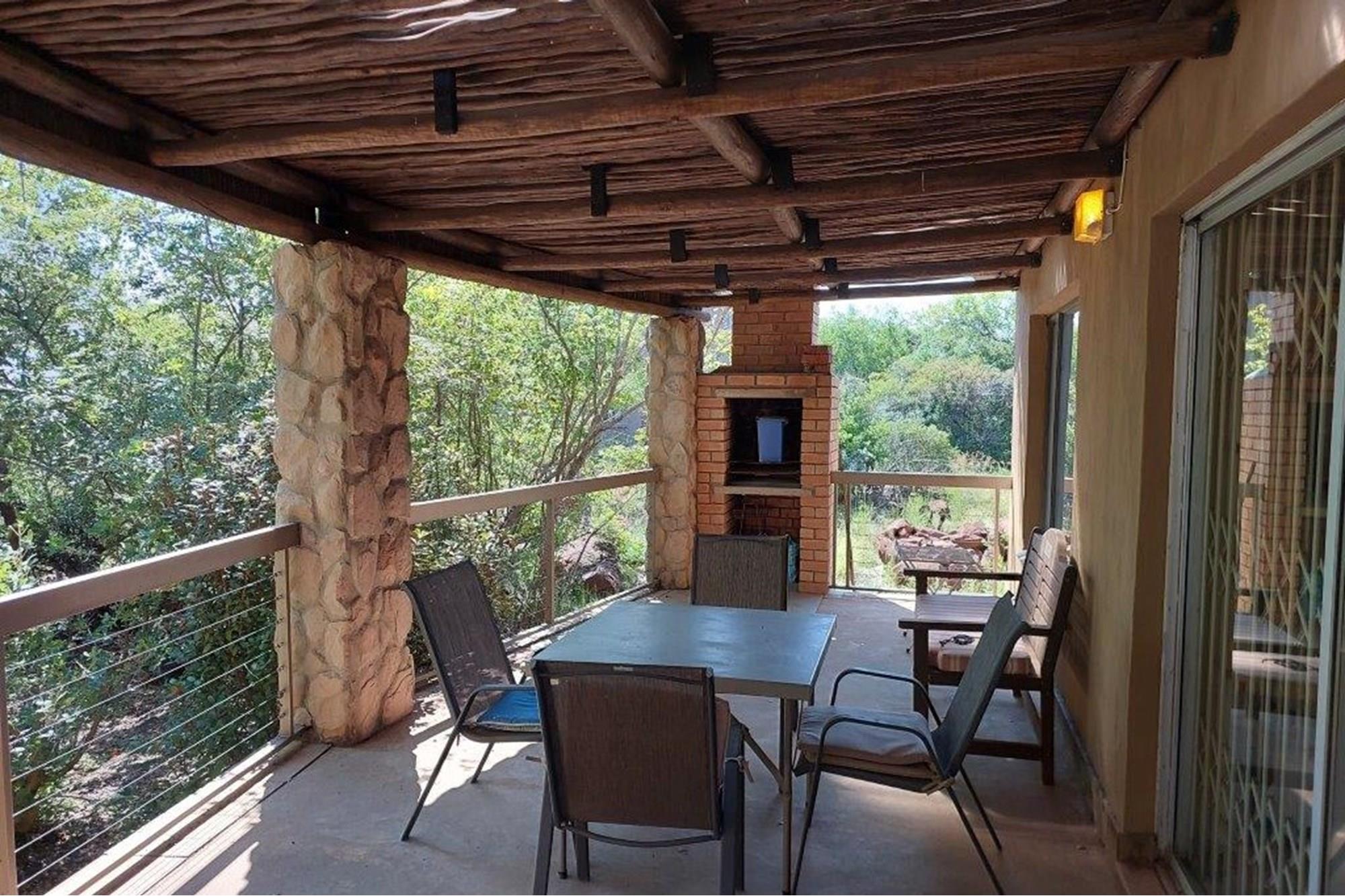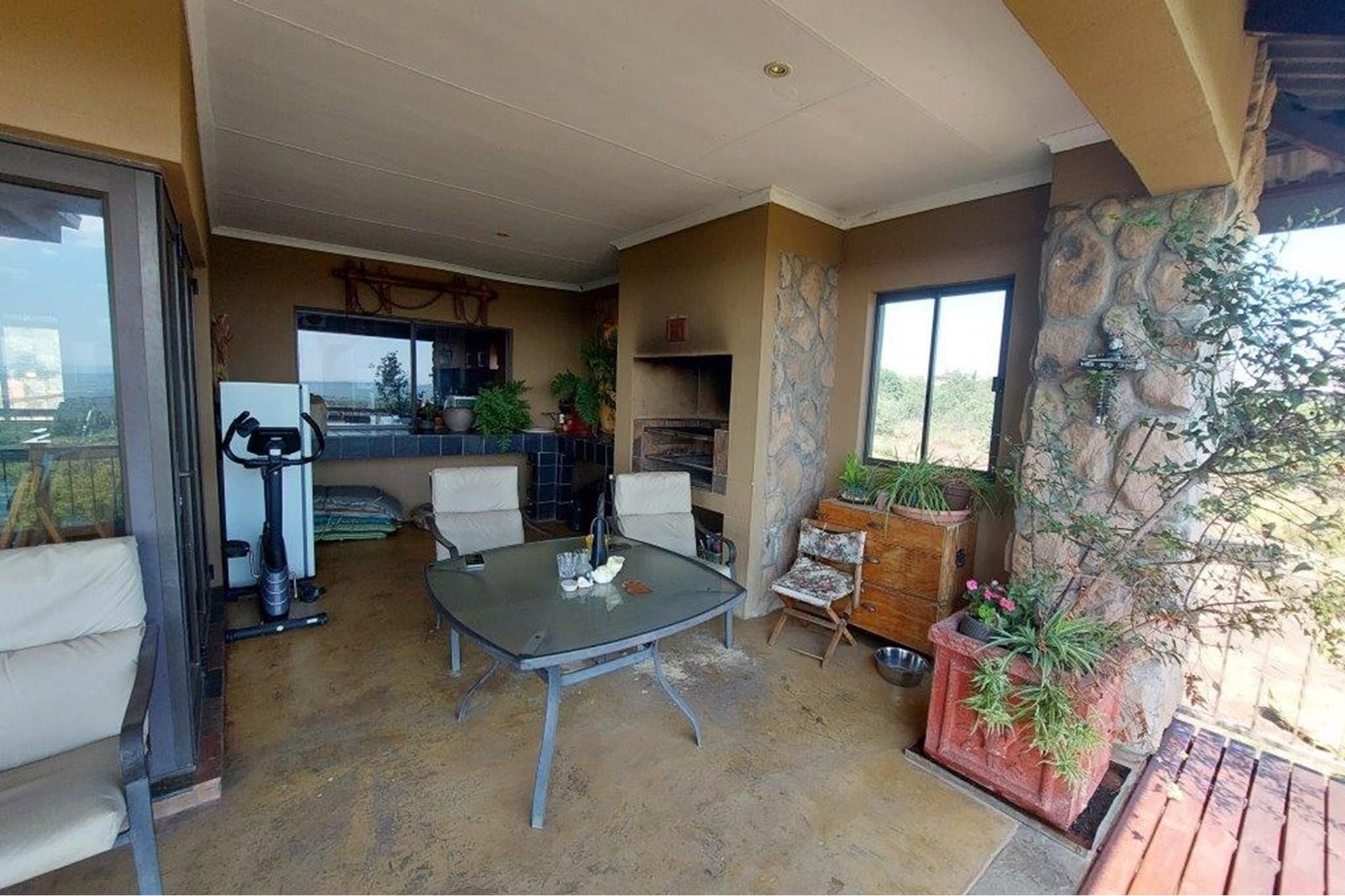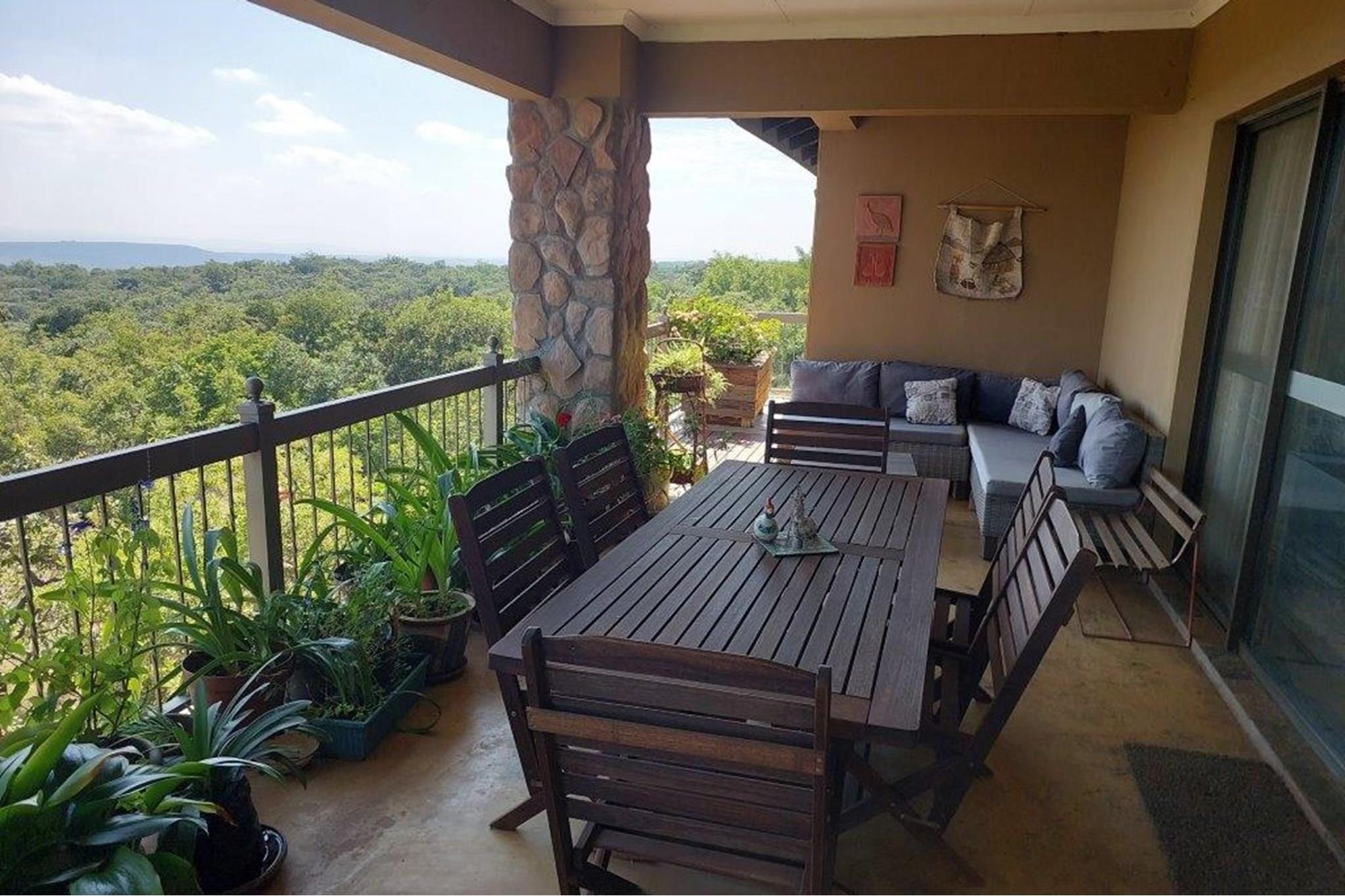 Expansive balcony extending the living space outdoors, with a secondary dining area and a built-in braai