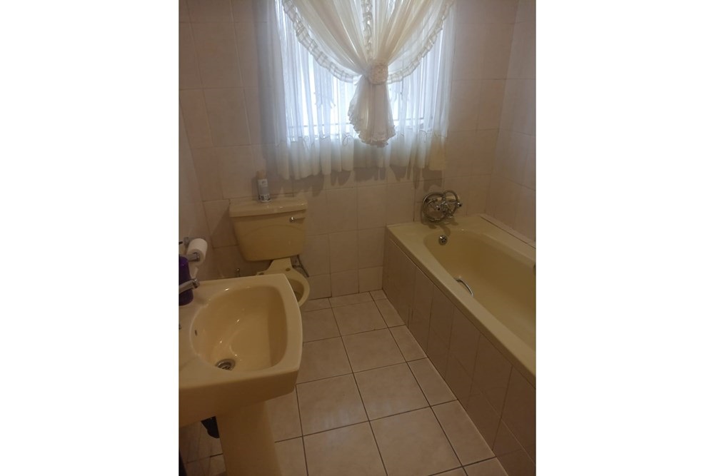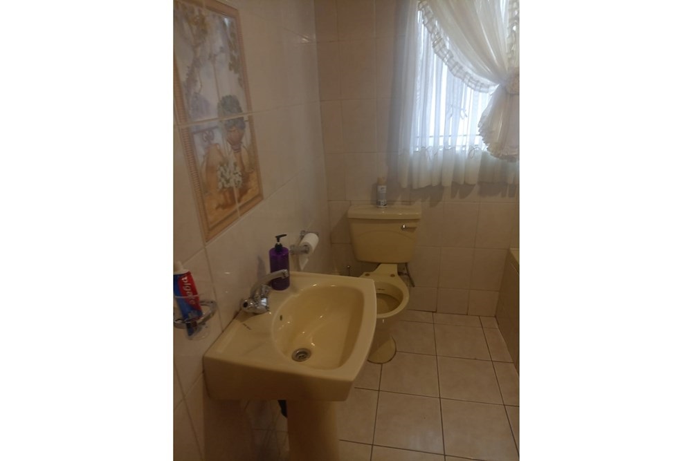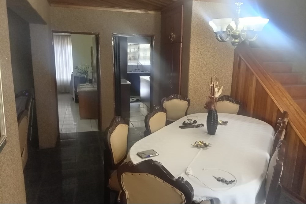 The ground floor of the dwelling includes a comfortable lounge, a dining room, a well-appointed kitchen, a bedroom, a bathroom with bath, toilet, and basin, a convenient storage area under the stairs, and two stoepe areas totaling approximately 4m2. The first floor features four bedrooms, a bathroom with bath, toilet, and basin, and a lovely balcony spanning approximately 12m2. This property truly offers a complete and attractive living space for potential buyers.